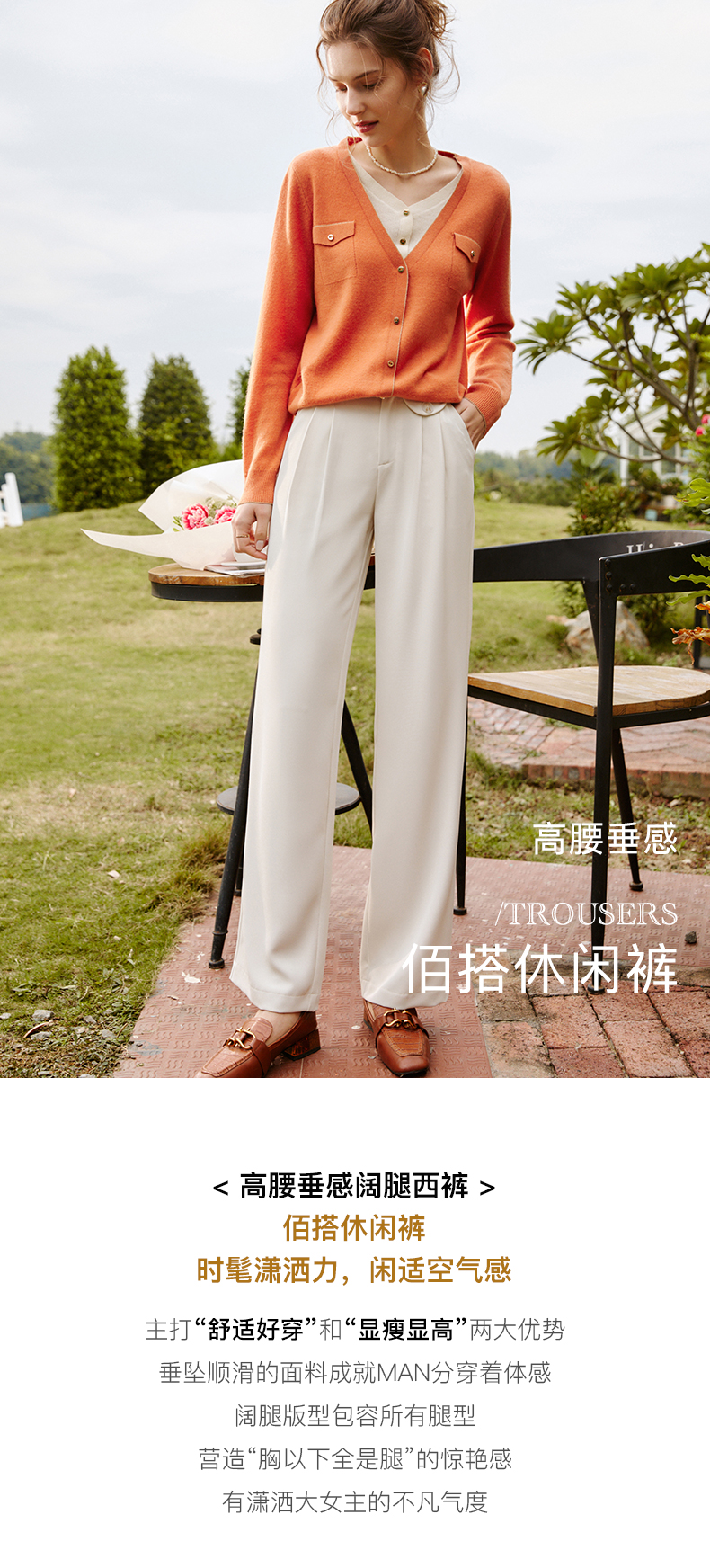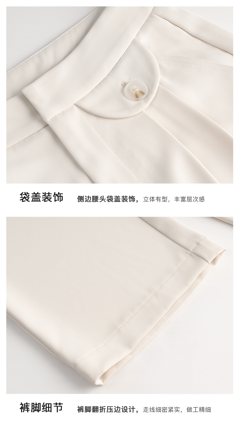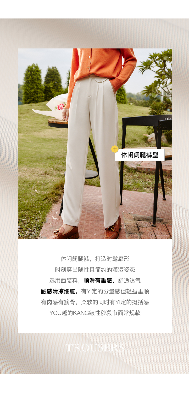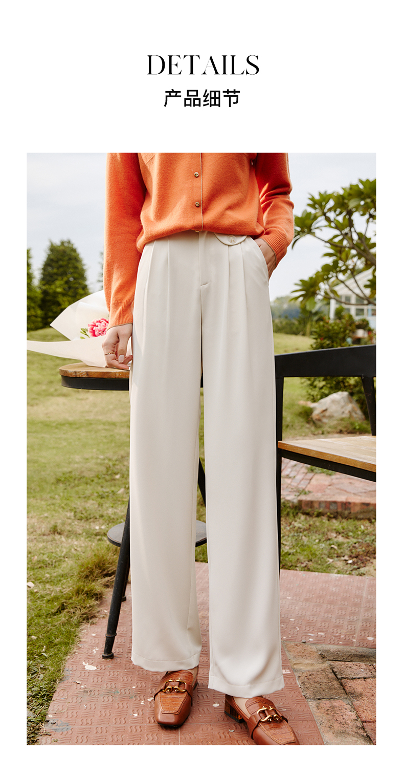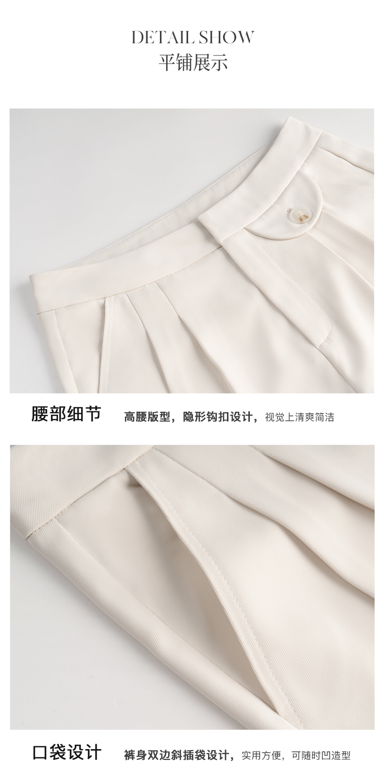 欧芮儿杏色休闲裤女夏季2022年新款高腰显瘦时尚百搭垂感阔腿西裤