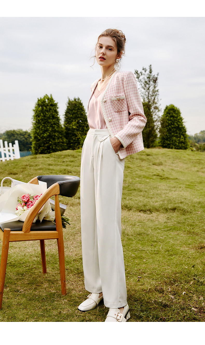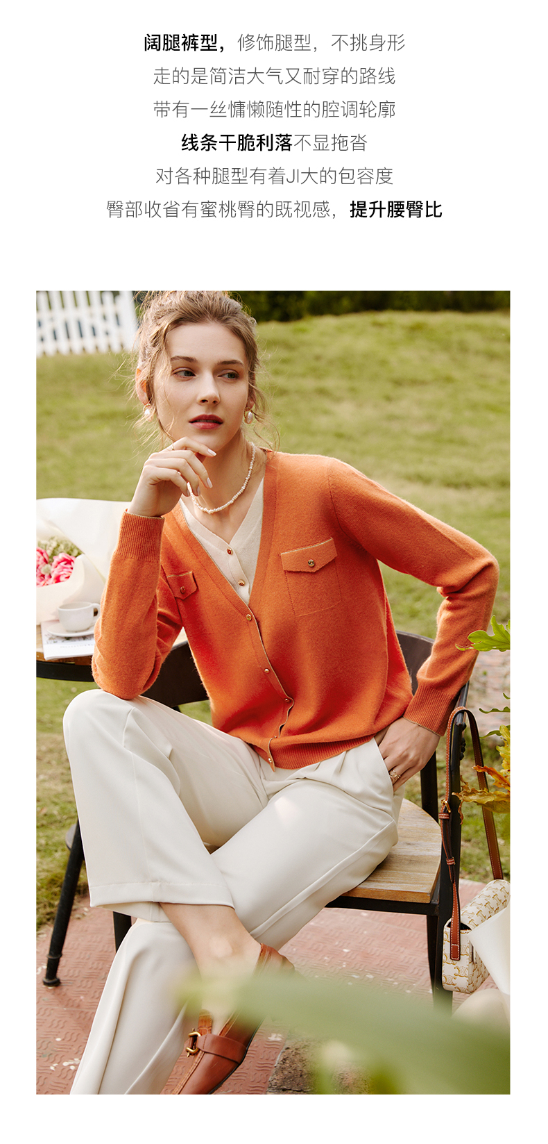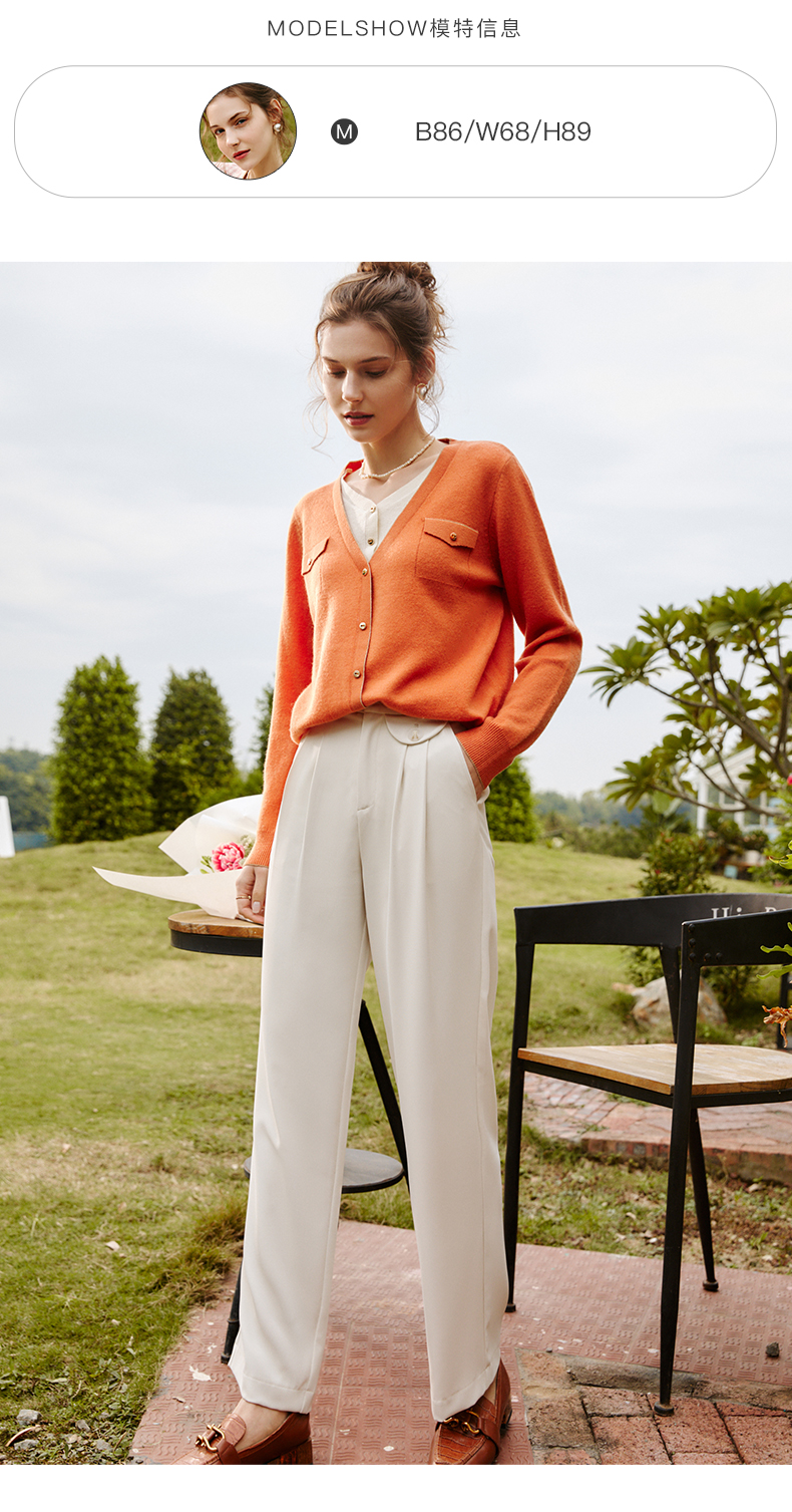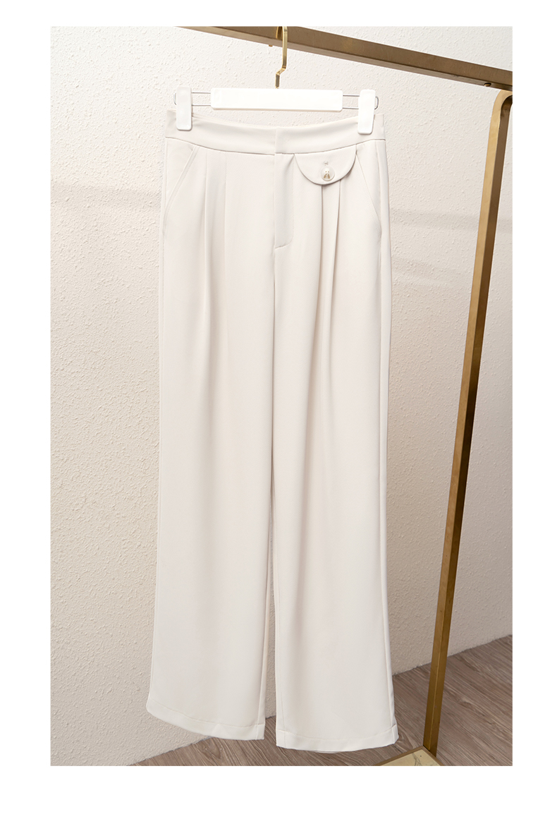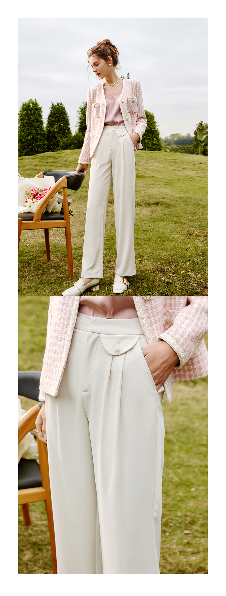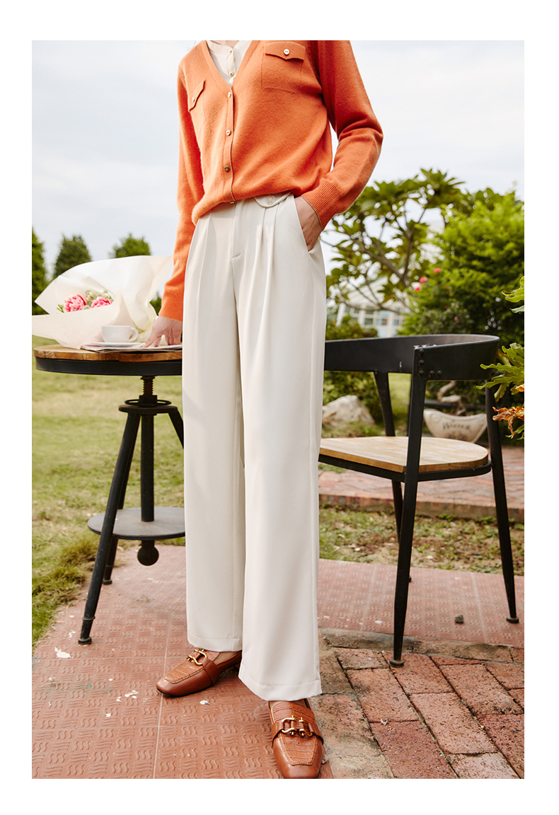 欧芮儿杏色休闲裤女夏季2022年新款高腰显瘦时尚百搭垂感阔腿西裤