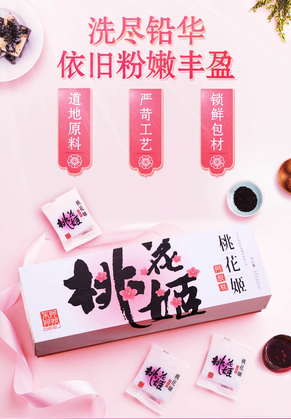 东阿阿胶 桃花姬阿胶糕300g 即食阿胶非阿胶块男女滋补品送礼高端礼盒礼袋礼品孝敬父母