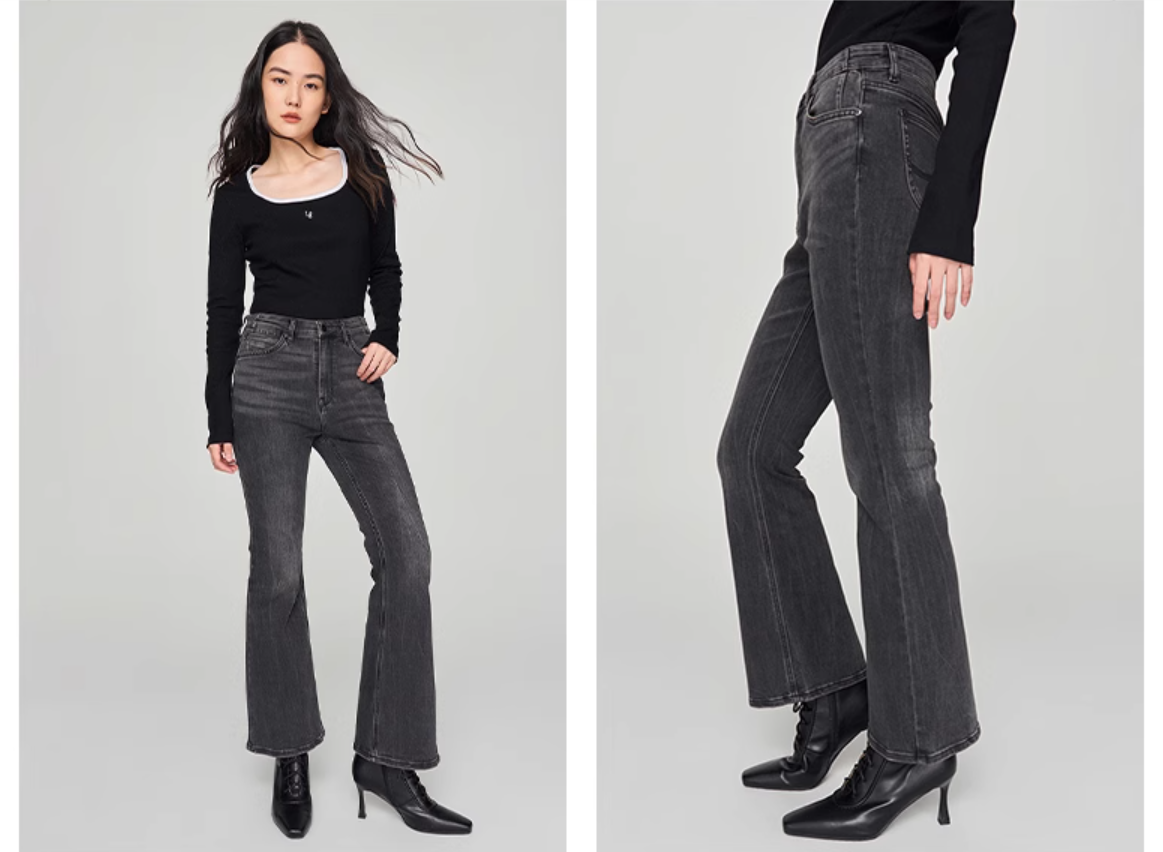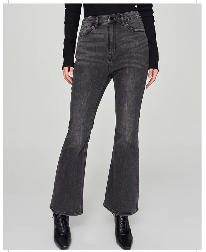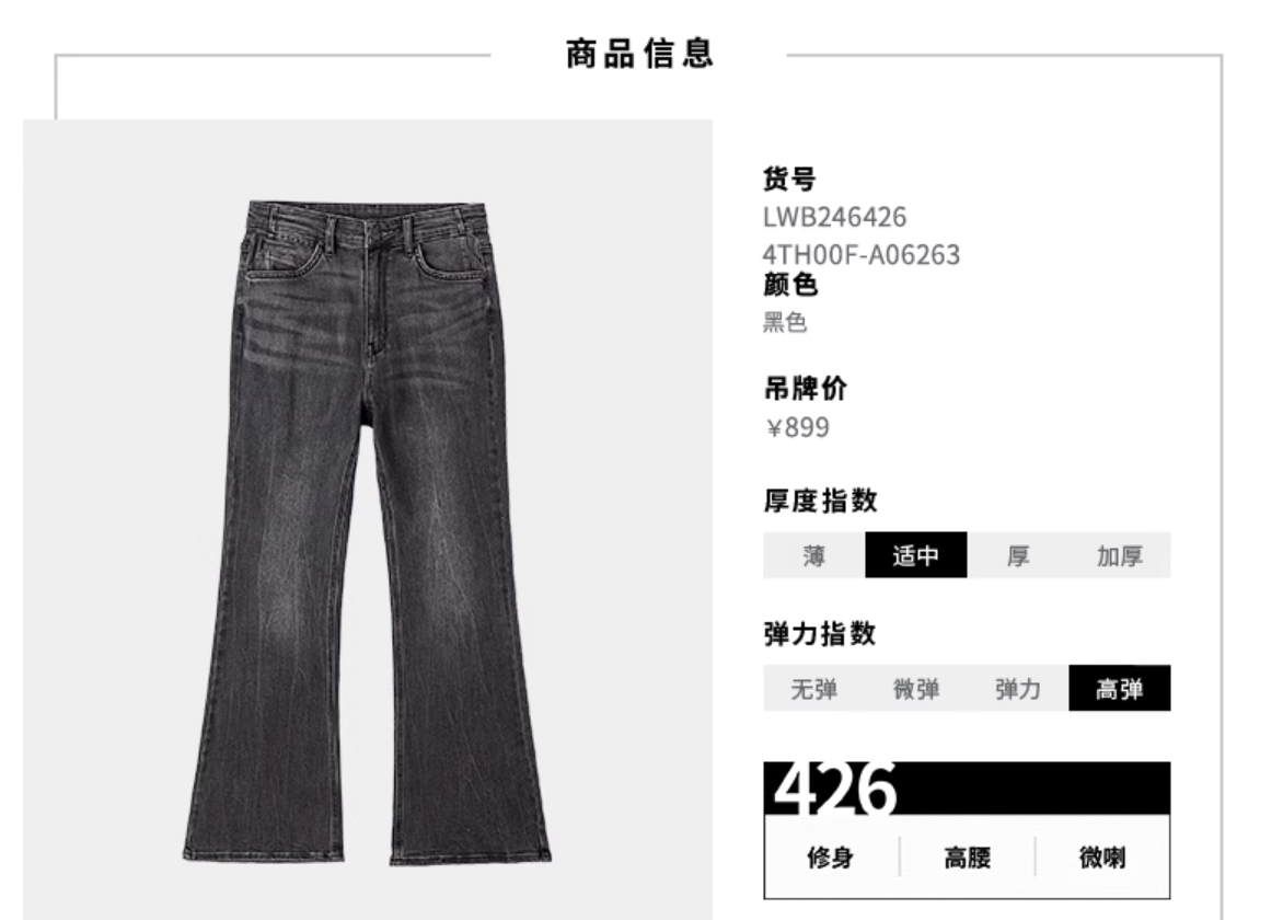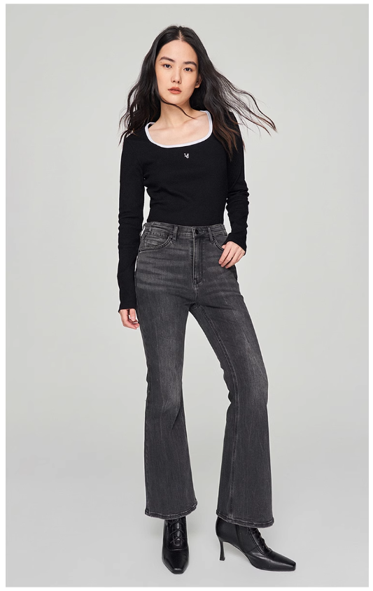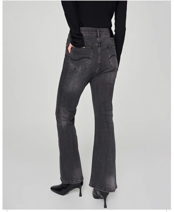 LEE新品426修身高腰微喇黑色女牛仔裤LWB2464264TH00F