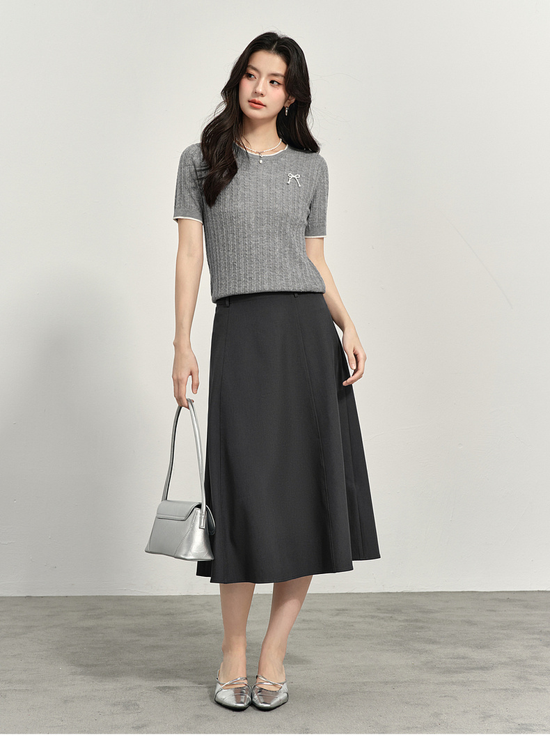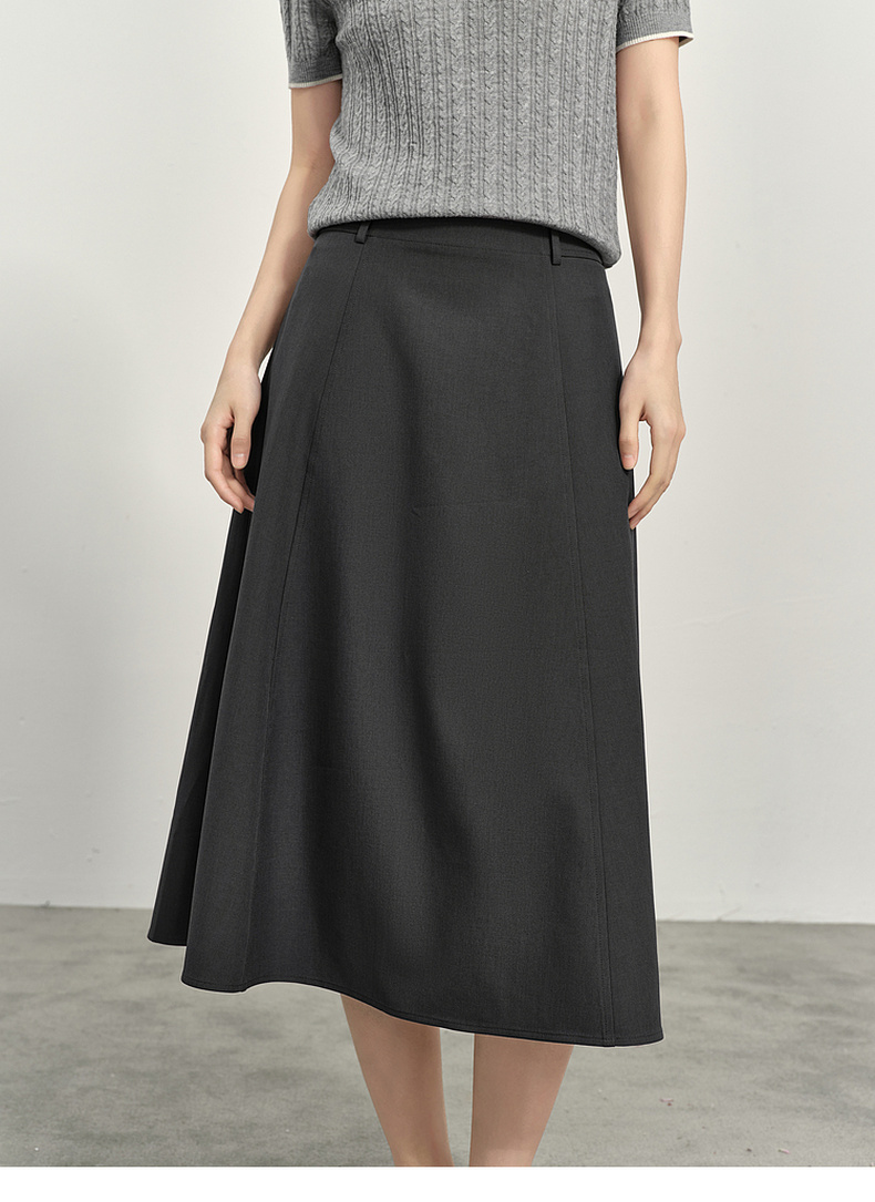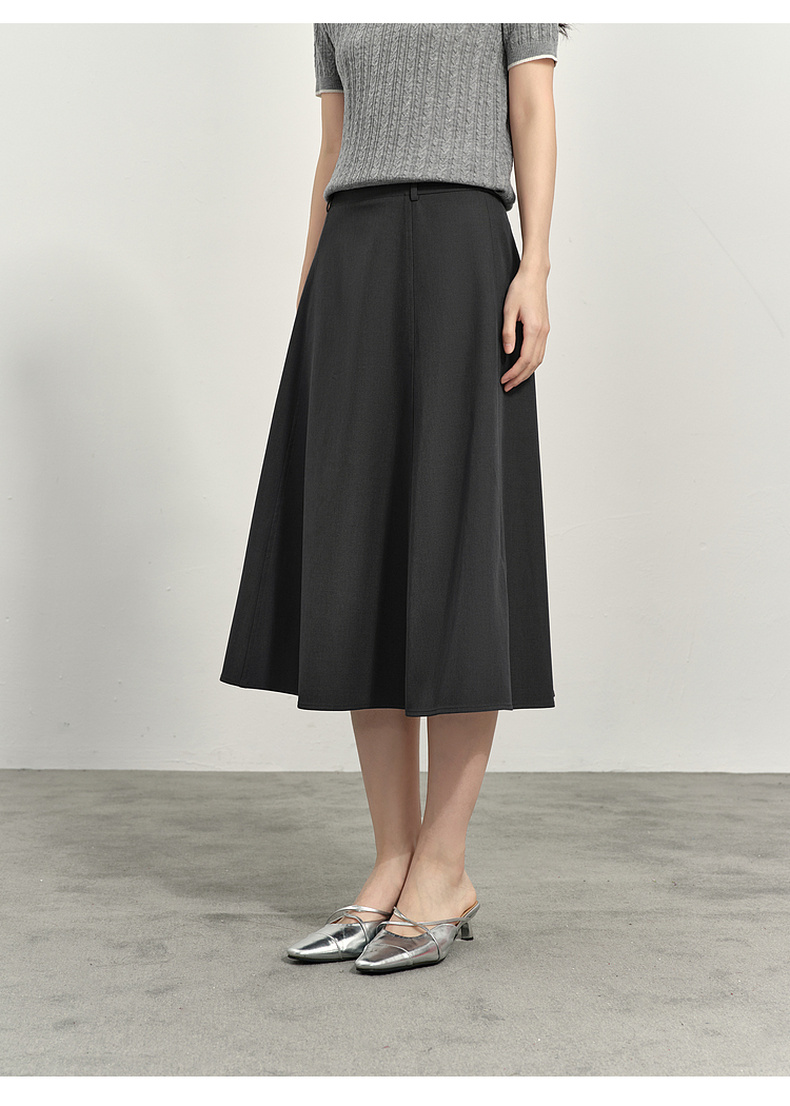 【商场同款】诗凡黎灰色高腰A字伞裙2025春新款中长裙女3G3240371