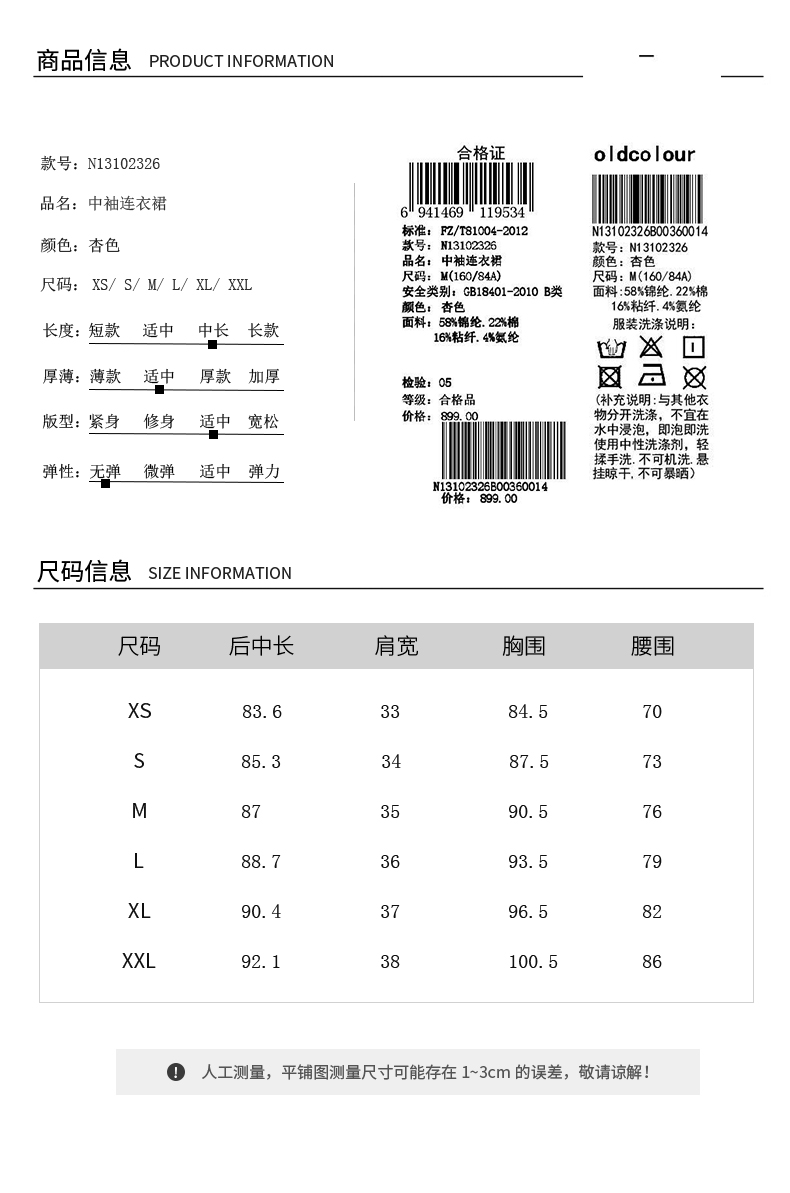 oldcolour2021春季中袖连衣裙N13102326