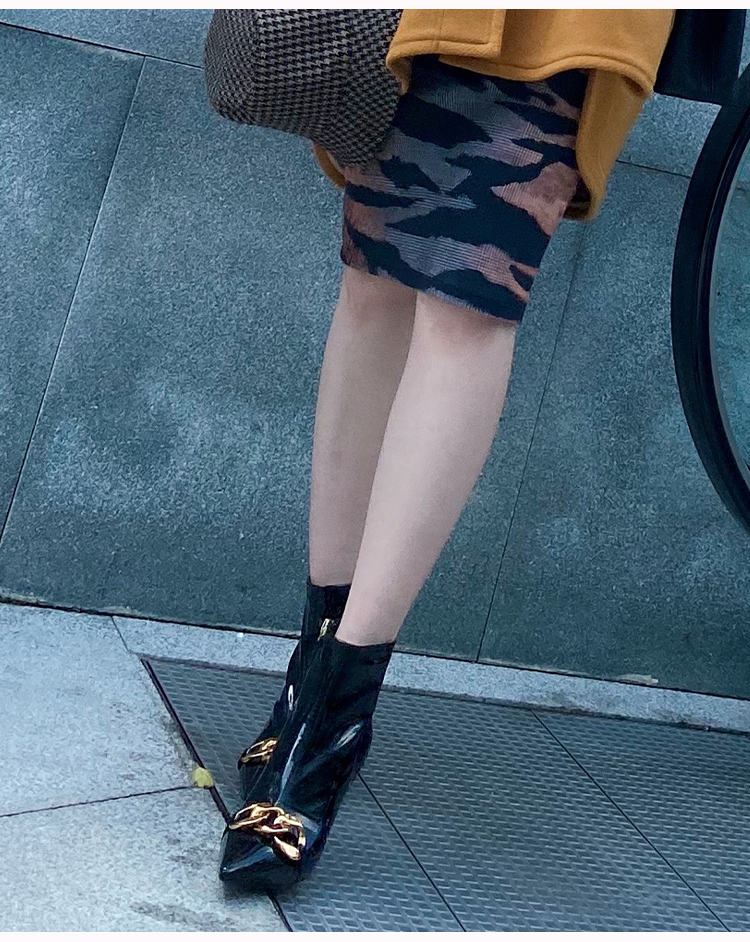 westory2020冬季新款真皮漆皮链条尖头高跟时装靴女W20DS80401