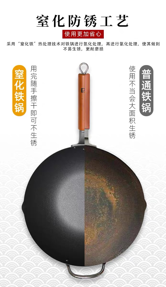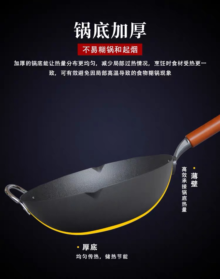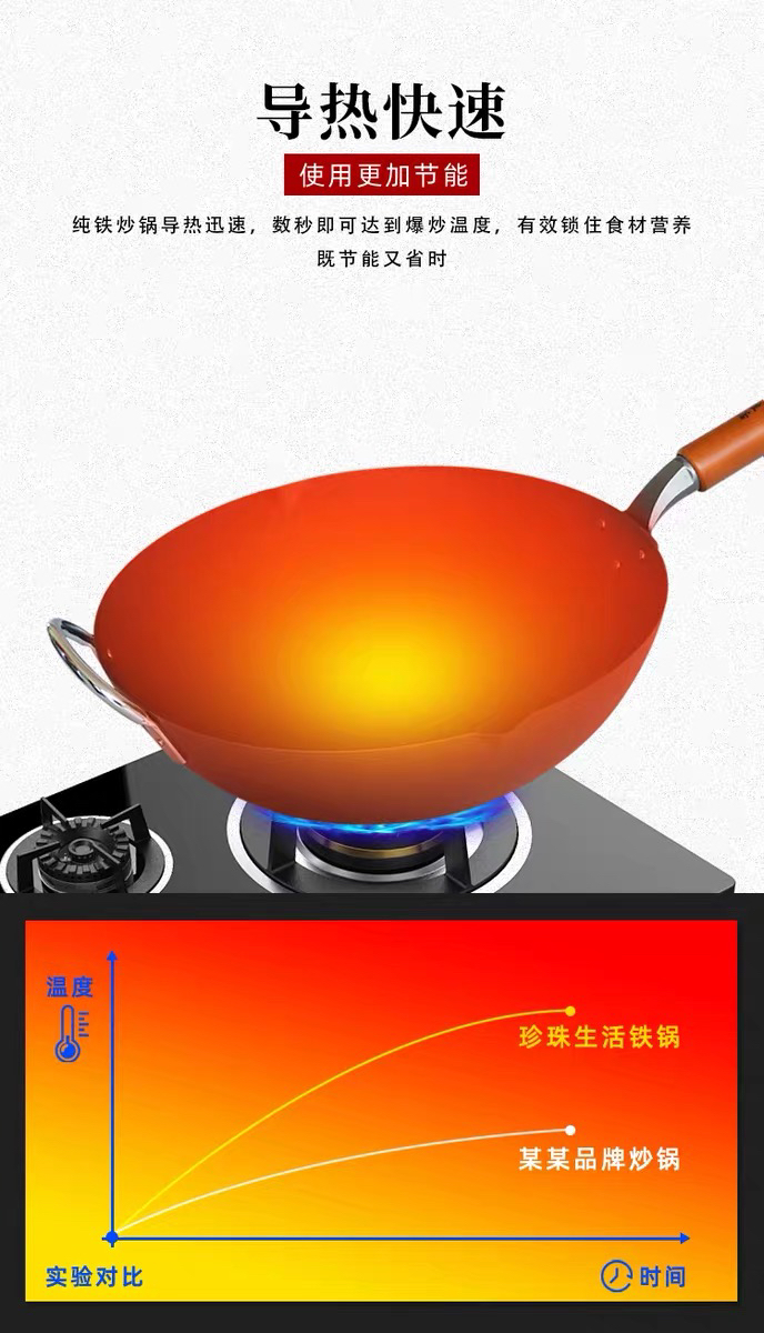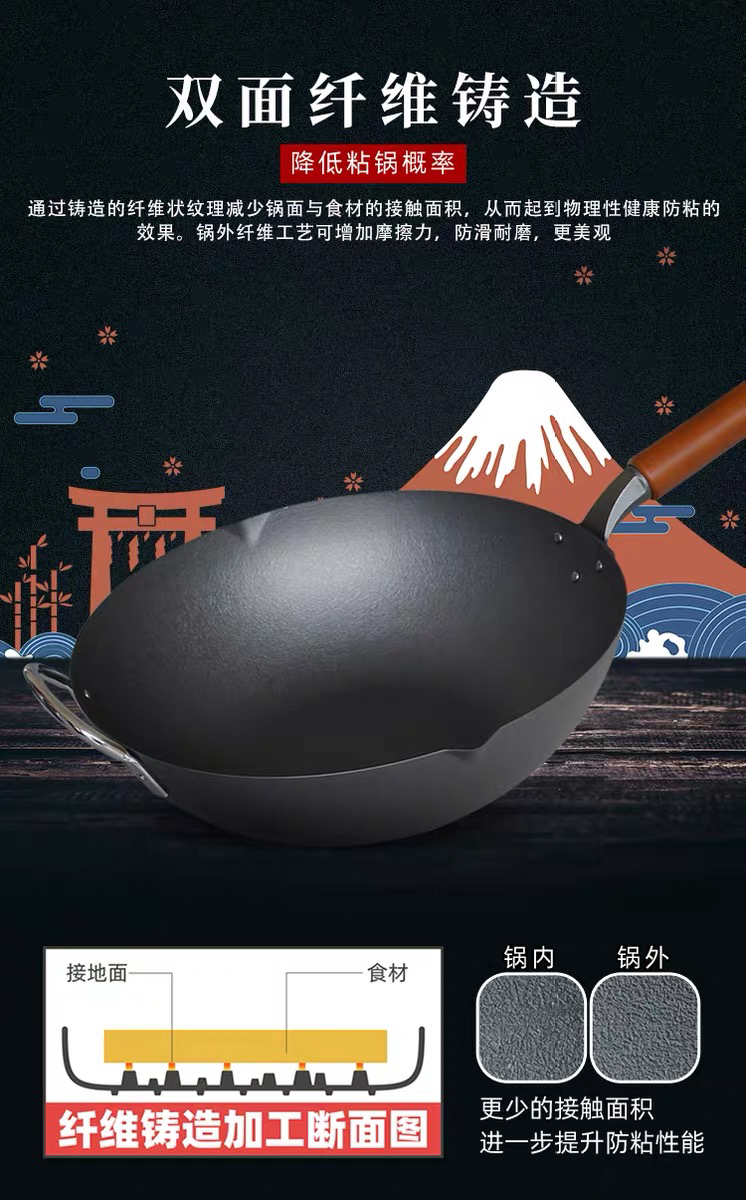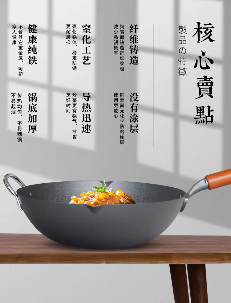 珍珠生活日本进口无涂层不易粘炒锅铁锅家用平底炒锅GP-3003