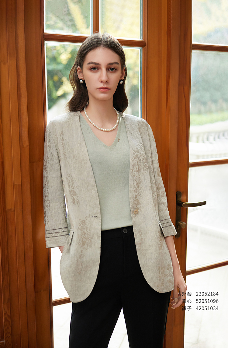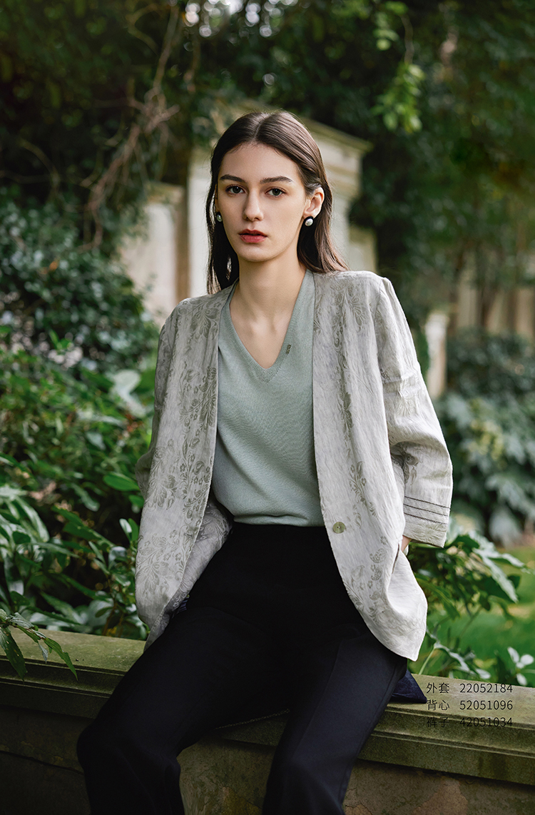 【短款亚麻印花外套】25年春夏新品女士桑蚕丝百搭上衣V领外套