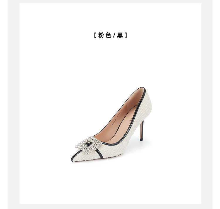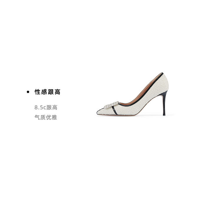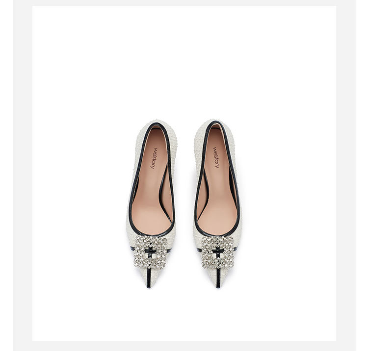 westory2024小香风单鞋细高跟钻饰扣优雅气质女鞋W24AE57151