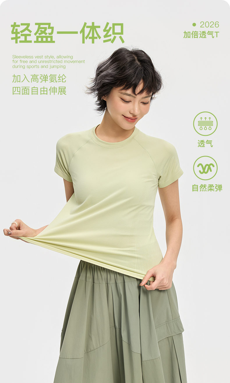 Leorrey/乐拉轻盈柔软一体织透气修身高弹T恤跑步运动短袖DX2511