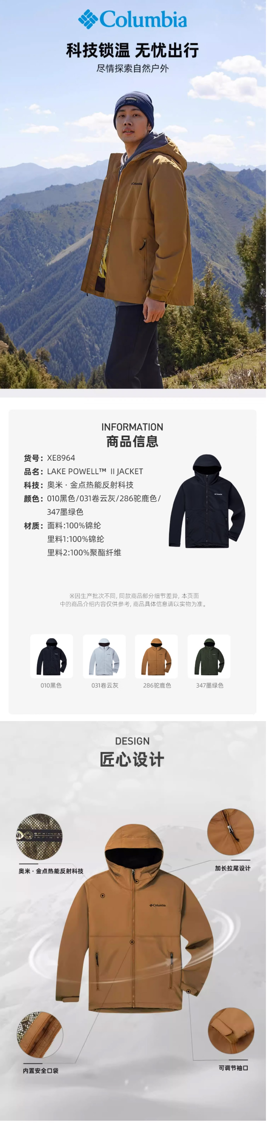 哥伦比亚户外男女金点热能保暖夹克徒步外套XE8964031