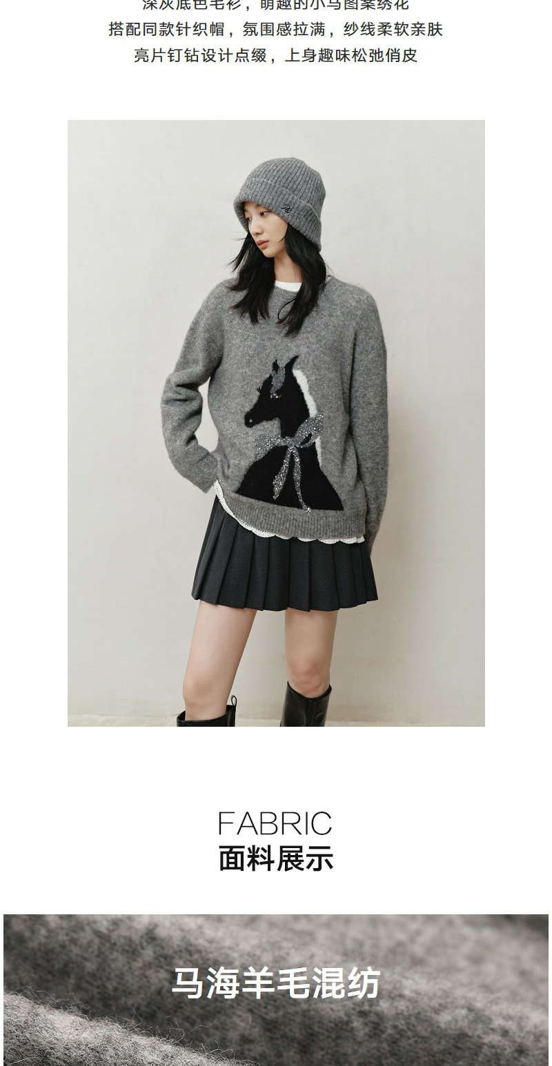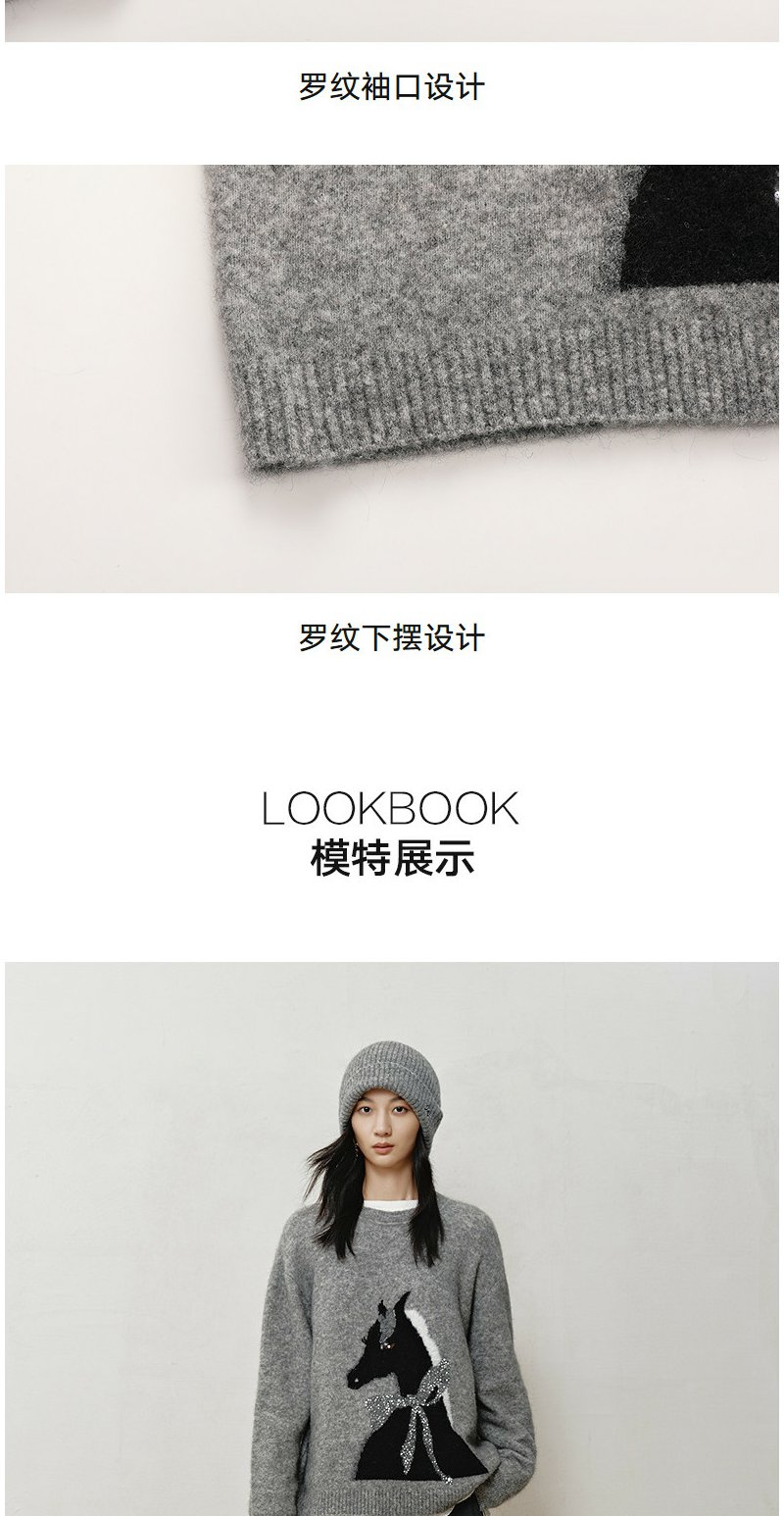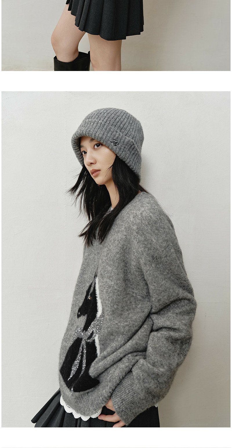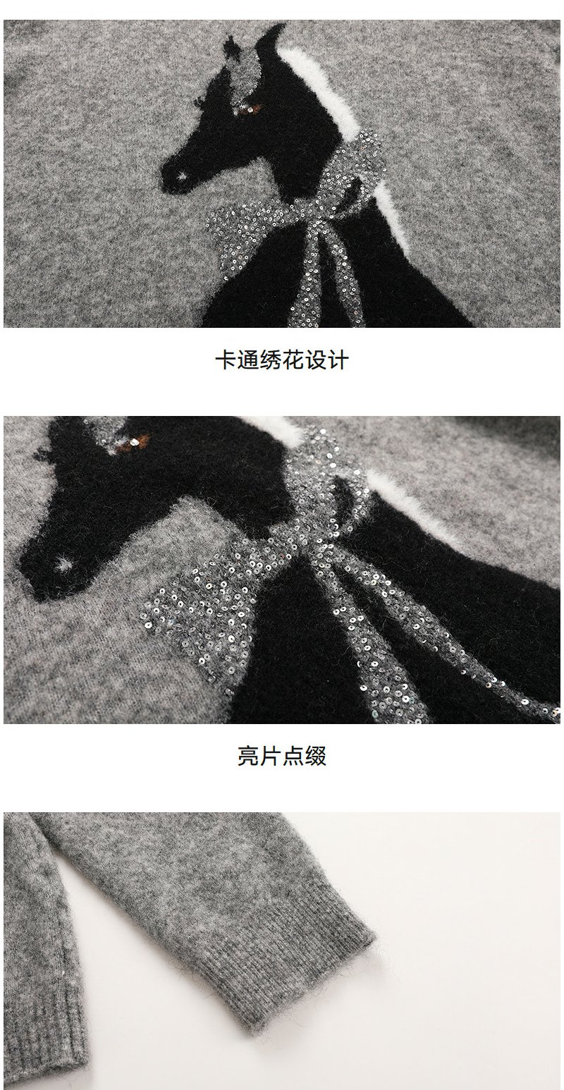 NEELLY纳俪商场同款冬新款时尚卡通趣味圆领针织衫女软糯休闲毛衣N25121A01165