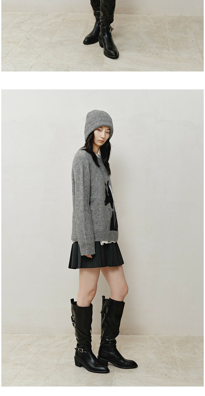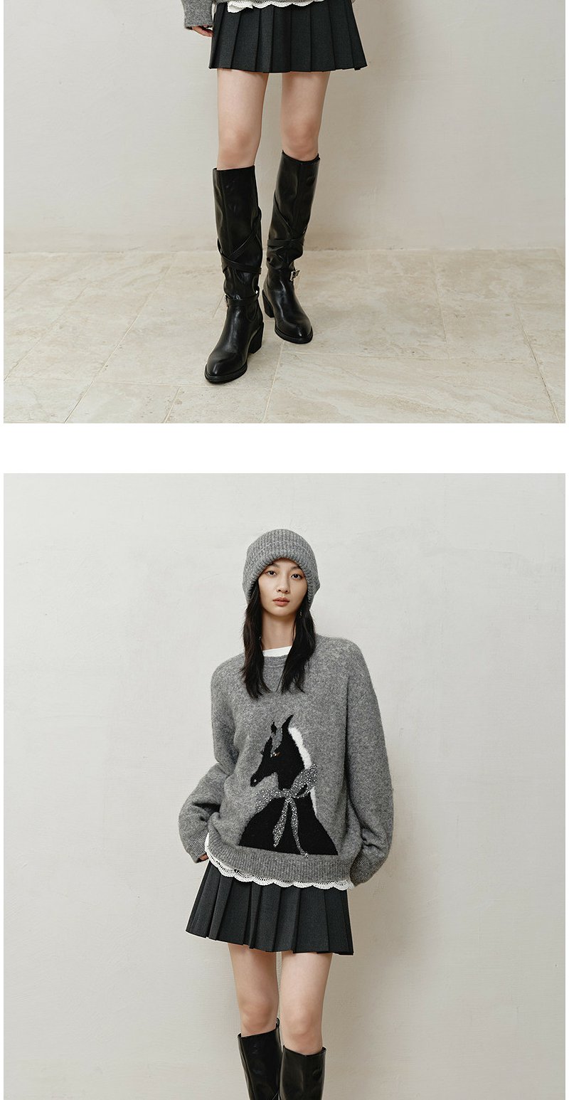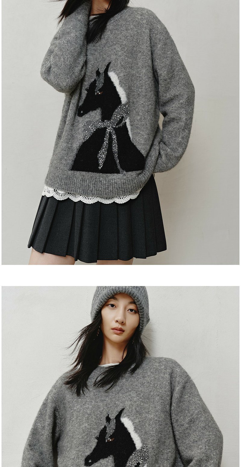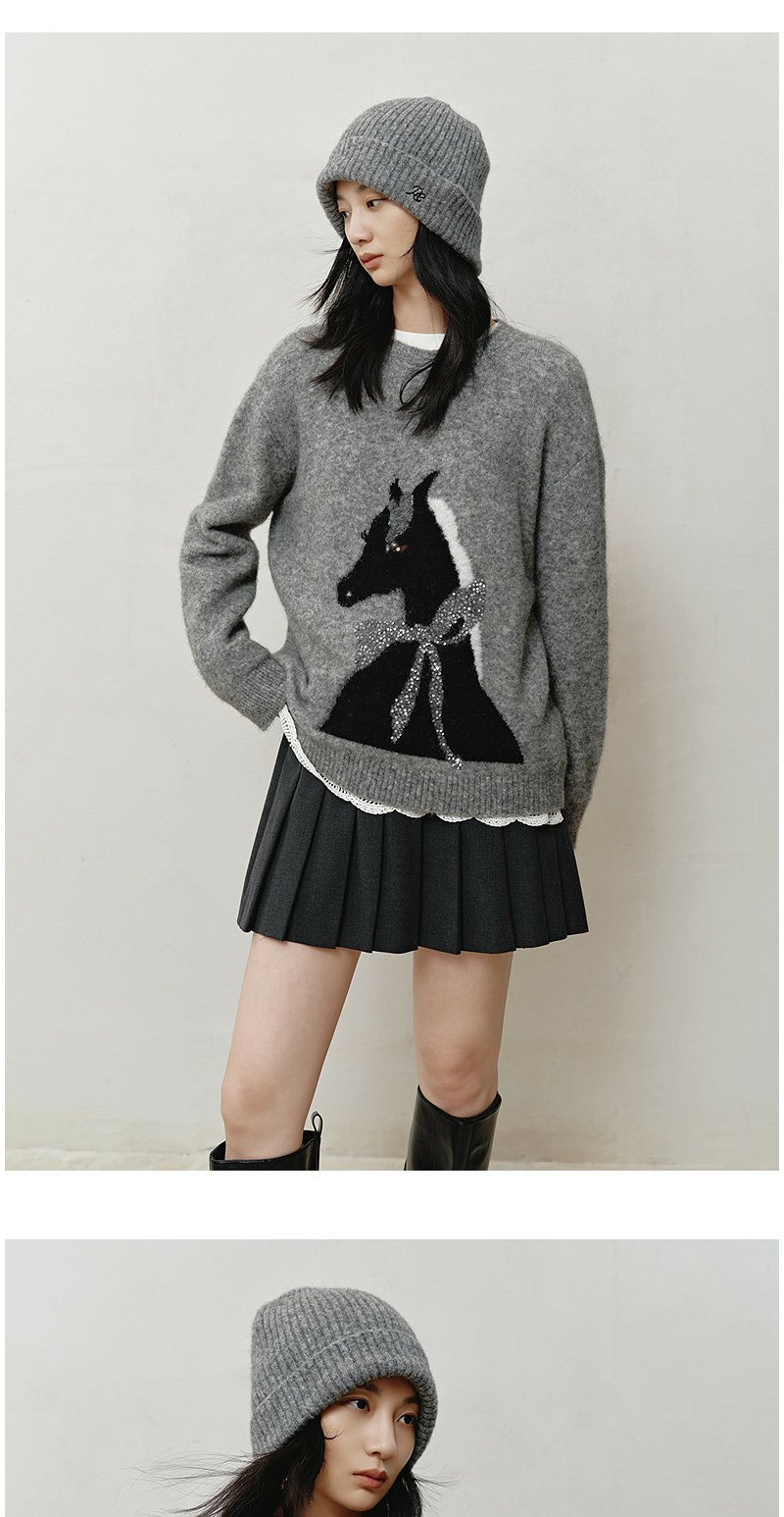 NEELLY纳俪商场同款冬新款时尚卡通趣味圆领针织衫女软糯休闲毛衣N25121A01165
