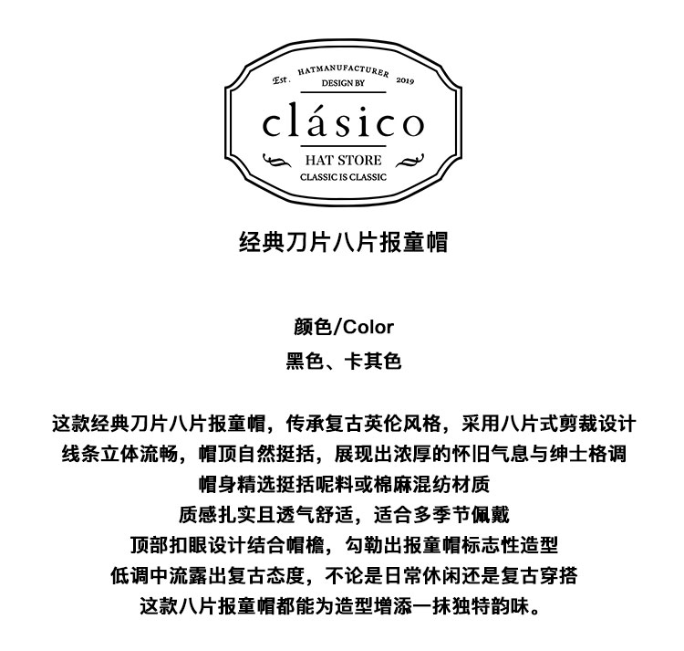 clasico/CLNB074/经典刀片八片报童帽