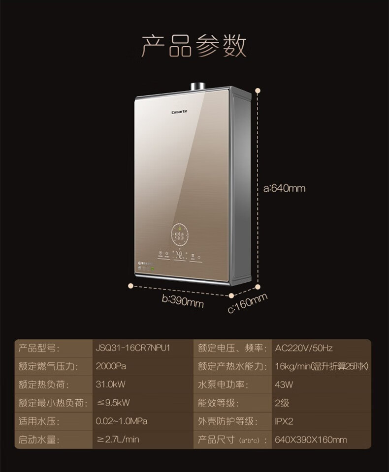 卡萨帝燃气热水器JSQ31-16CR7NPU1