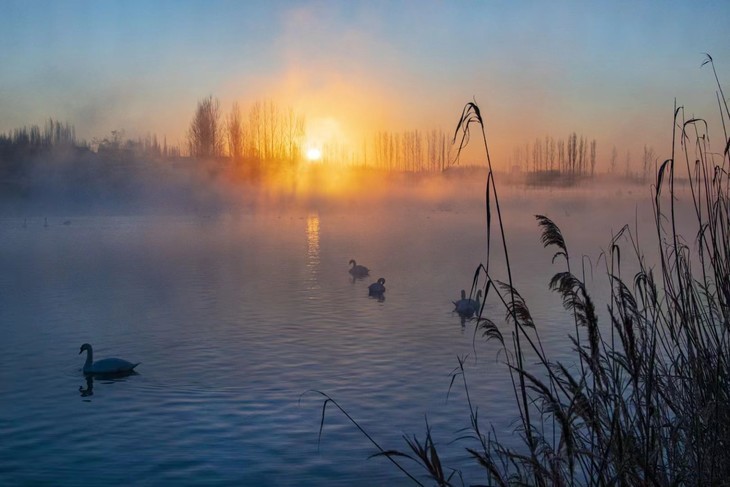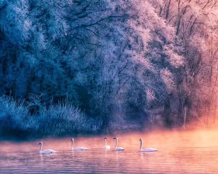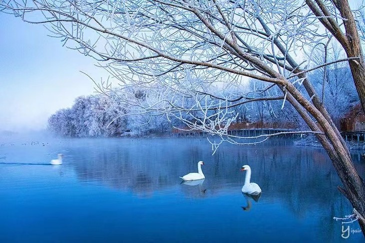 天鹅泉美得如同梦幻的童话,远方飞来过冬的白天鹅与季节限定的雾凇奇观。