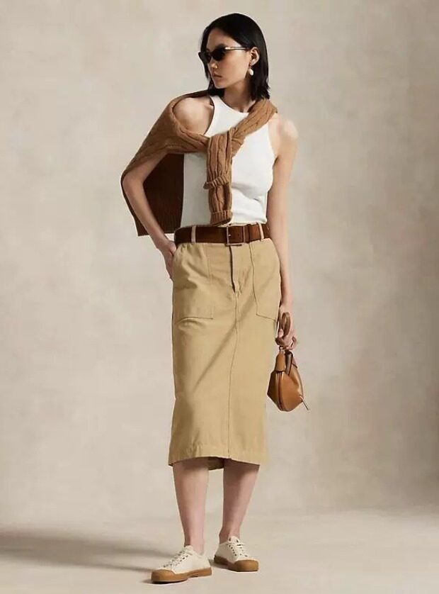 很典型的美式休闲风 复古文艺范儿 稍带一点工装感 过膝 但没有拖沓感