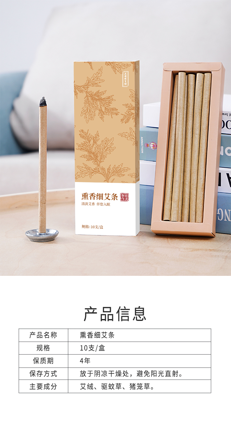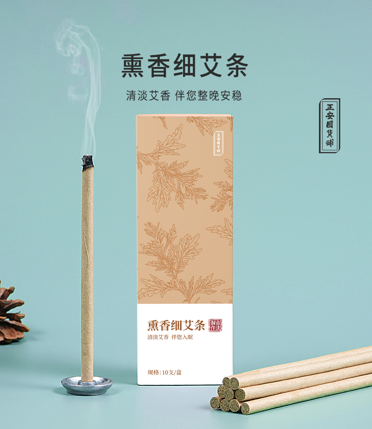 正安国· 熏香细艾条 清淡艾草香气 拒绝蚊虫骚扰 家庭防蚊防虫常备 10支/盒 赠香托