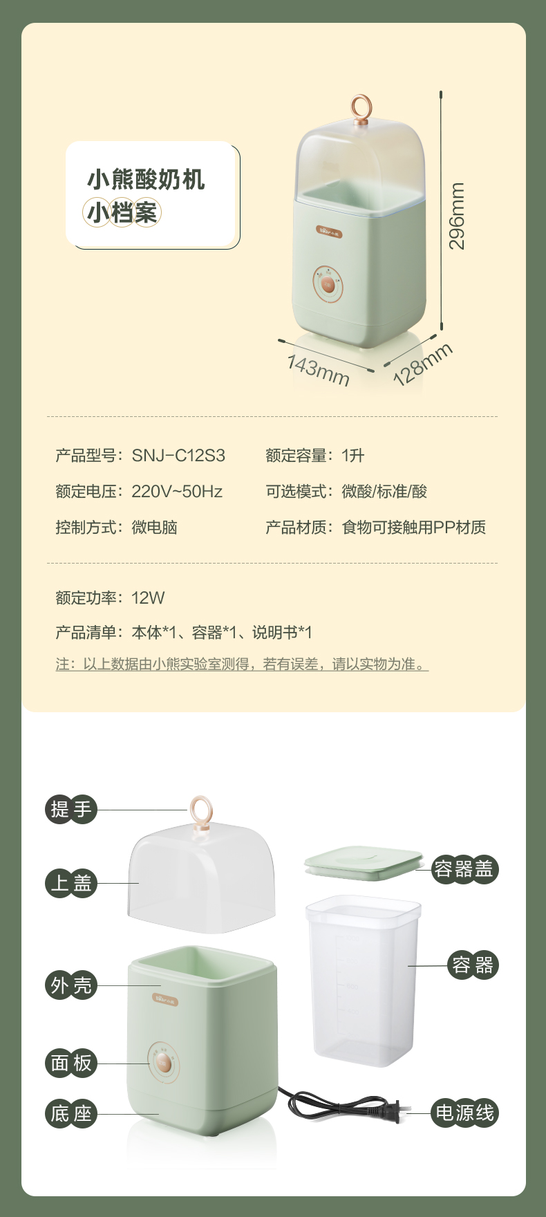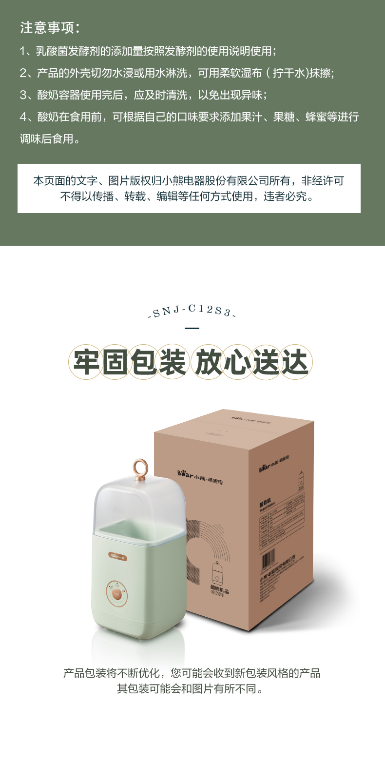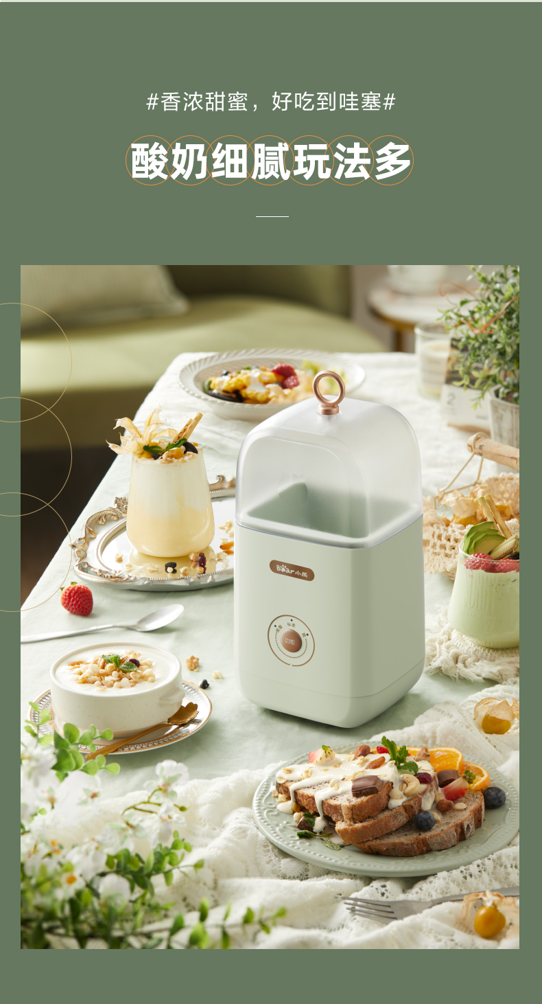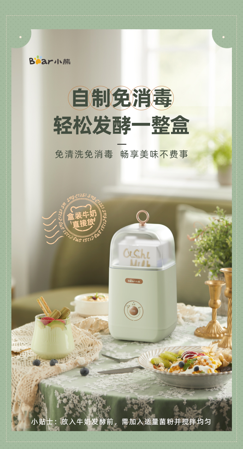 【小程序】小熊酸奶机家用小型立体发酵智能多功能宿舍全自动自制酸奶发酵机 SNJ-C12S3 浅绿色