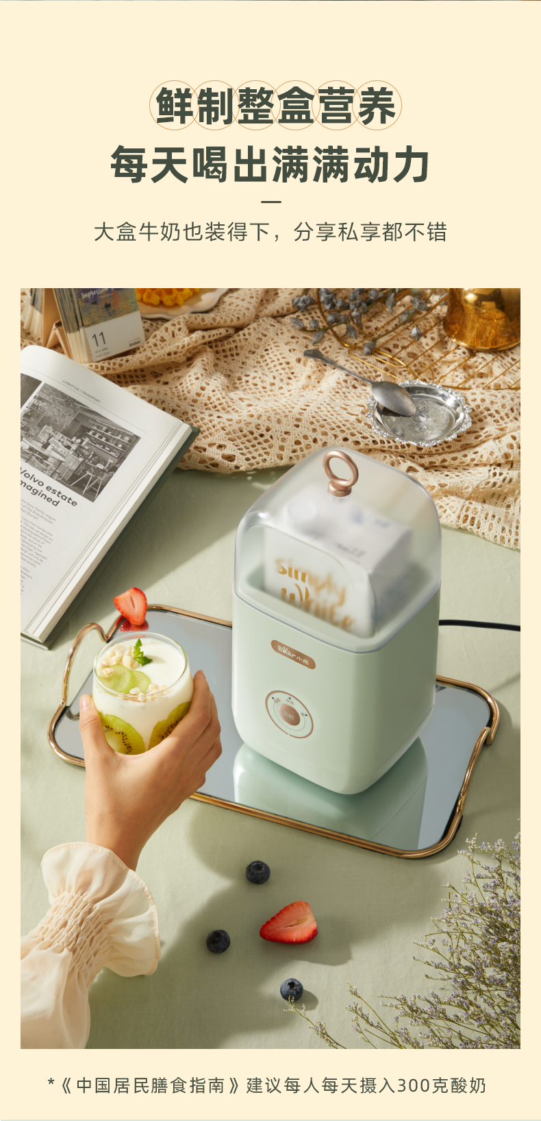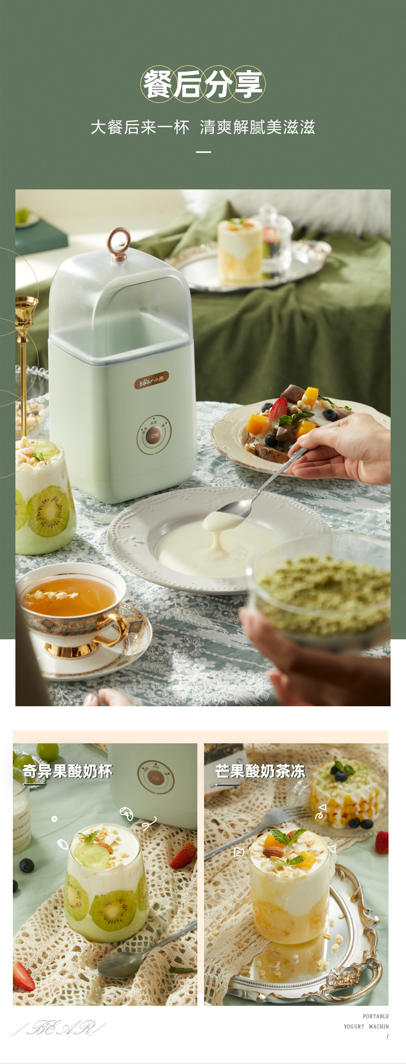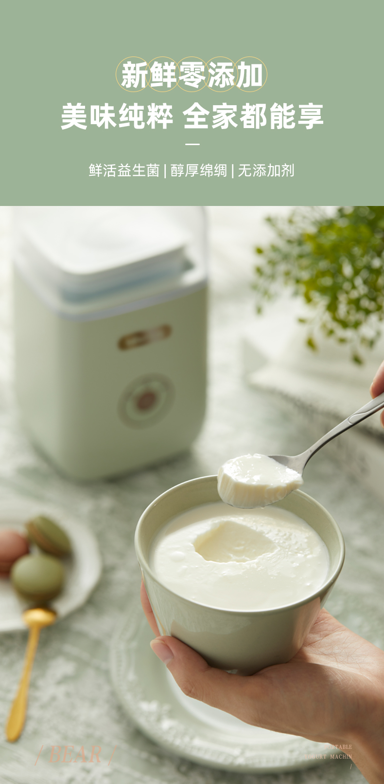 【小程序】小熊酸奶机家用小型立体发酵智能多功能宿舍全自动自制酸奶发酵机 SNJ-C12S3 浅绿色