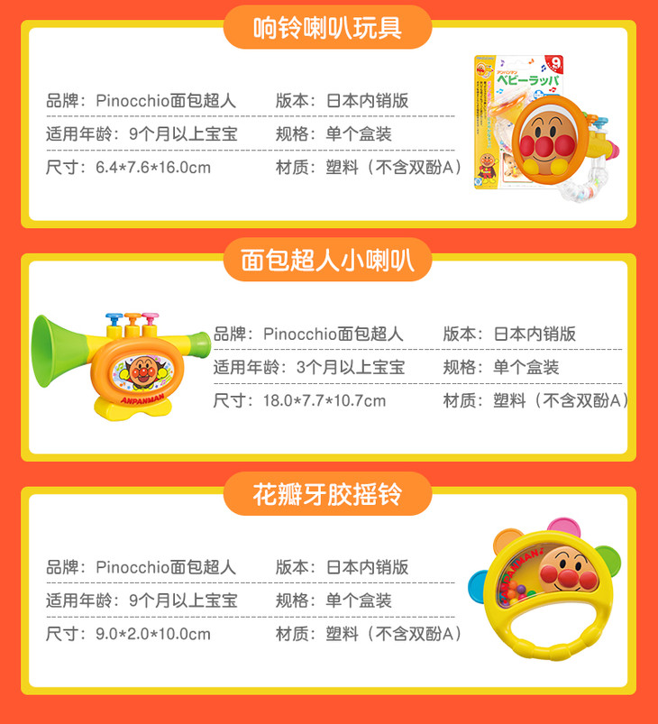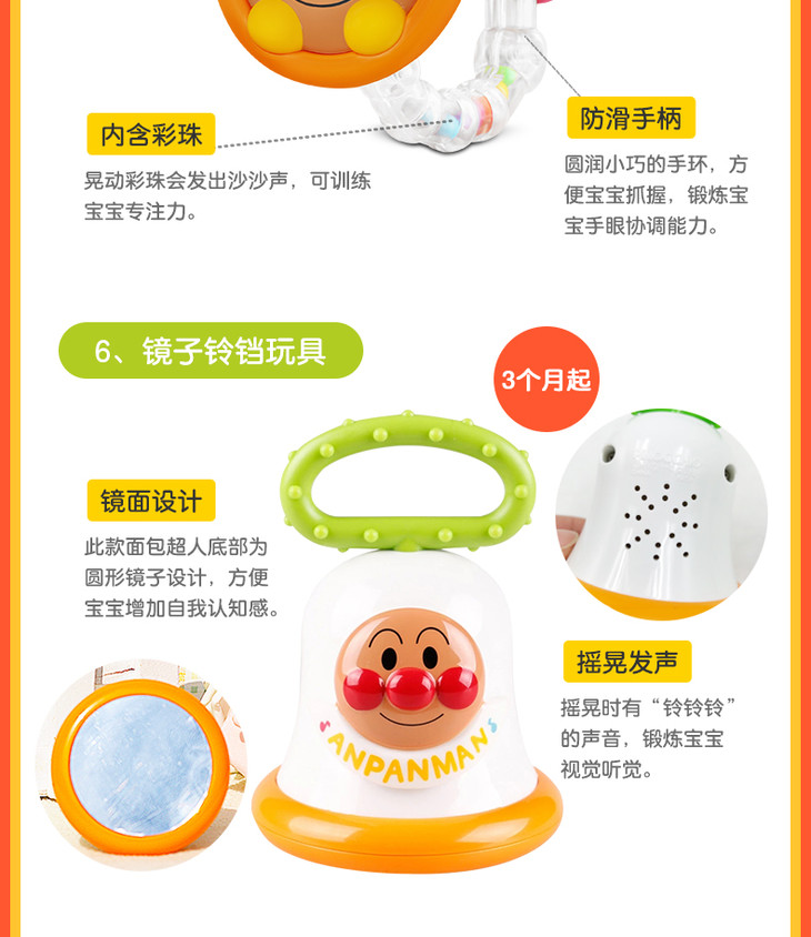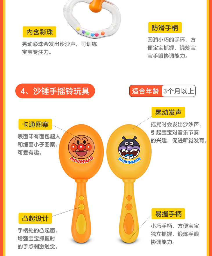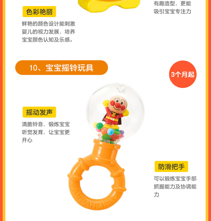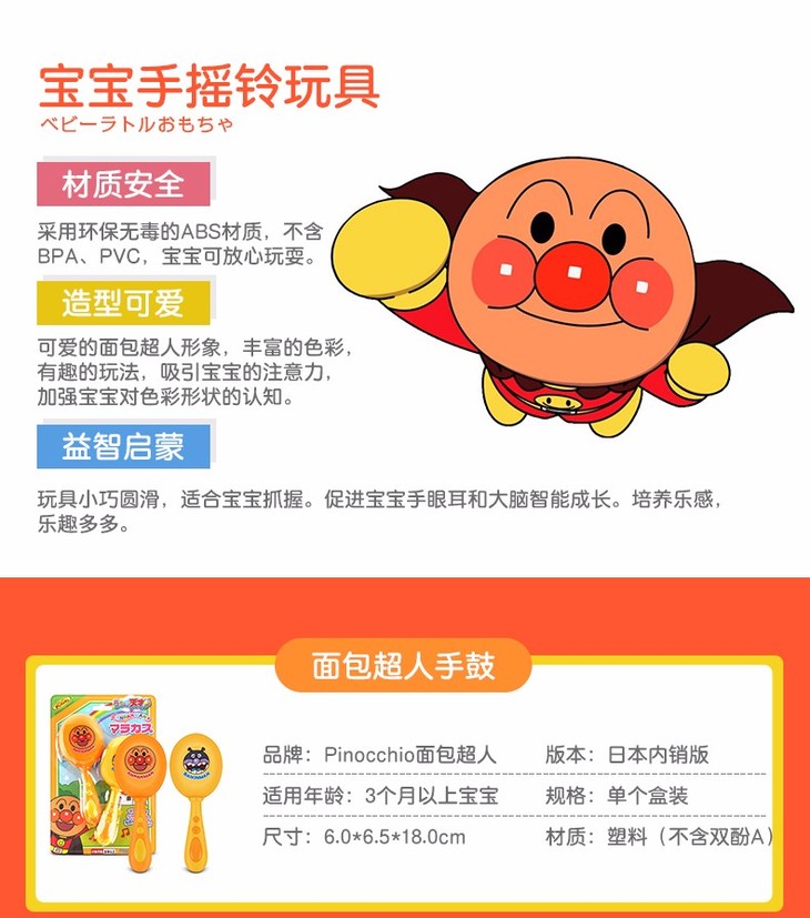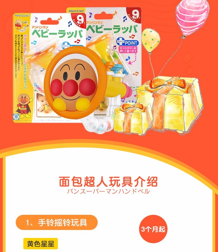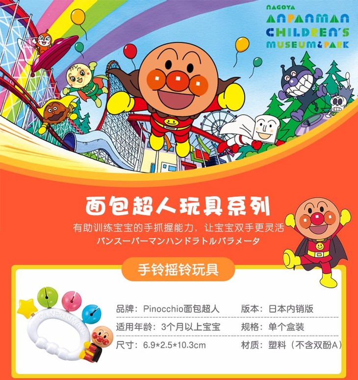 【保税仓】日本PINOCCHIO面包超人彩珠花瓣手摇铃(日本内销版)