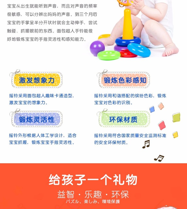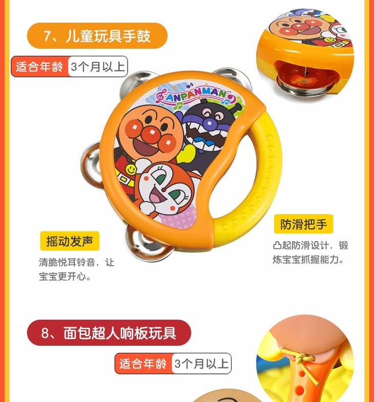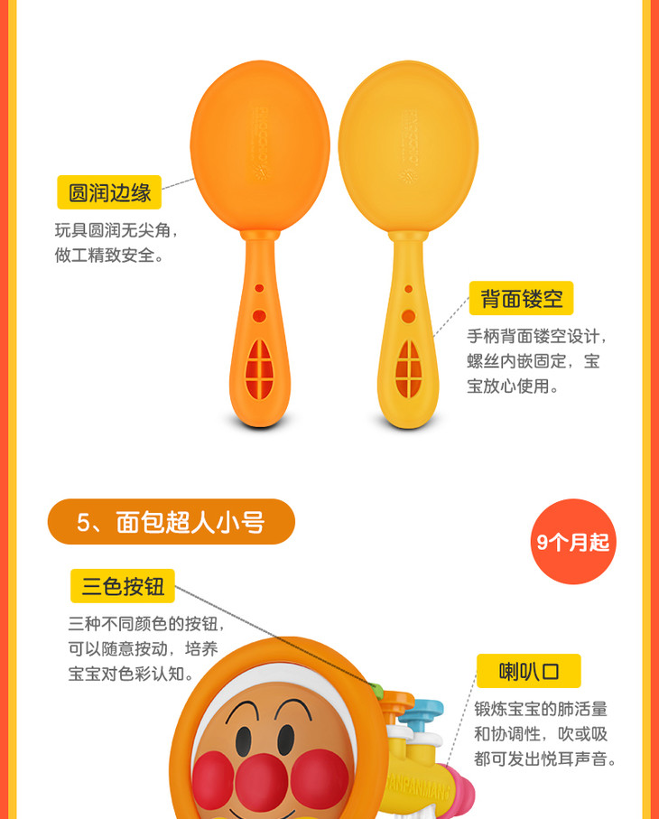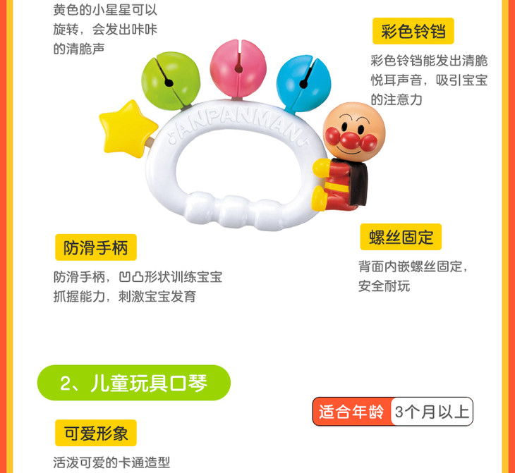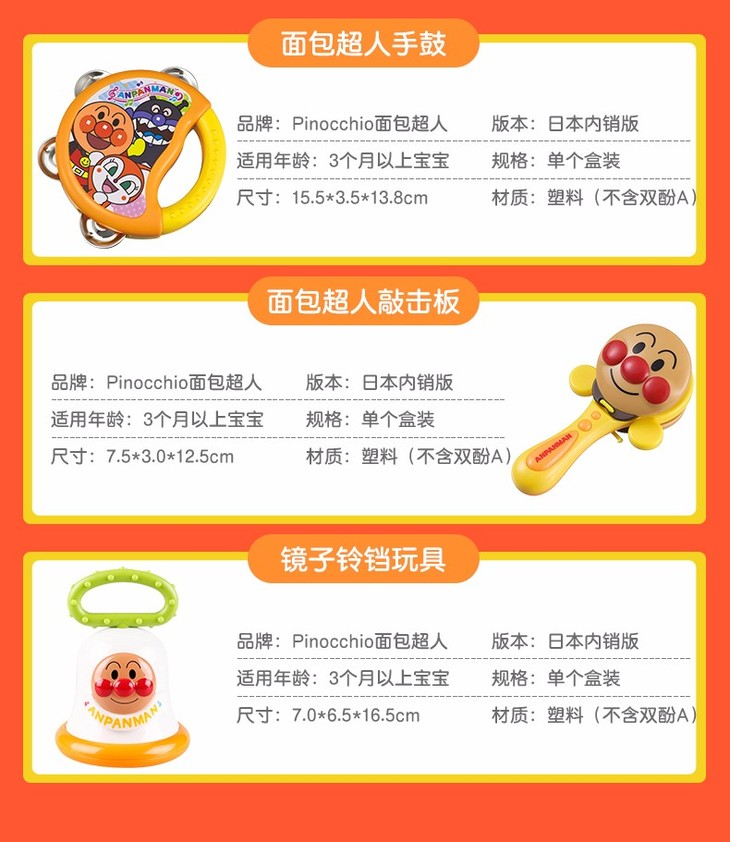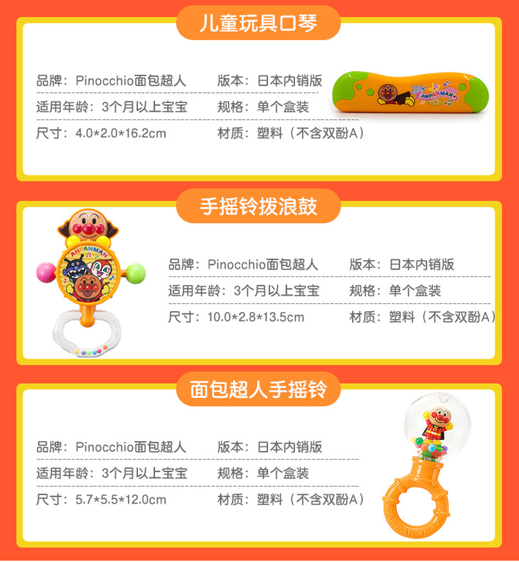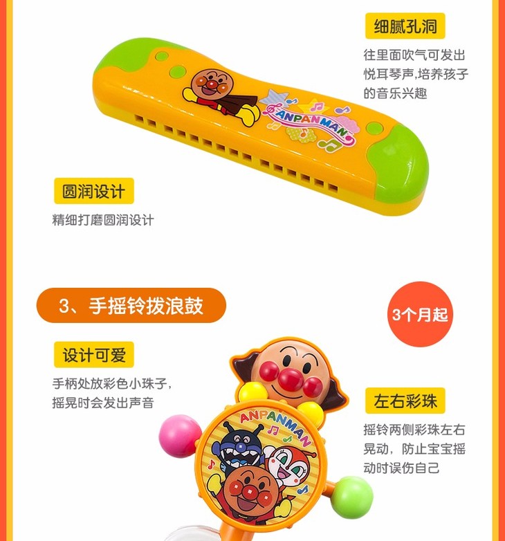【保税仓】日本PINOCCHIO面包超人彩珠花瓣手摇铃(日本内销版)