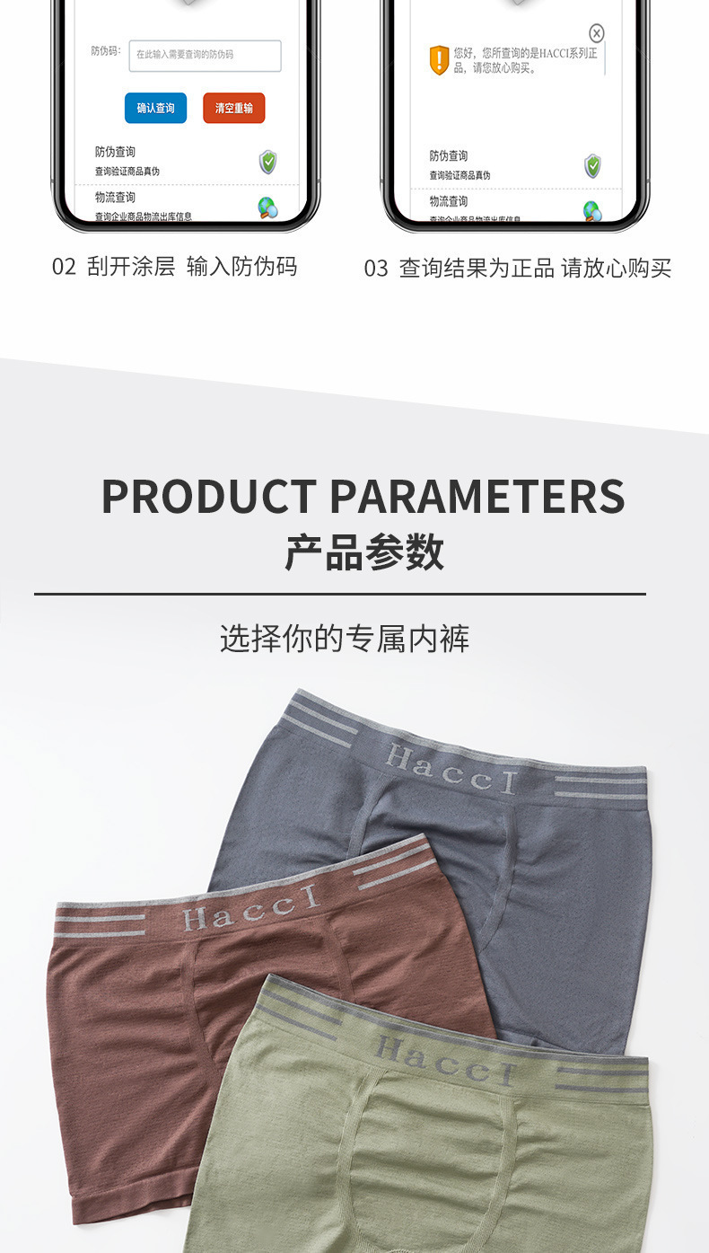黛唯梵HACCI男士内裤漫画裤1.0中腰舒适透气莫代尔无痕男士平角内裤盒装国庆清明出游