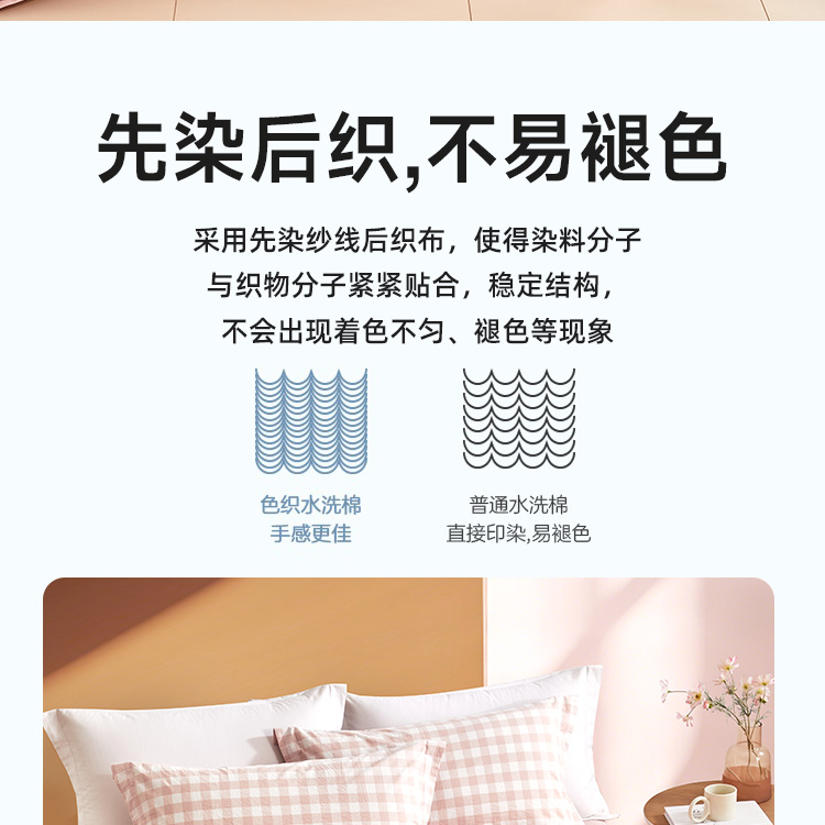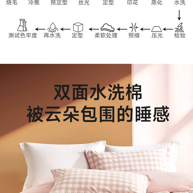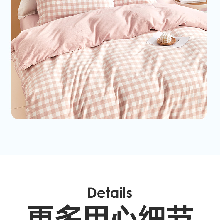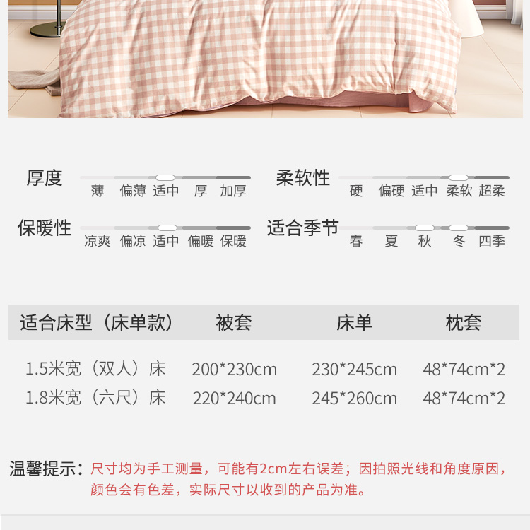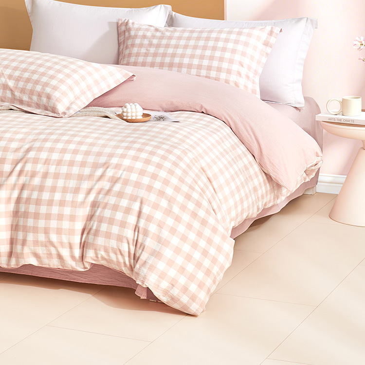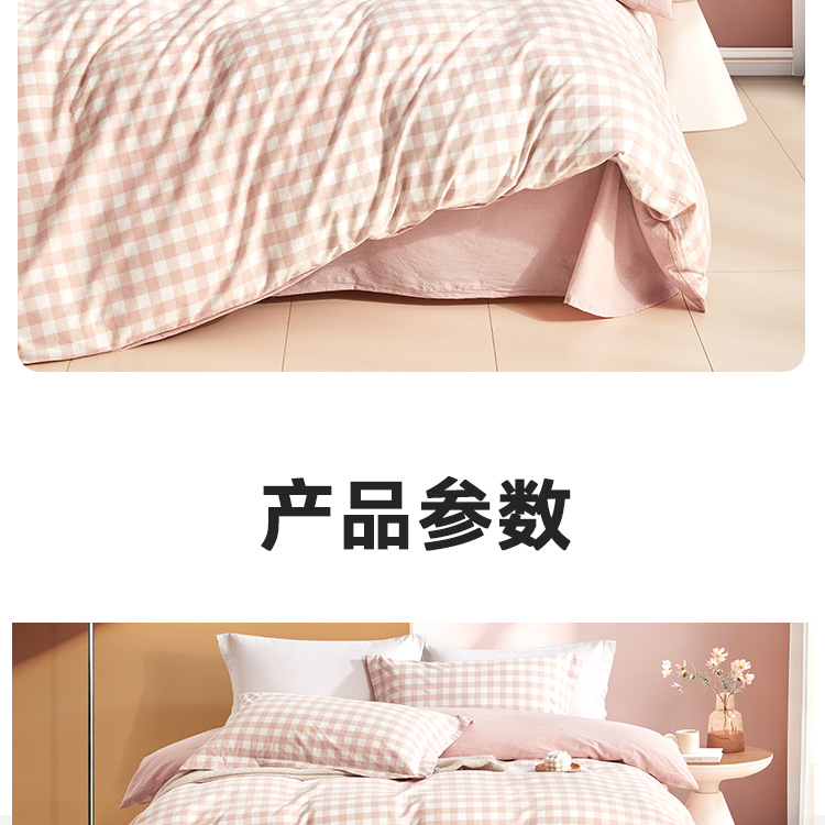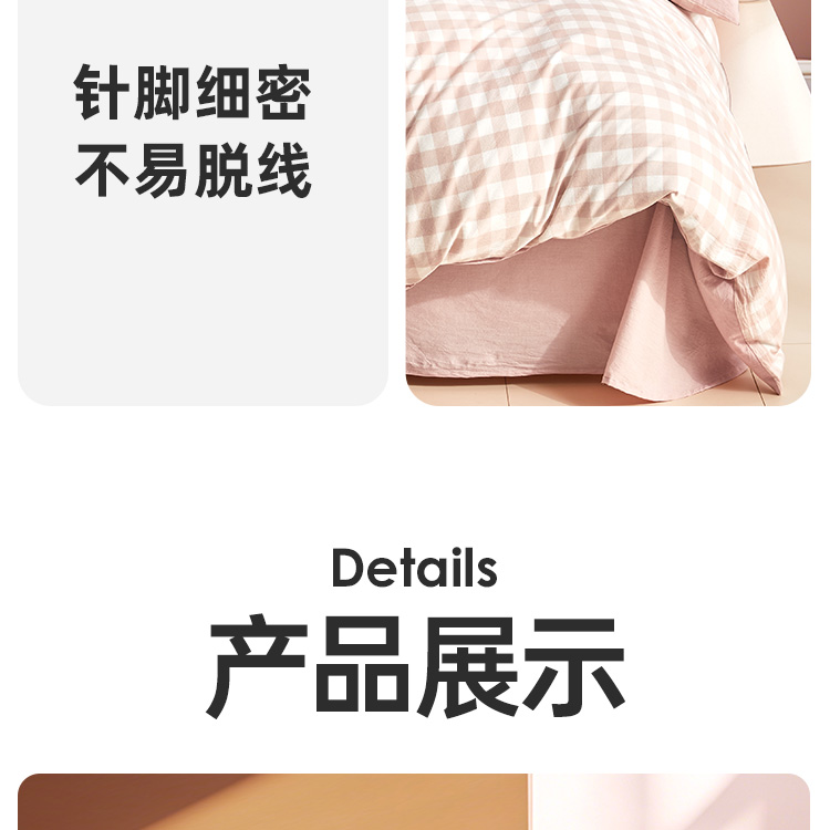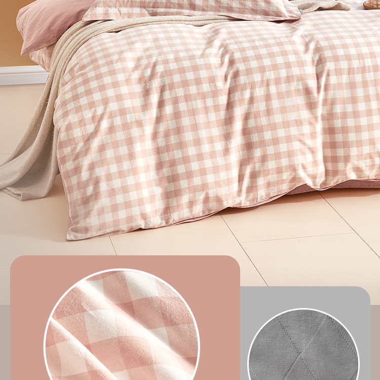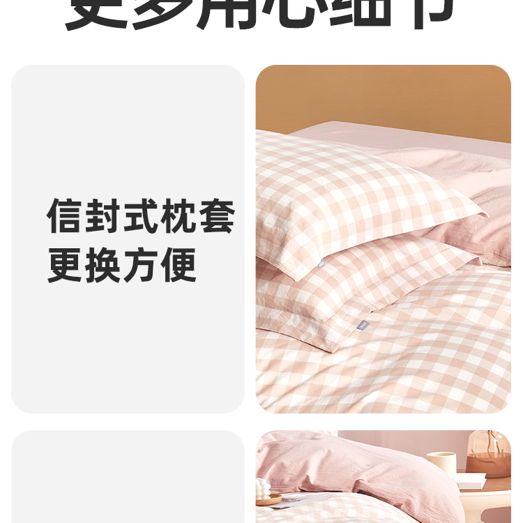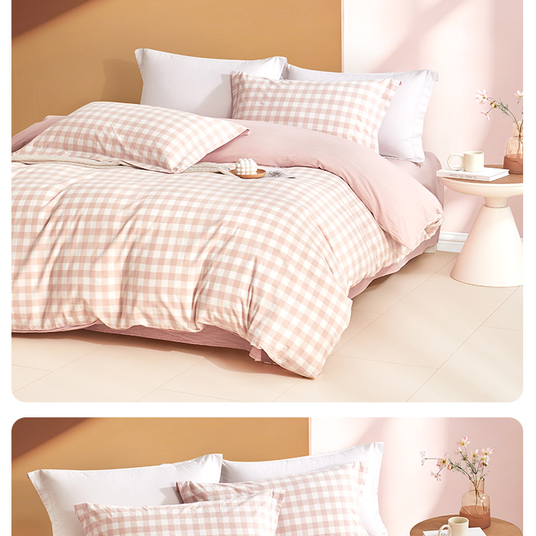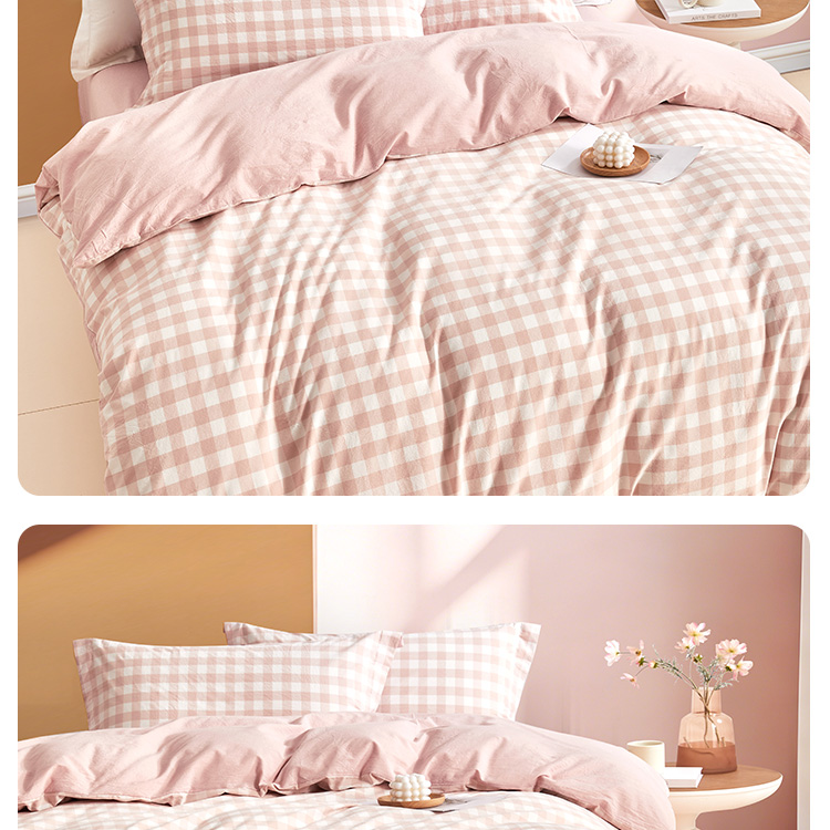 日式色织水洗棉四件套(水粉格)