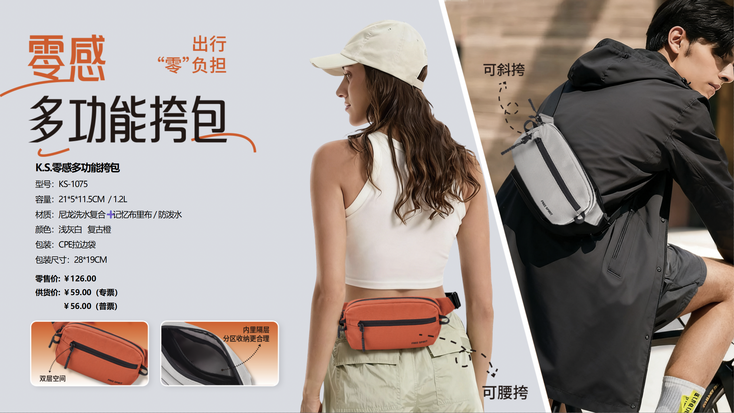K.S.零感多功能挎包