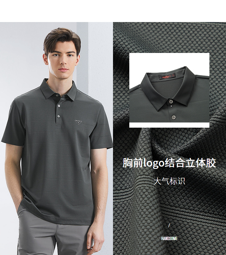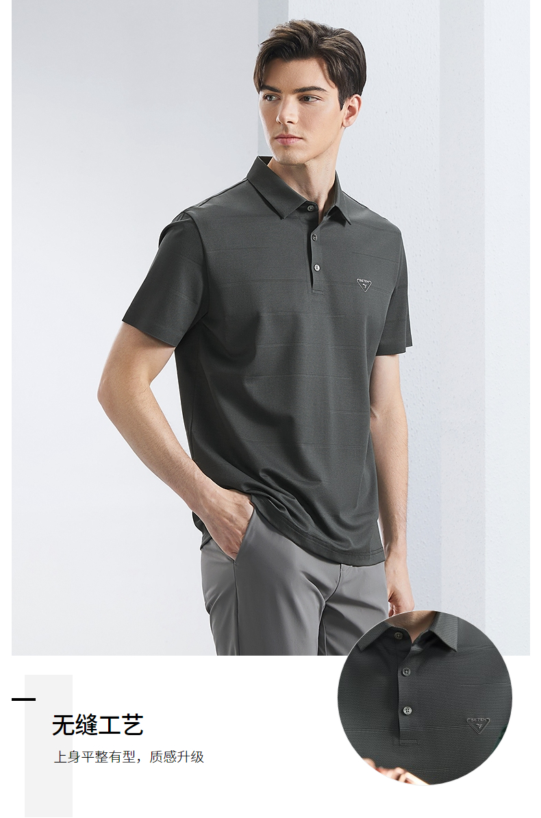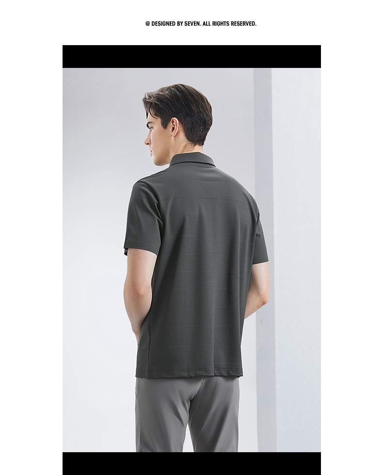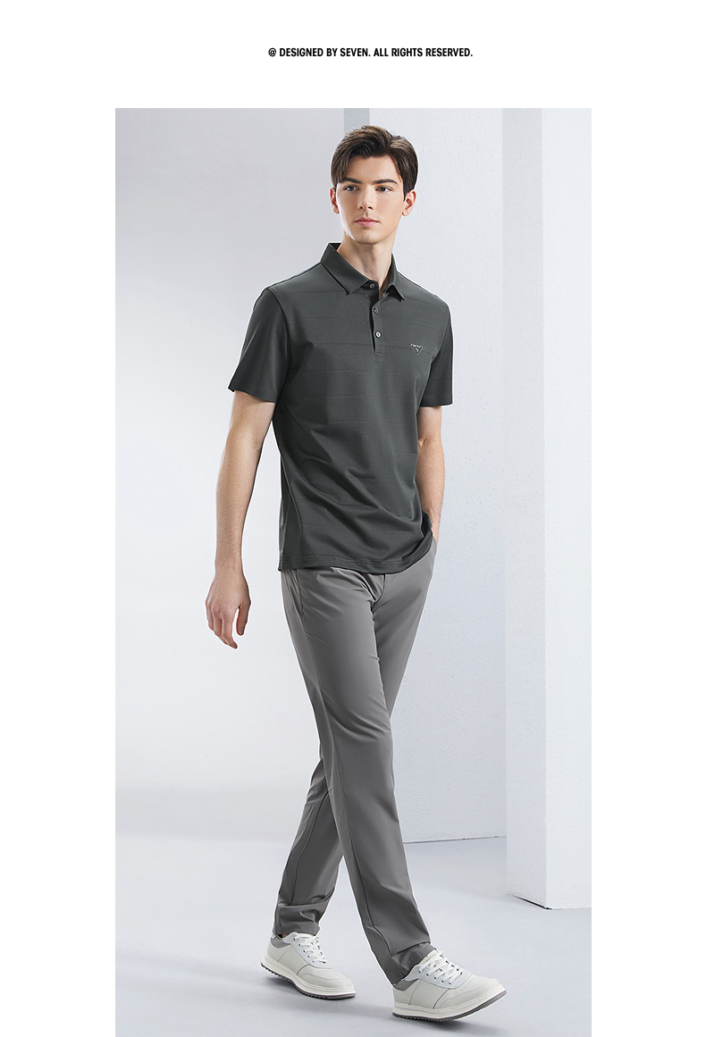 柒牌polo衫短袖男2024夏季新款暗条纹时尚休闲中青年翻领T恤上衣126T70280
