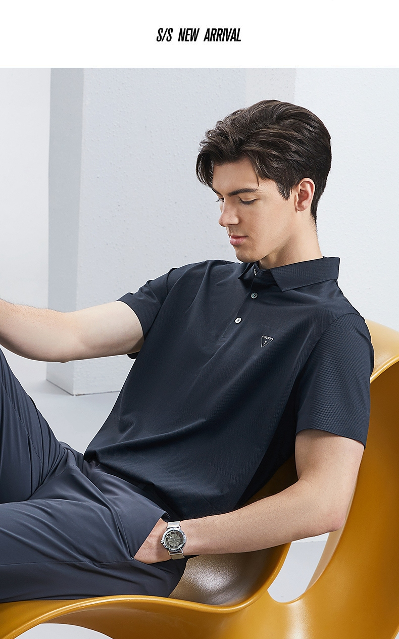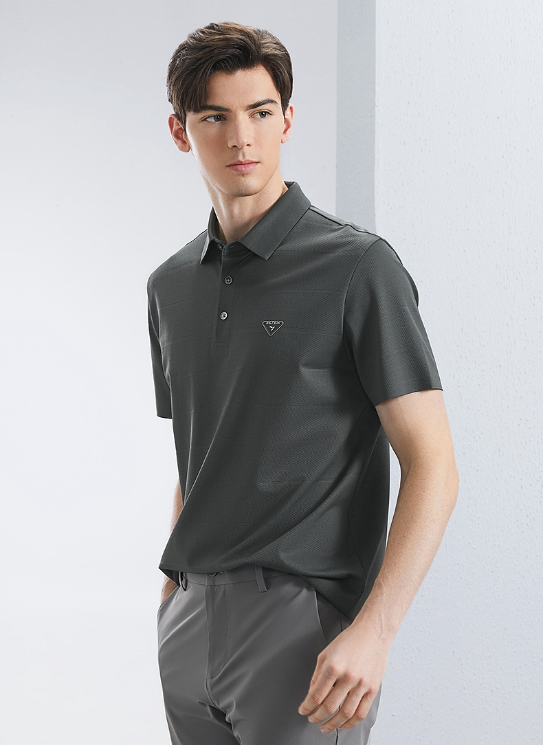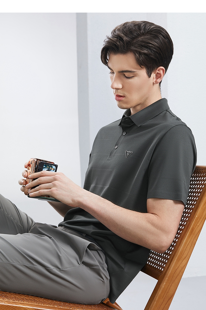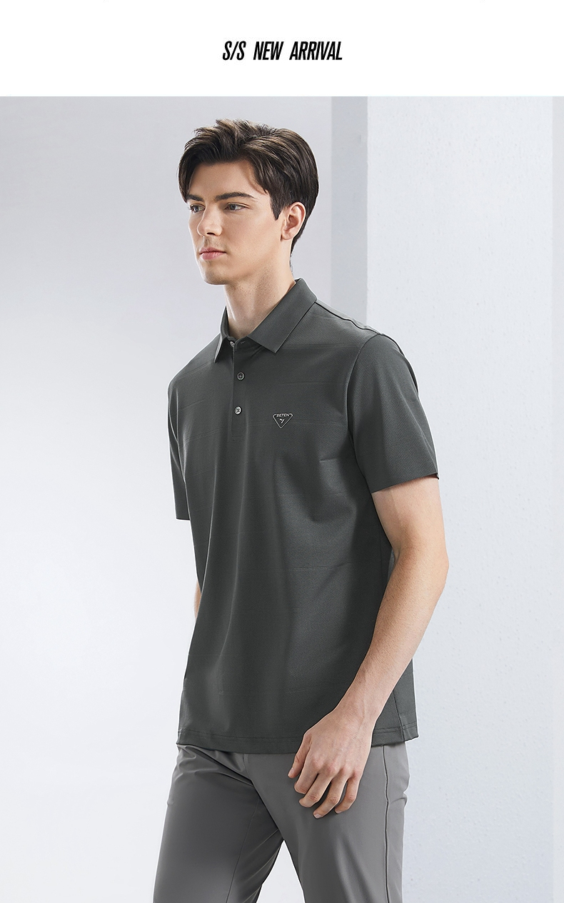 柒牌polo衫短袖男2024夏季新款暗条纹时尚休闲中青年翻领T恤上衣126T70280