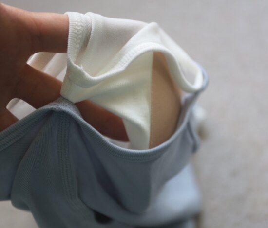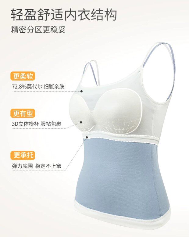 里外层 由三处缝线点固定 前后肩带和腋下 胸垫侧面不固定 外层松弛感就更好