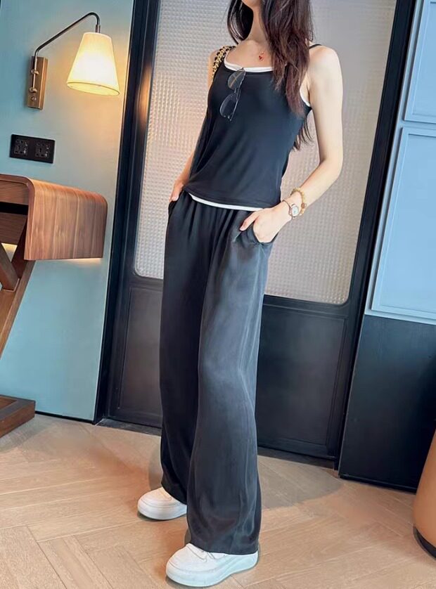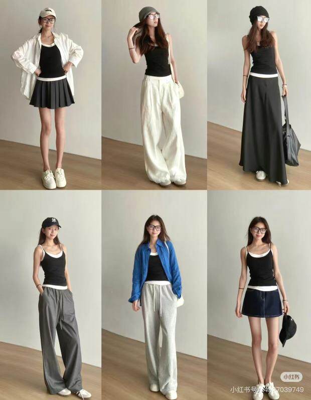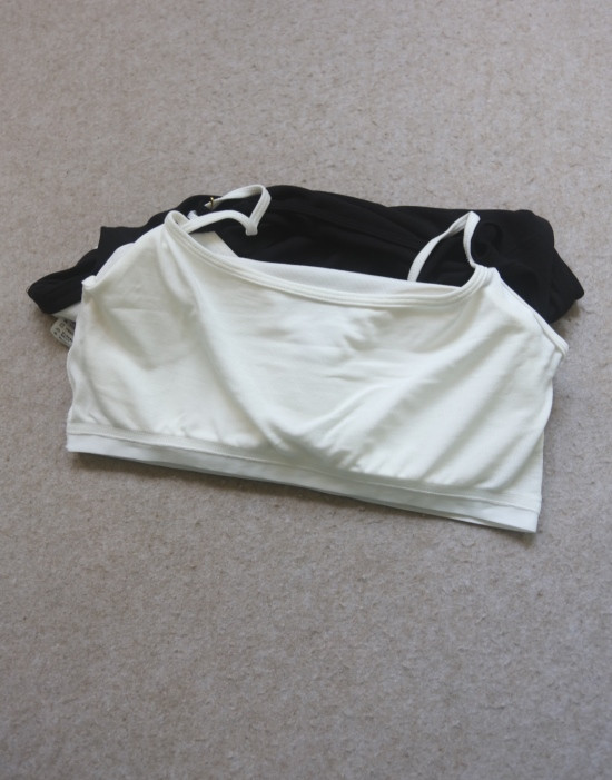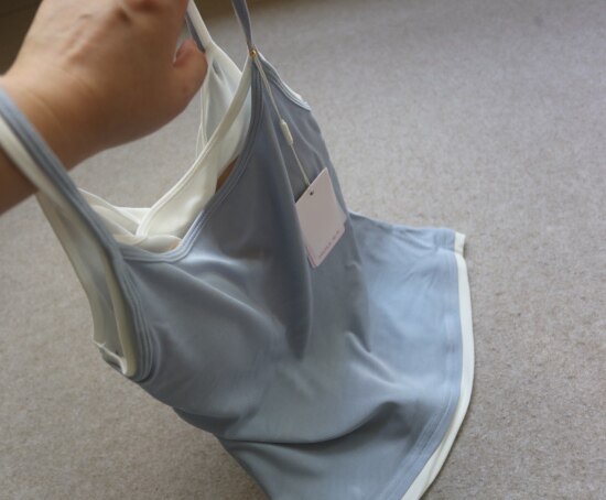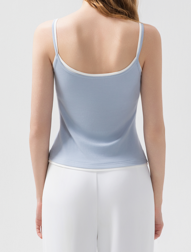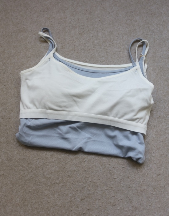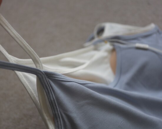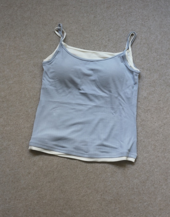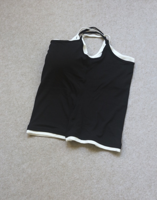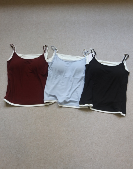 版型方面 假两件的样式 两根细肩带 里衬都是白色 底边 是拼接上的小白边