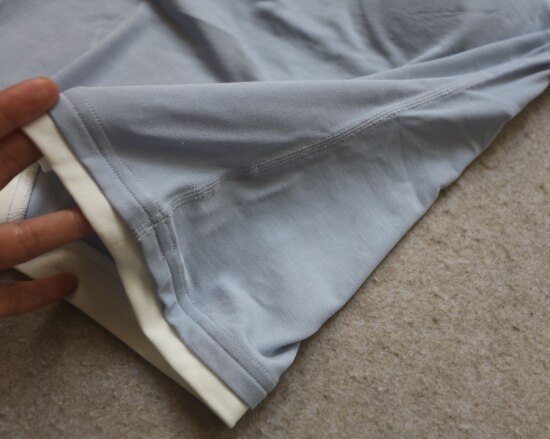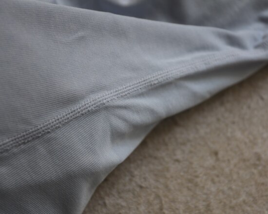 里外层的两侧和底边 都是平整线迹 缝线都有弹力 不摩肉肉