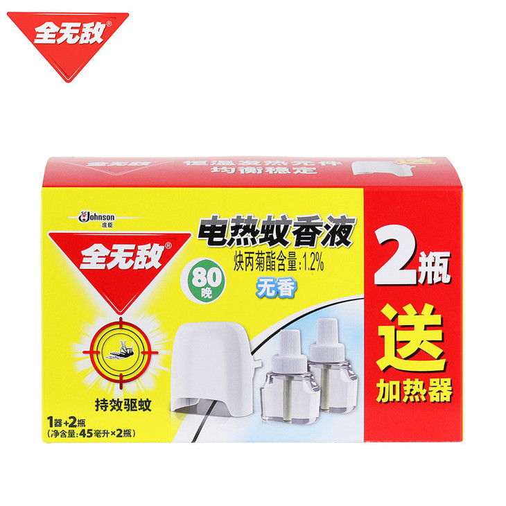 【电蚊香】全无敌电热蚊香液2瓶共80晚无香+无线加热器套装 驱蚊灭蚊液器