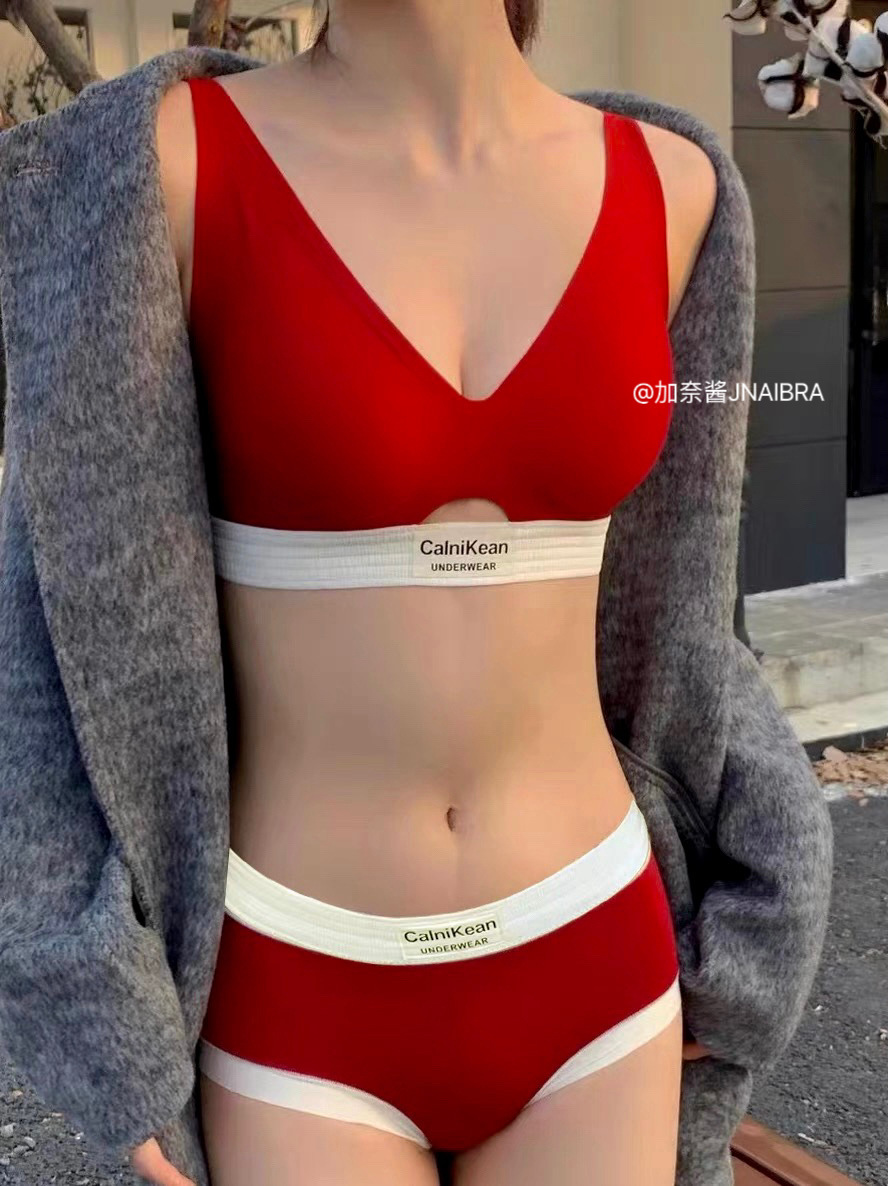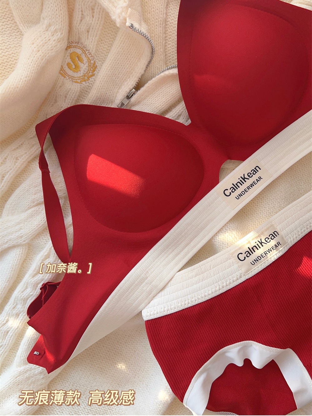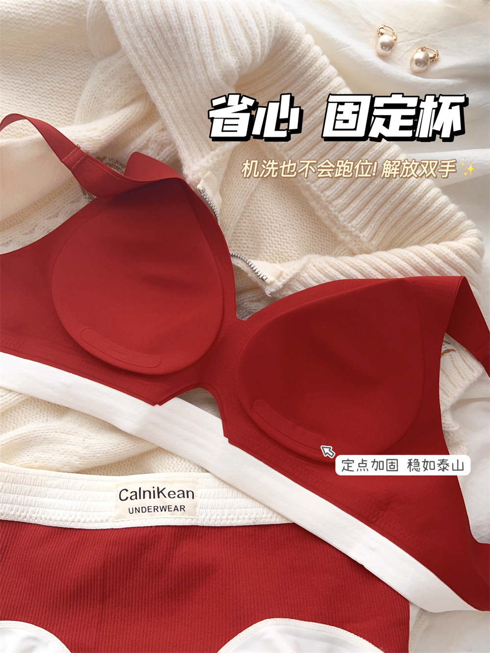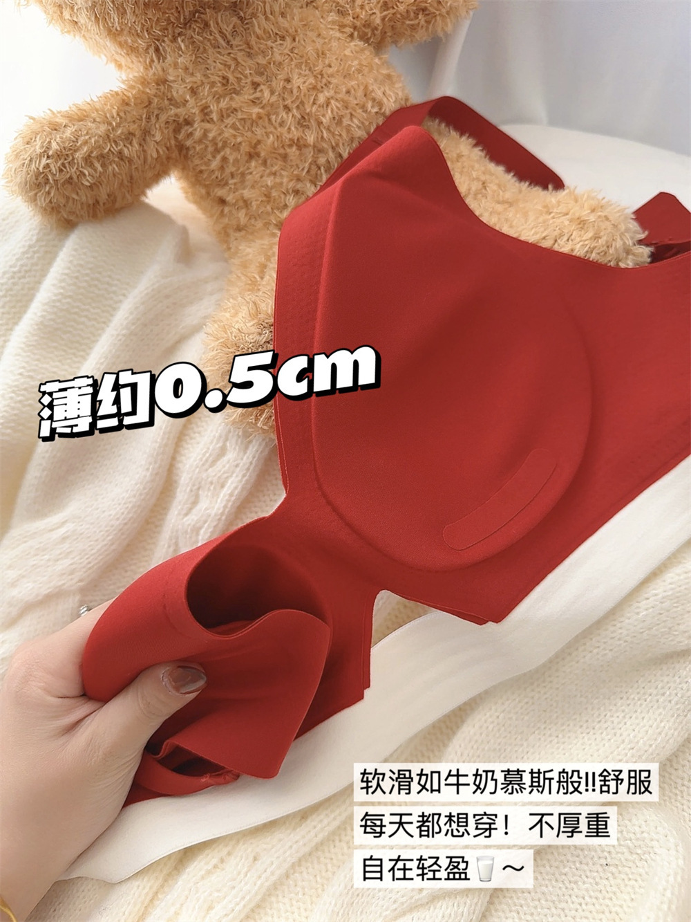 【双皮奶系列!全方位软提拉奶皮内衣】本命年红色无痕内衣女新娘结婚提拉收副乳小胸显大聚拢文胸罩套装。ry