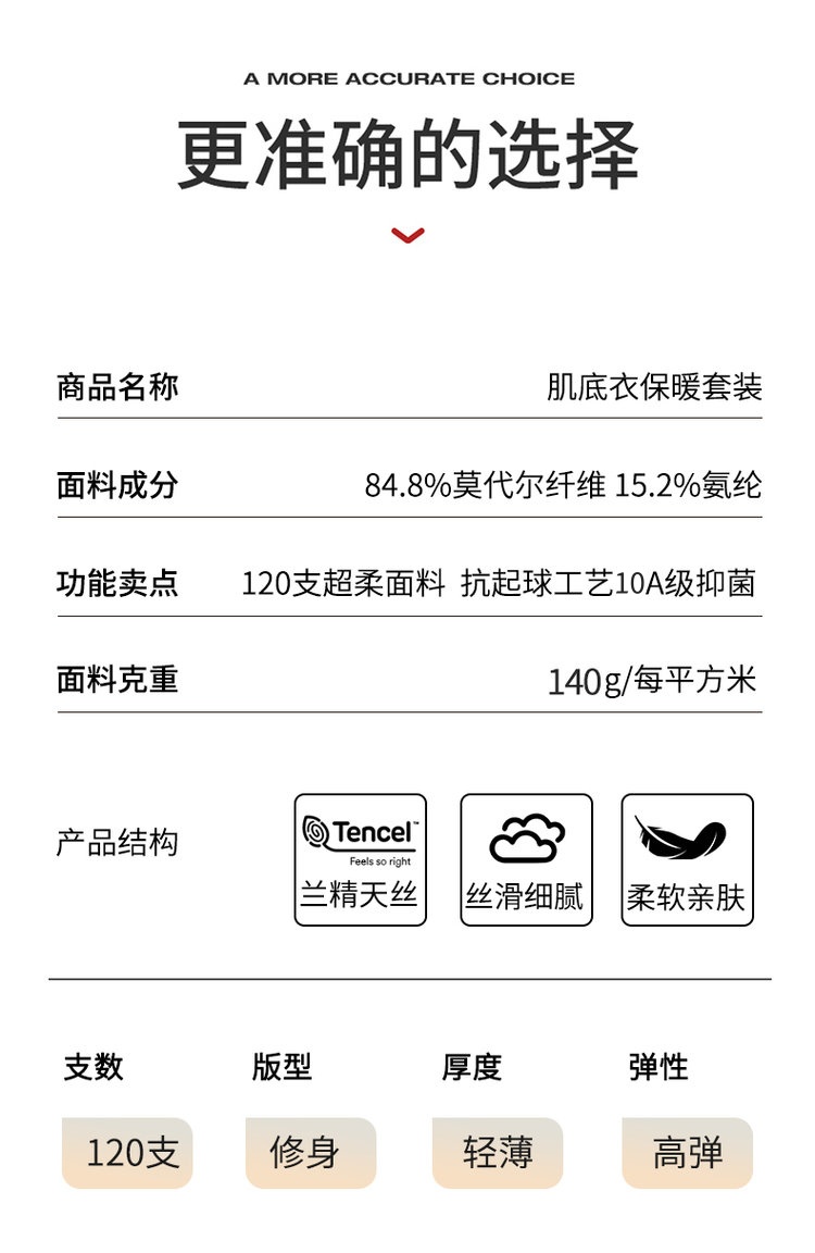 【林栖好物】A963141兰精莫代尔120支超薄肌底衣 10A级抗菌贴身穿很放心 4级抗起球耐磨抗起球柔肤套装RJ039