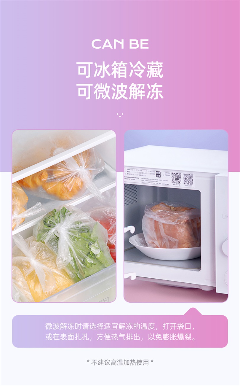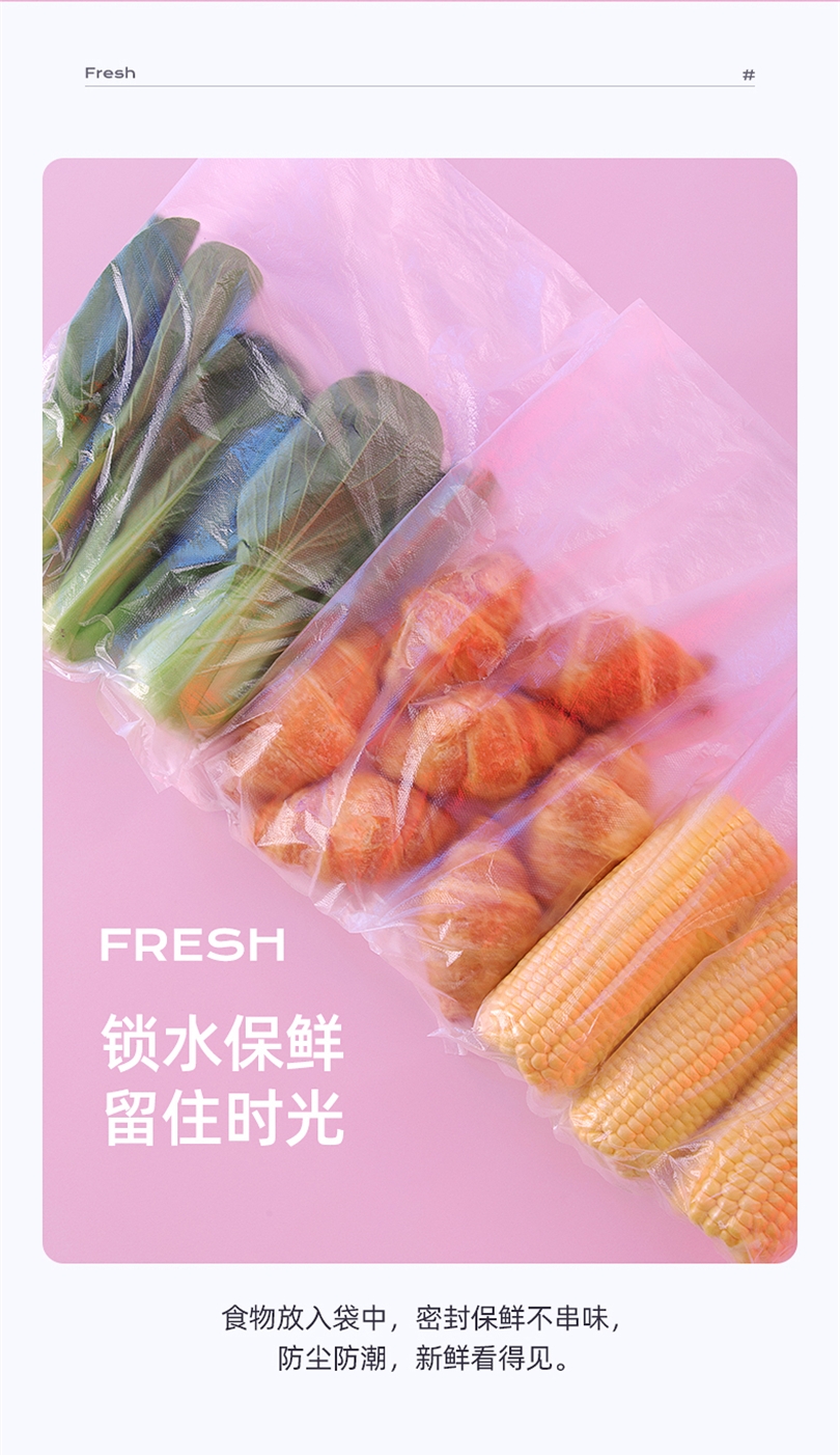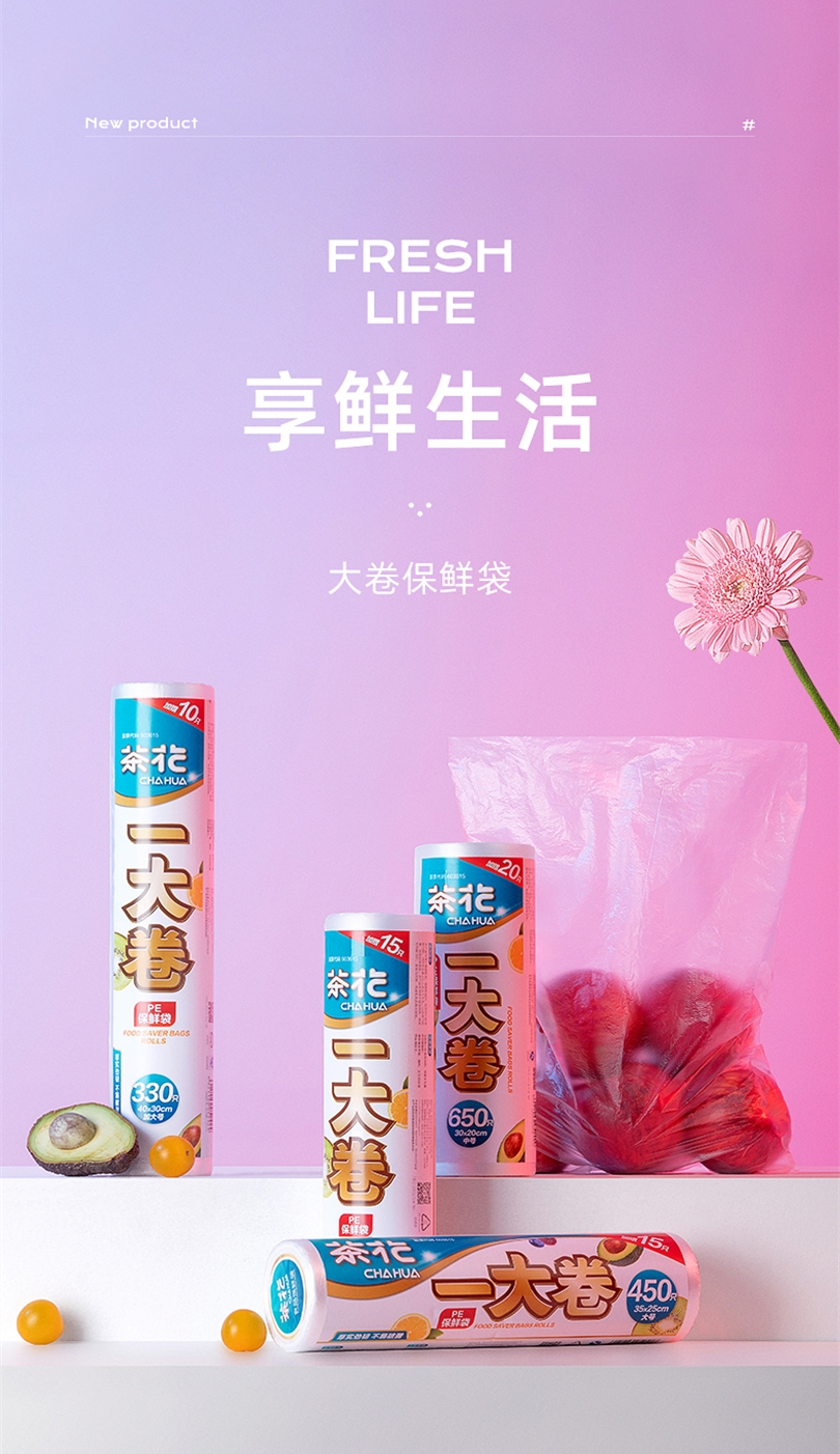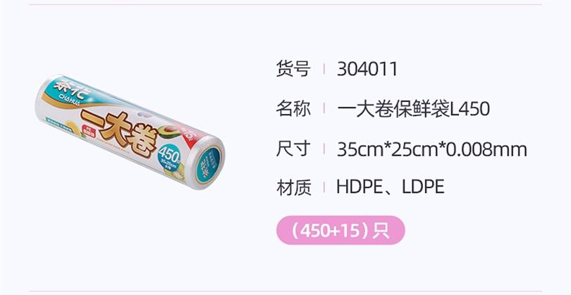 茶花厨房家用一次性PE保鲜袋食品袋冰箱冷冻袋子大号450只304011