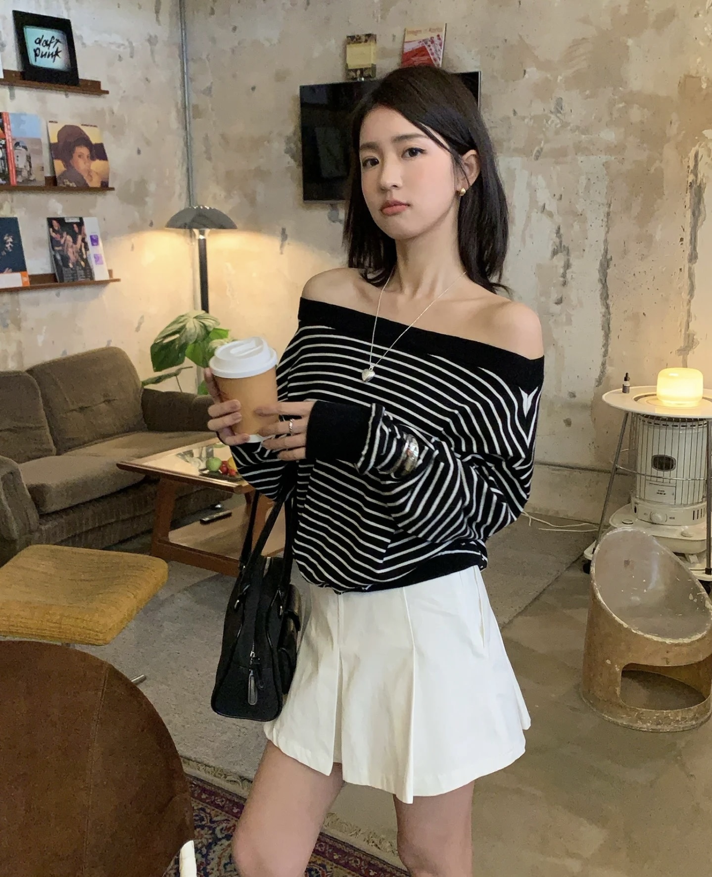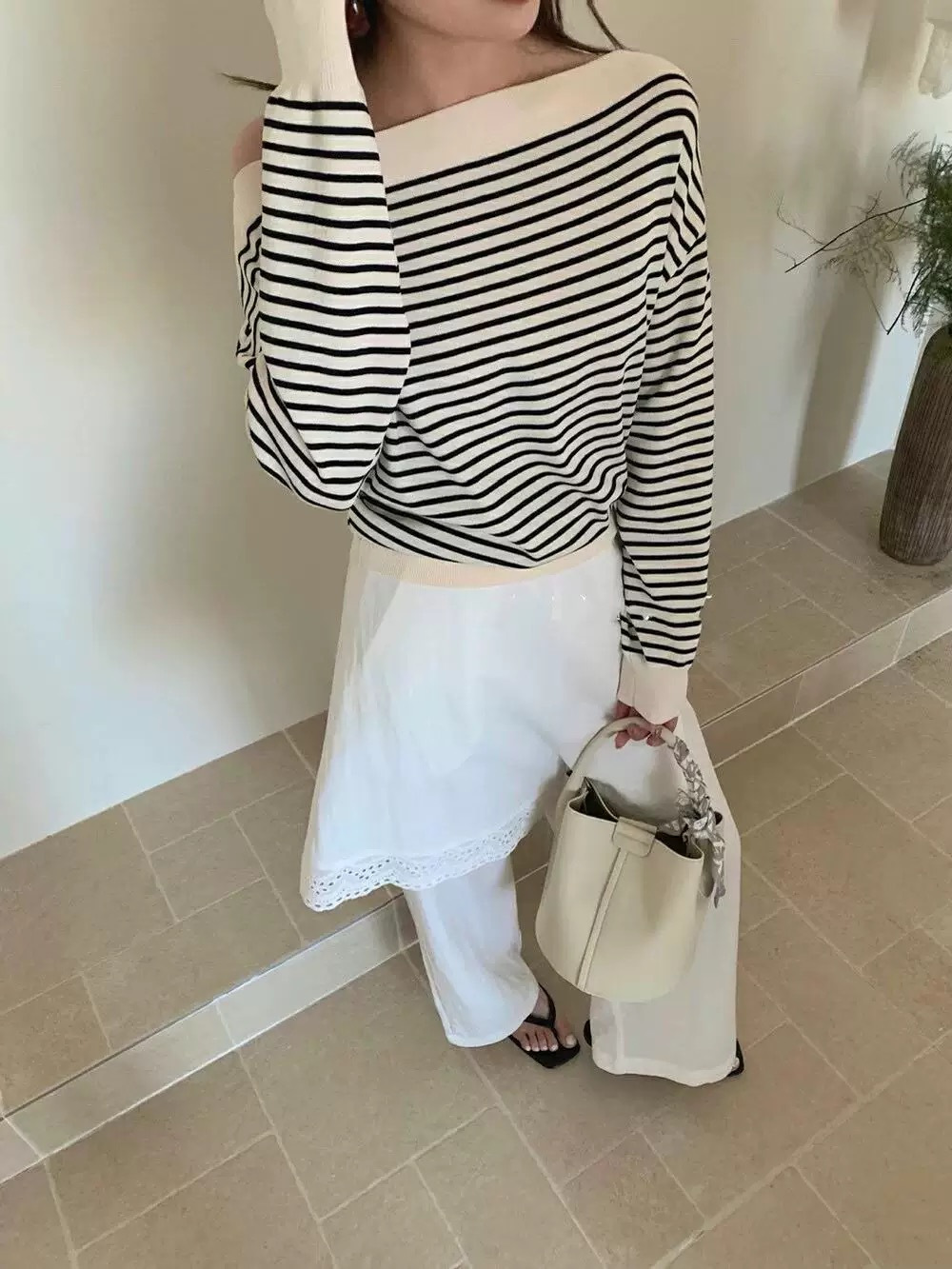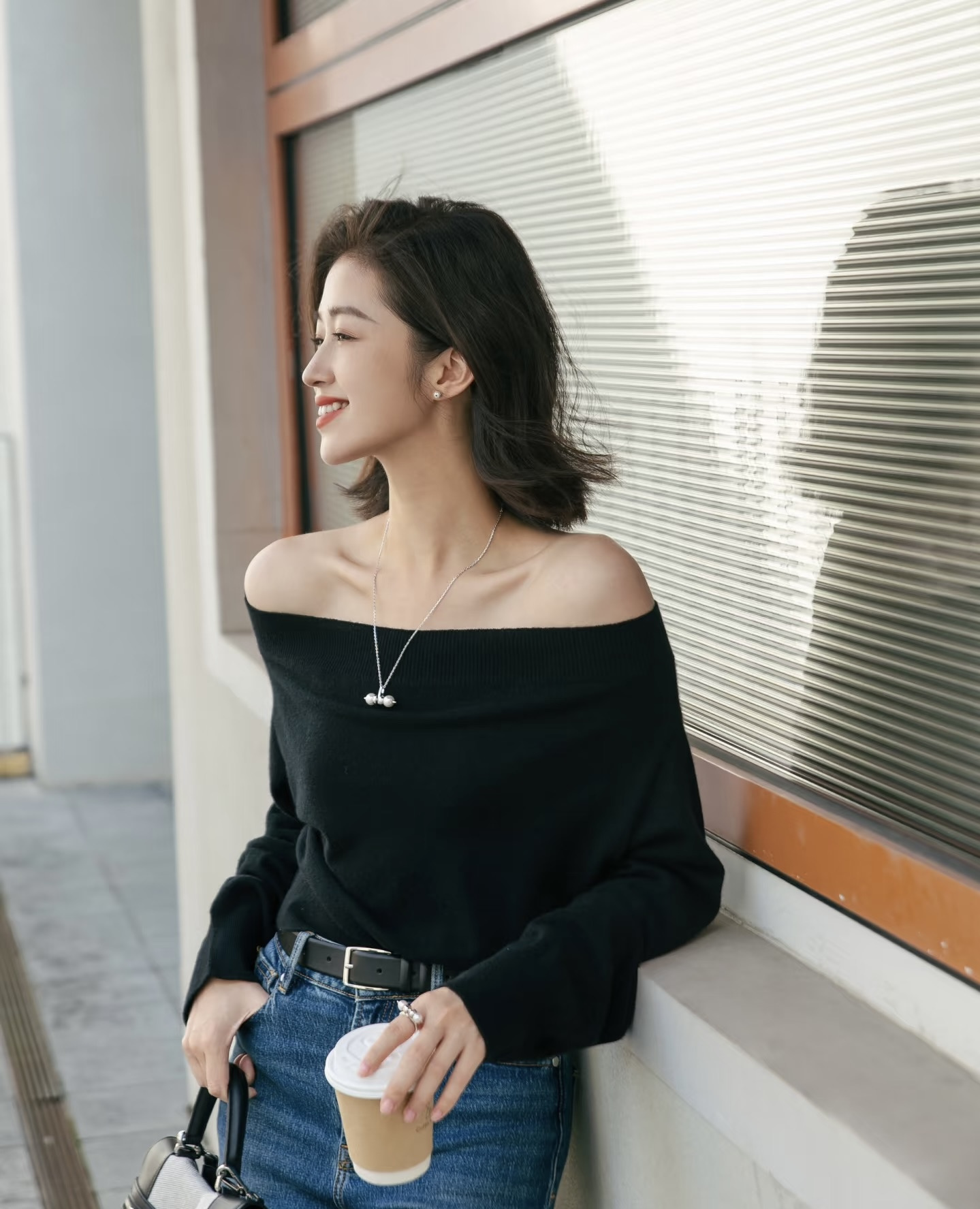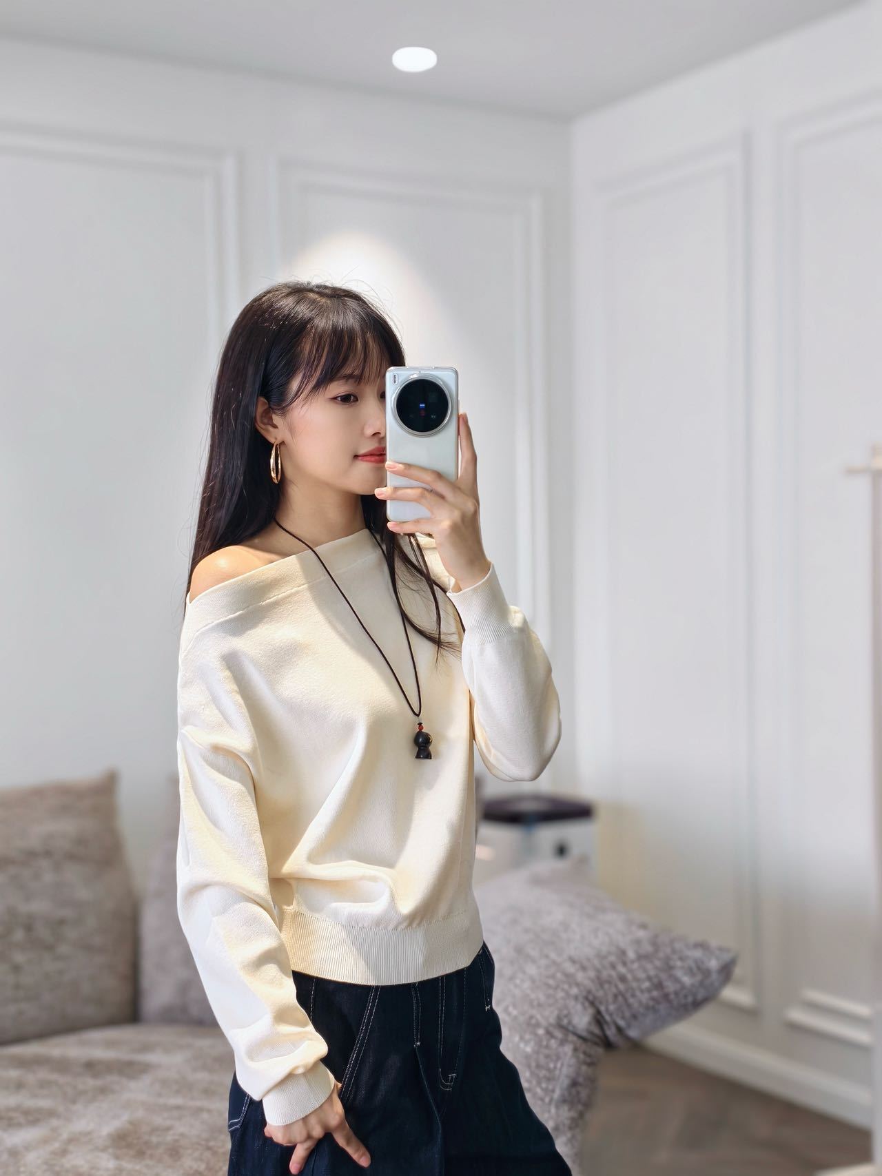 全网都在推荐的赵露丝“许妍”同款一字肩针织