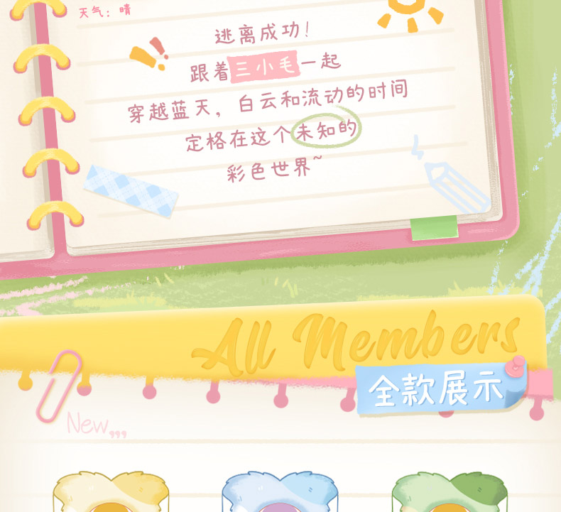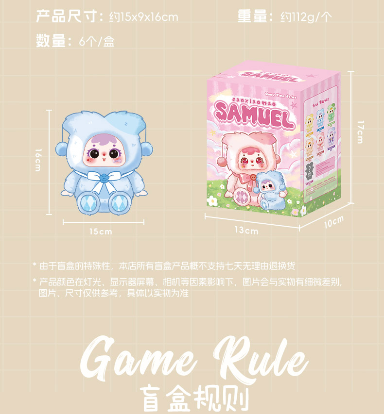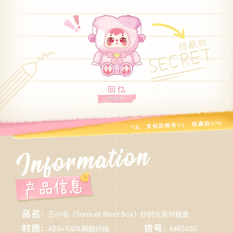 三小毛好时光系列毛绒盲盒-纪念日百货门店同款168000522