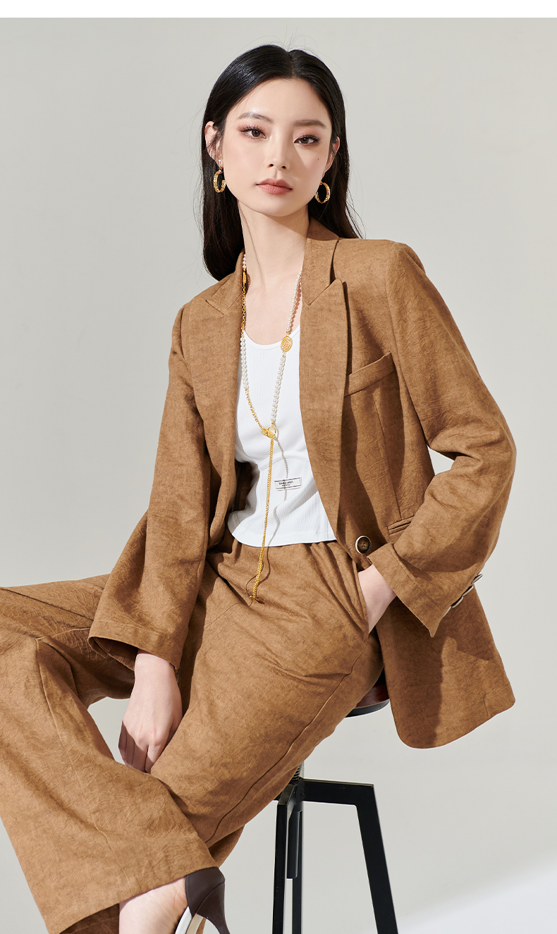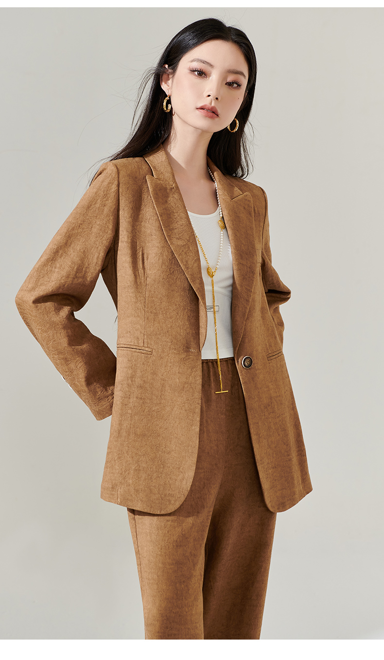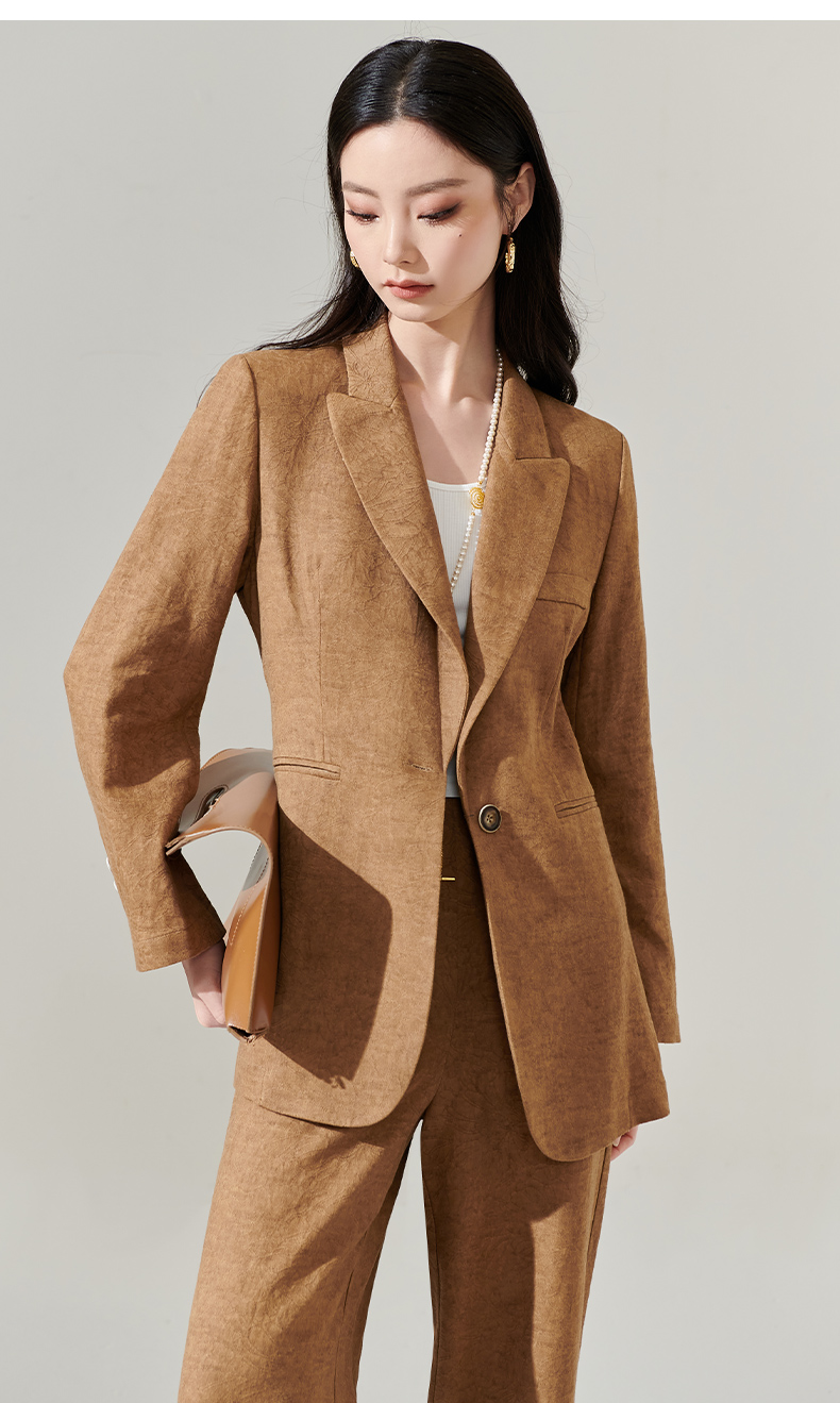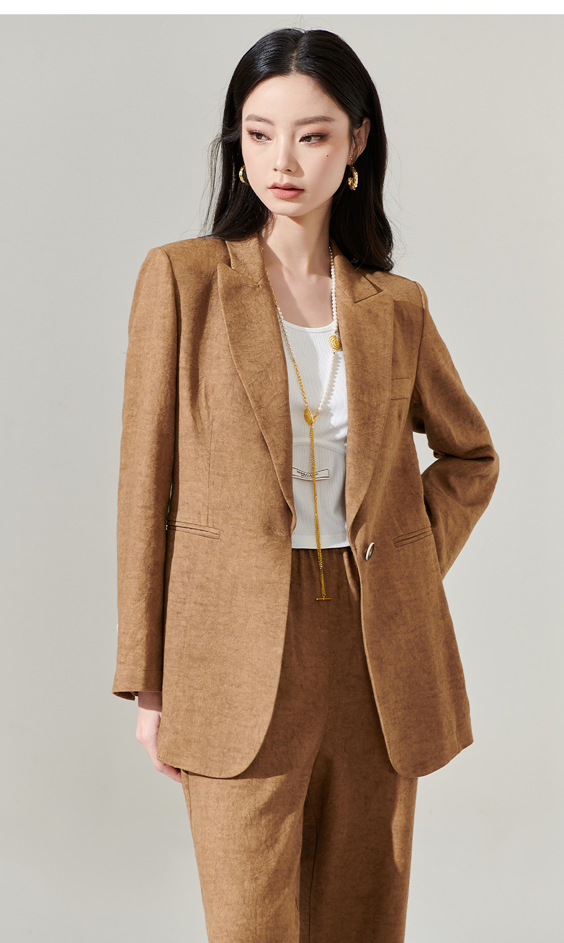 剩S/M/L 芳外新款时尚亚麻西装外套复古气质宽松西服女8T24AX0206