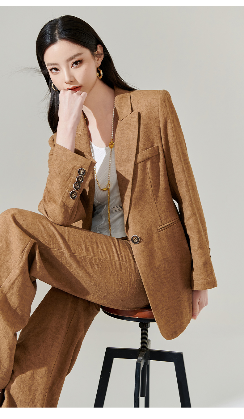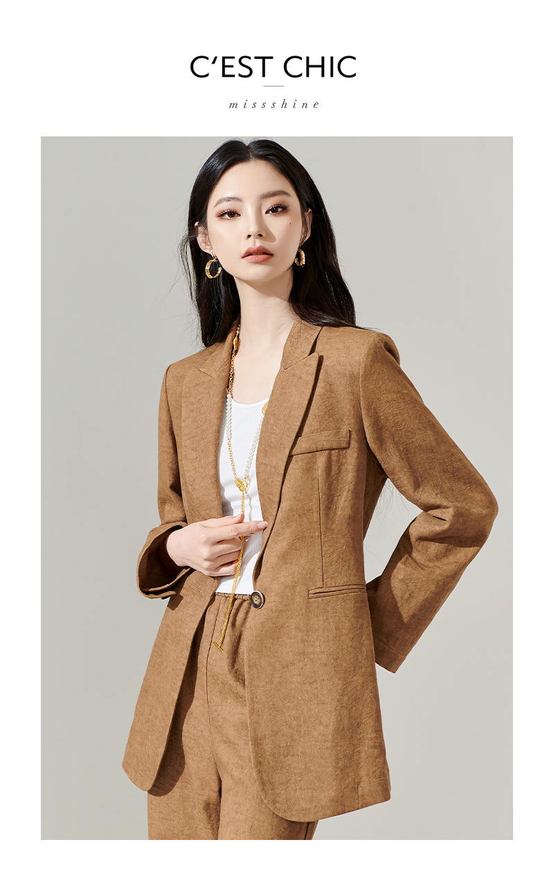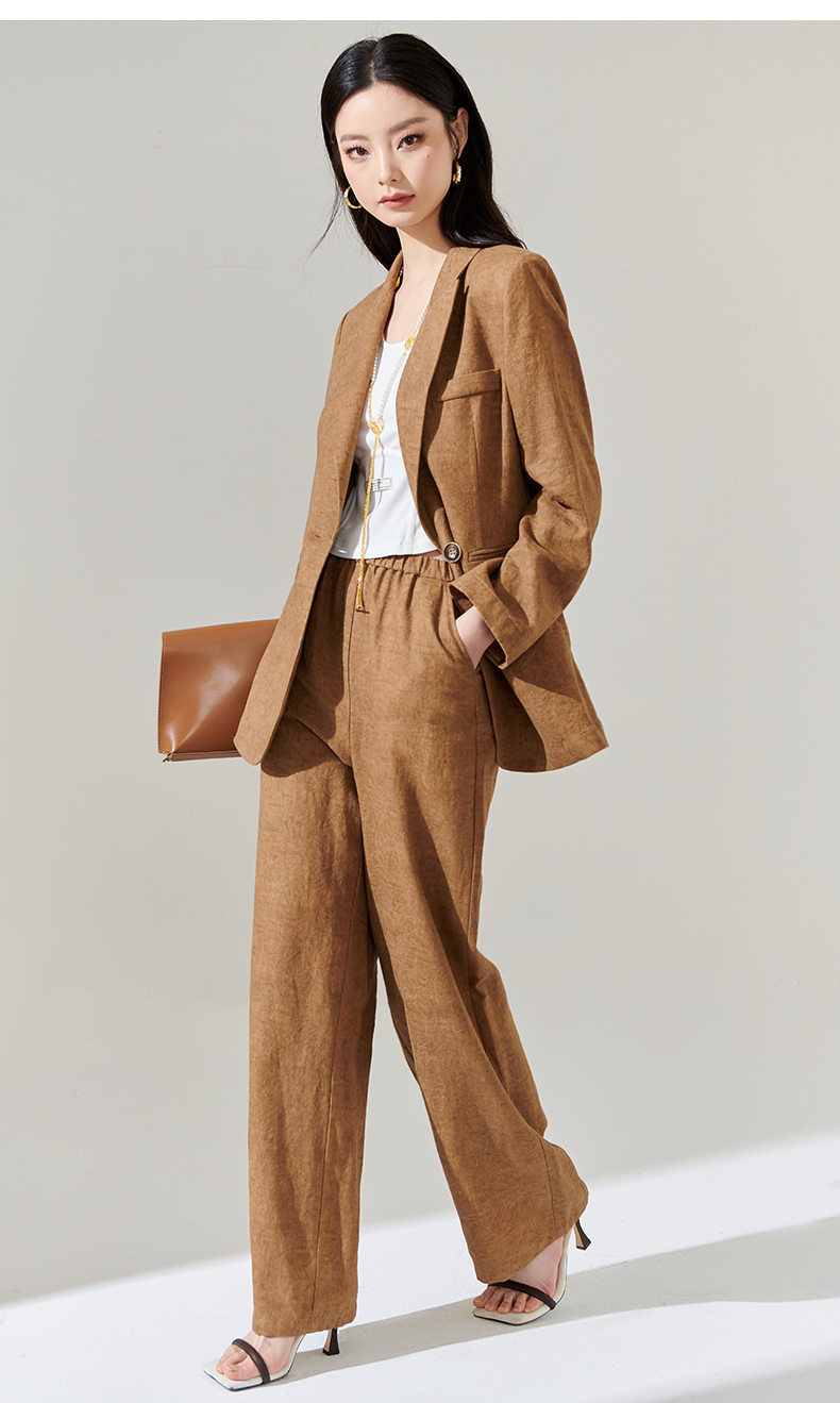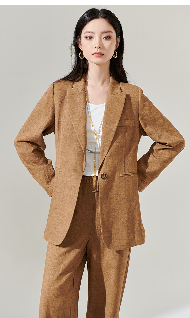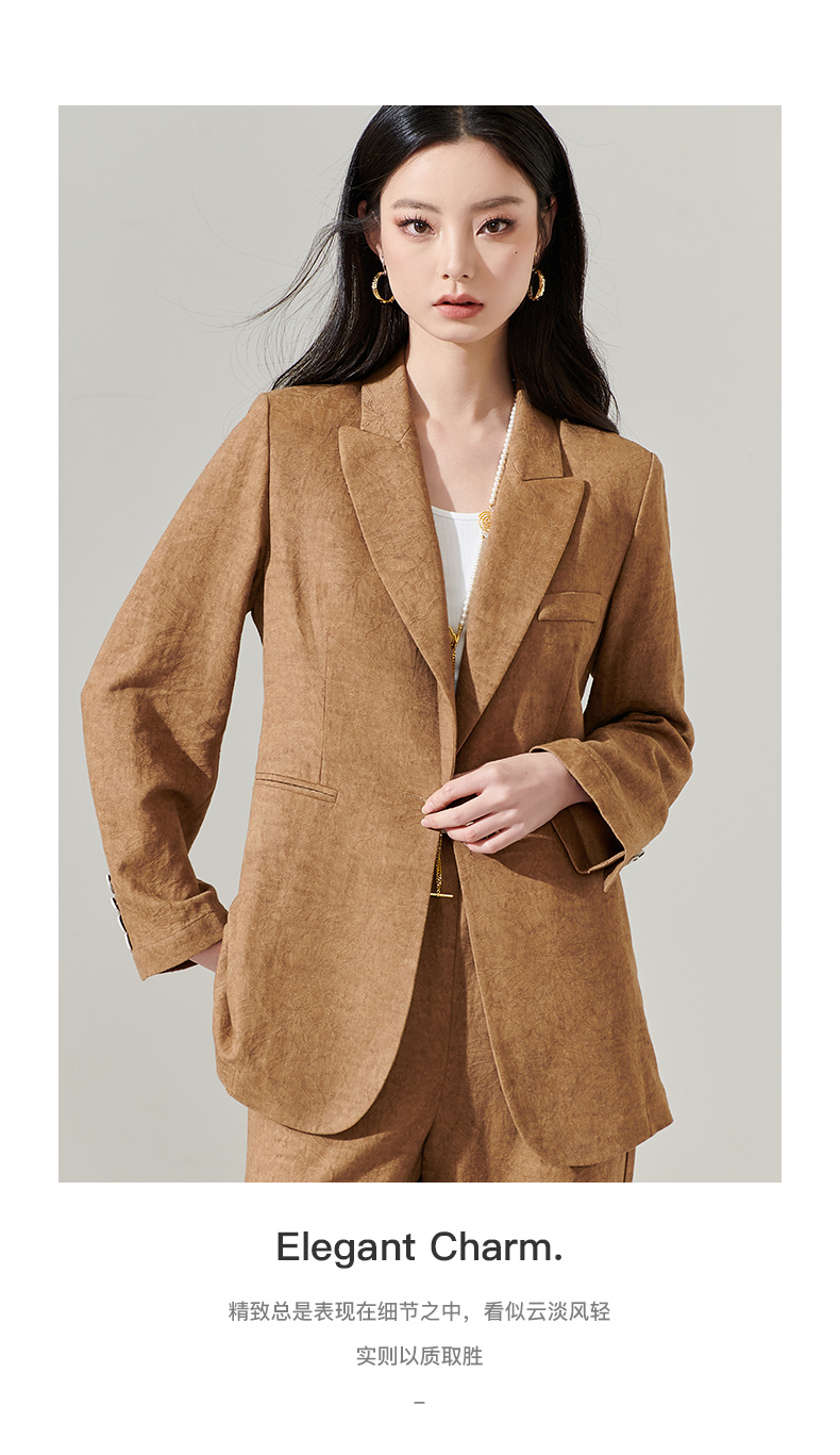 剩S/M/L 芳外新款时尚亚麻西装外套复古气质宽松西服女8T24AX0206