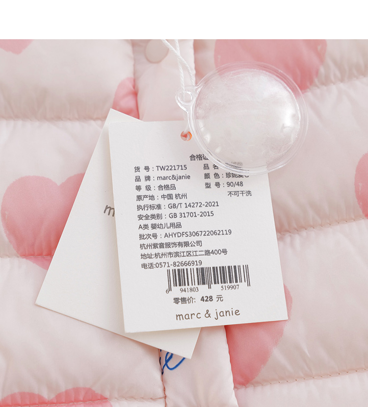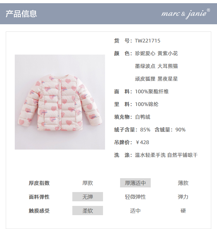 马克珍妮冬装新款 男女童超轻圆领羽绒服 儿童外套221715