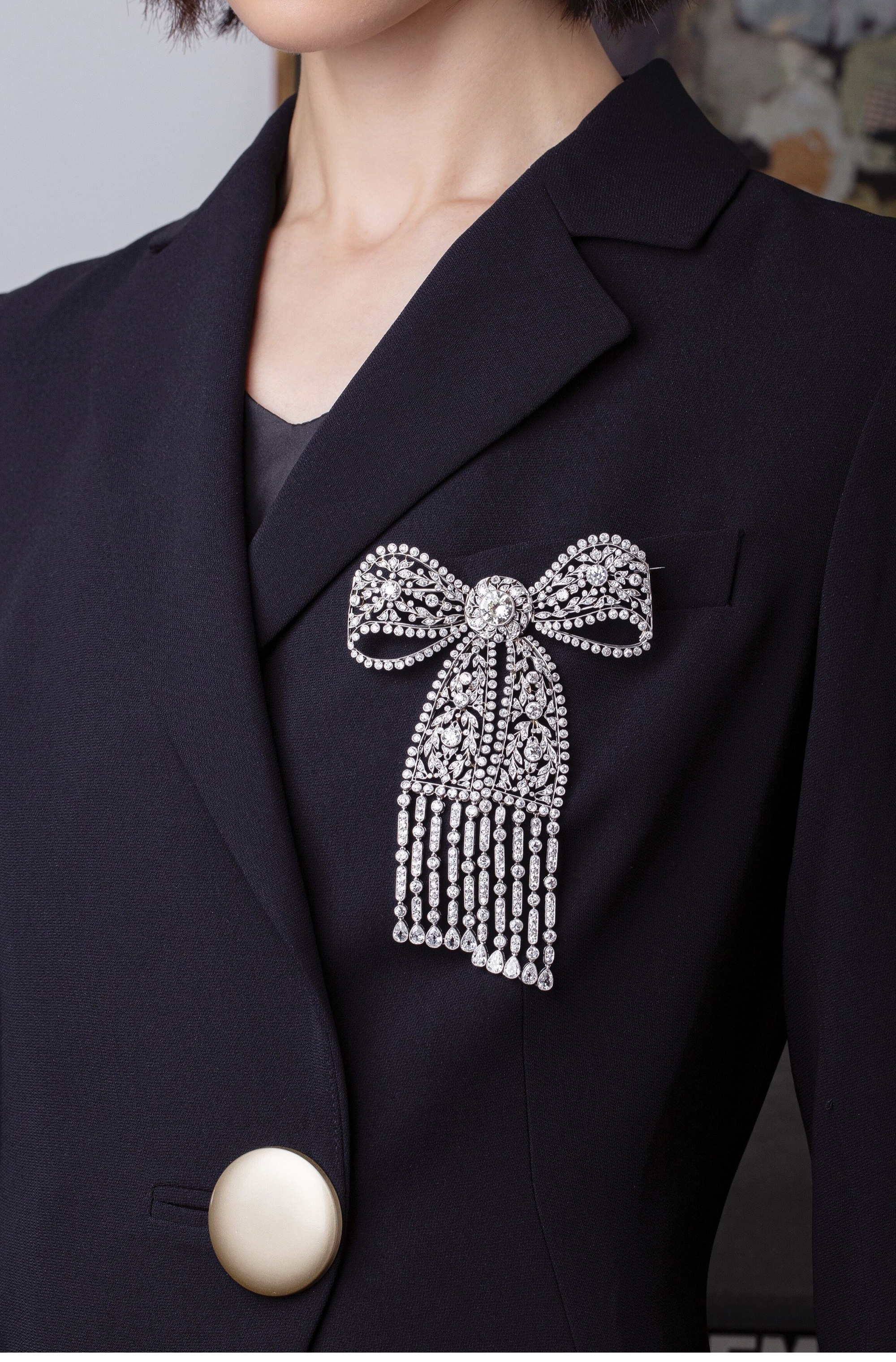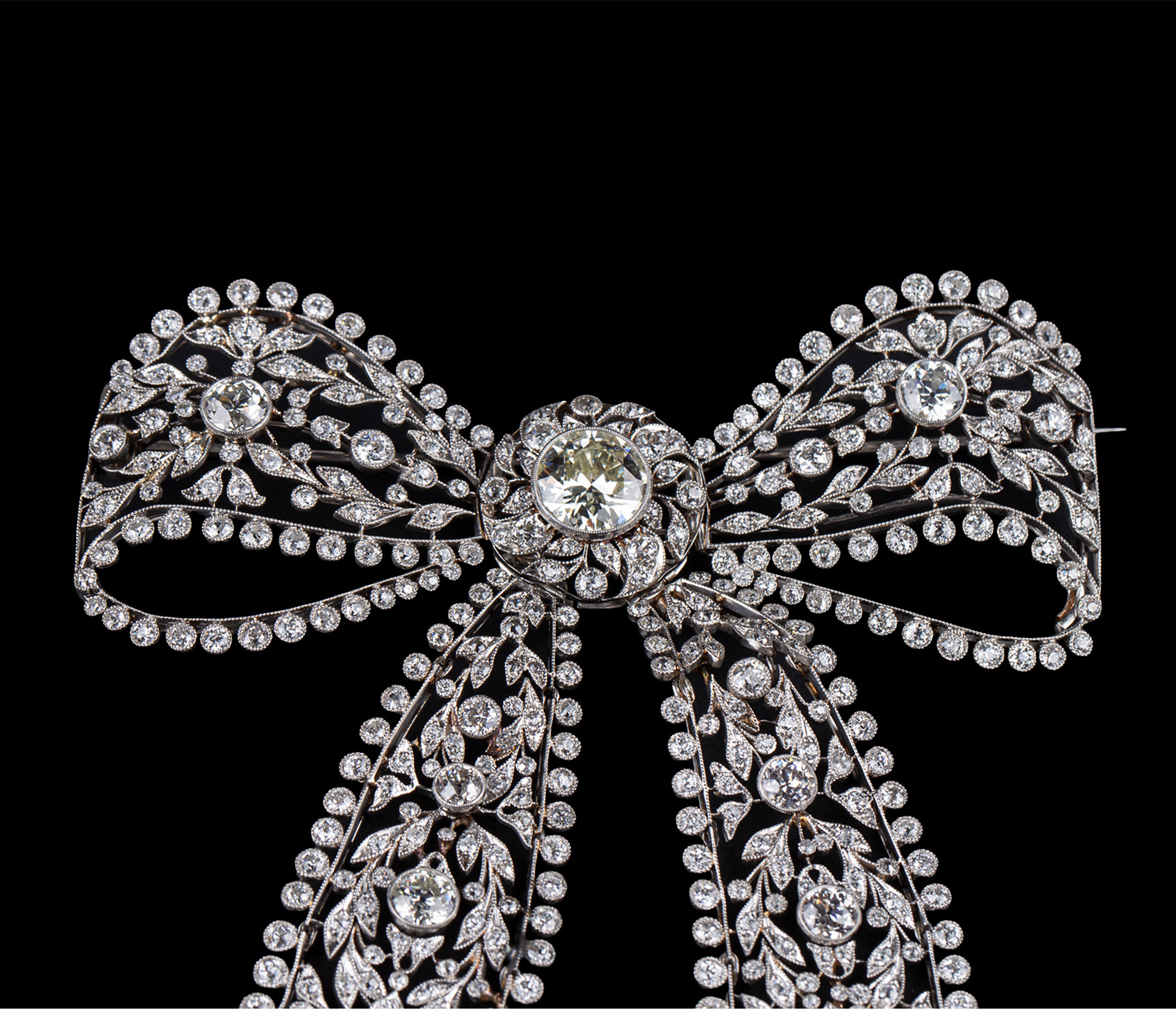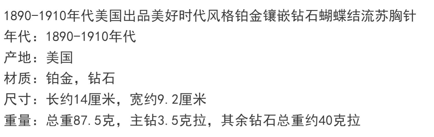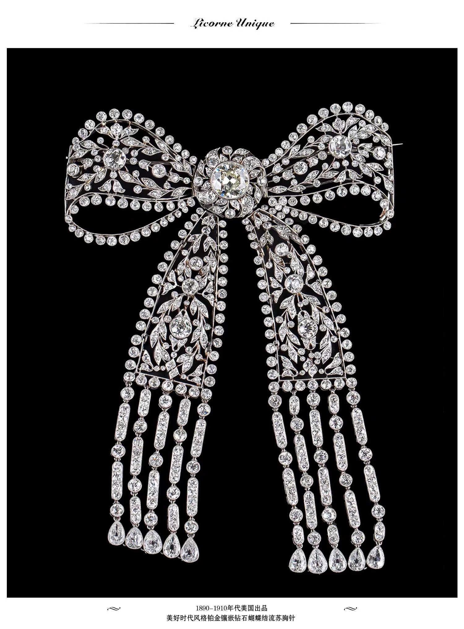 独角鹿西洋古董首饰珠宝美好时代风铂金镶嵌钻石蝴蝶结流苏胸针