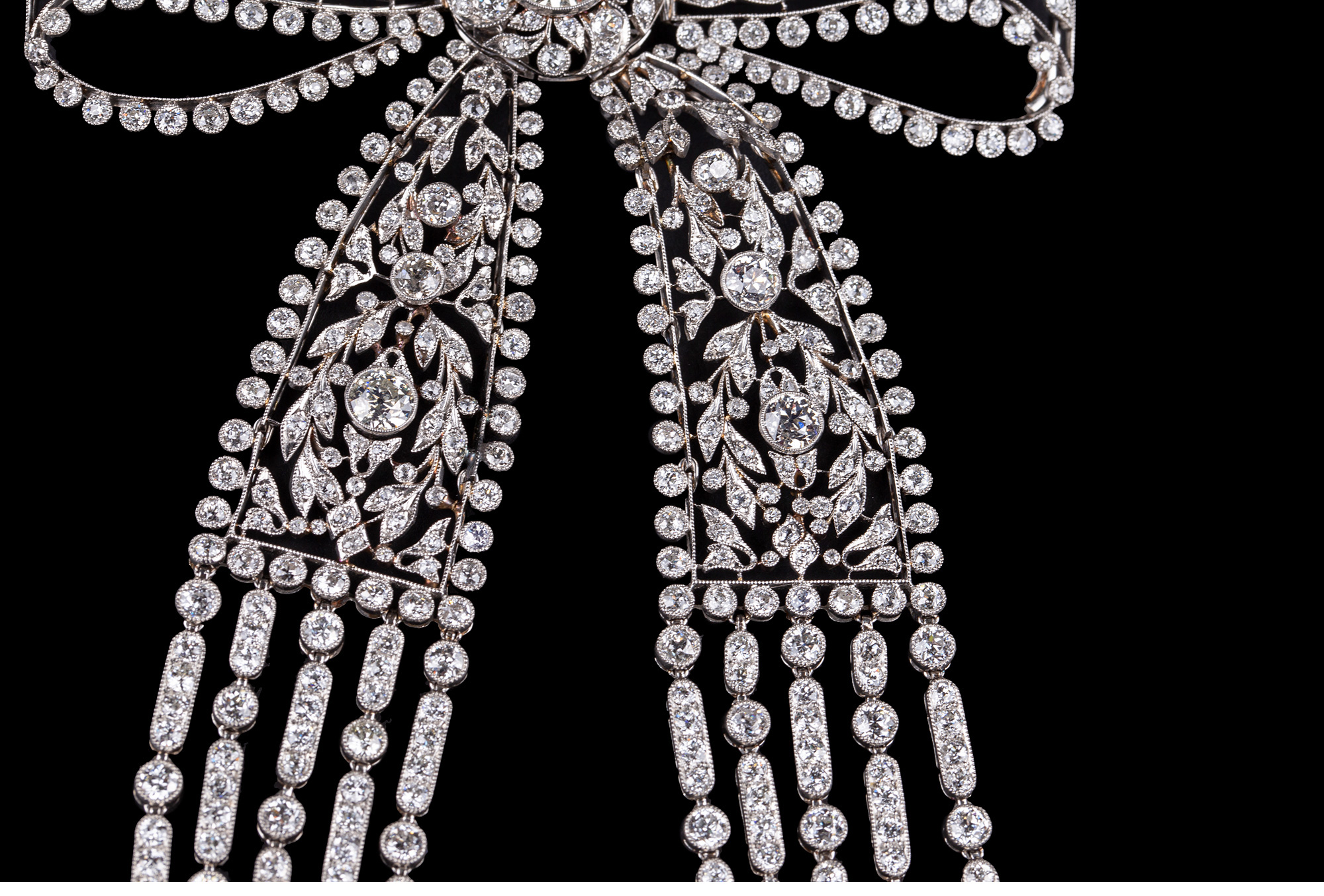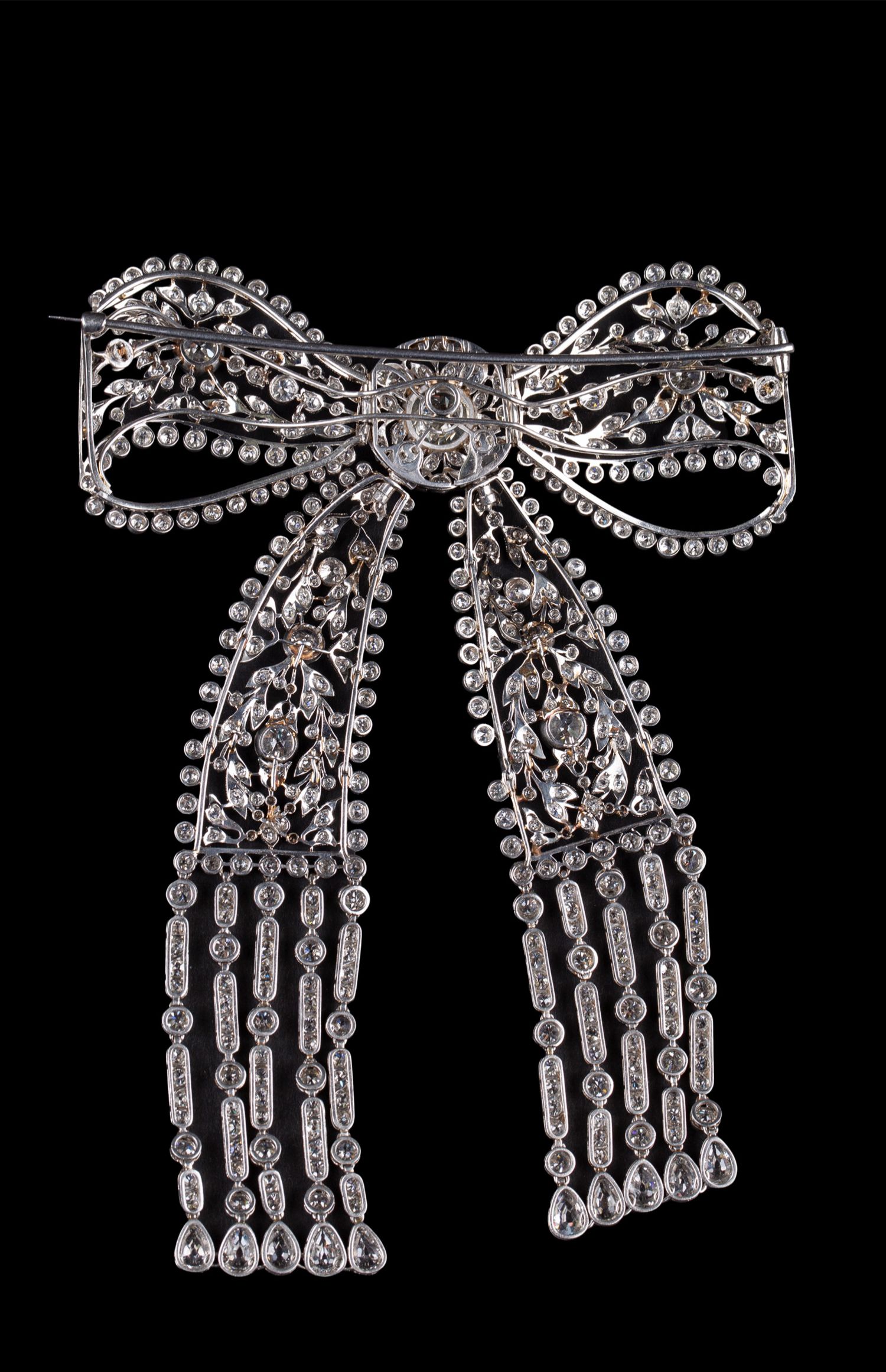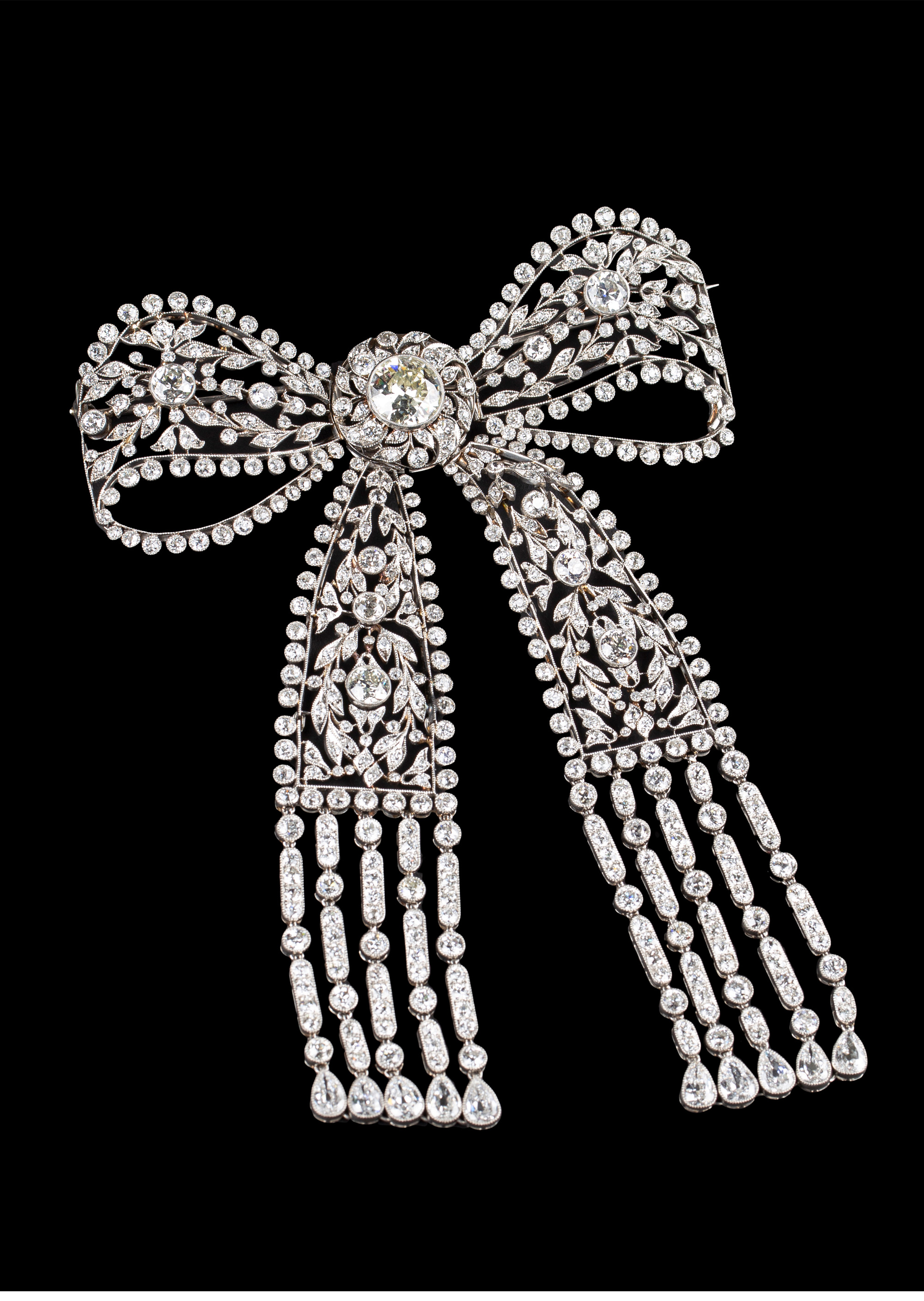 独角鹿西洋古董首饰珠宝美好时代风铂金镶嵌钻石蝴蝶结流苏胸针