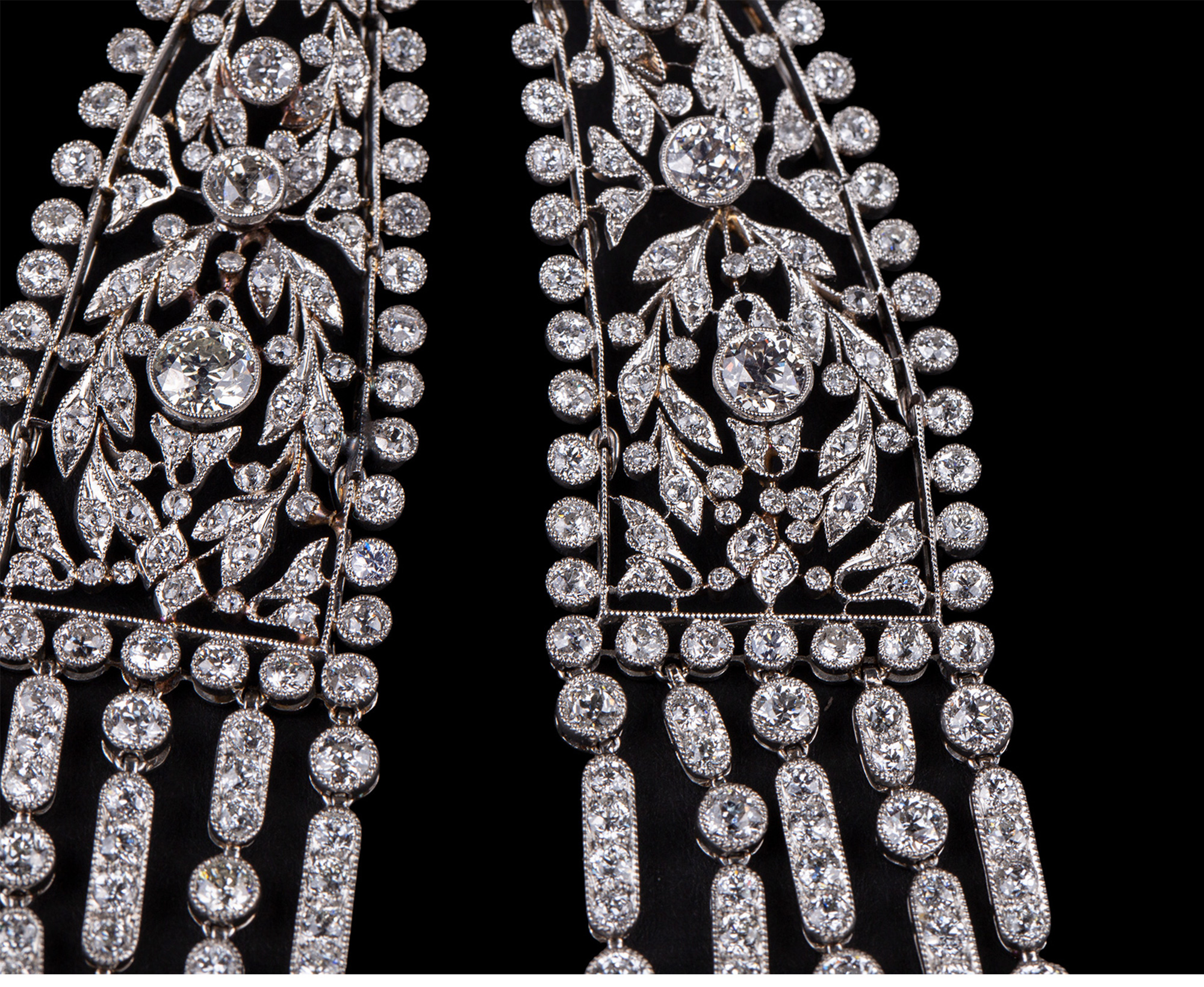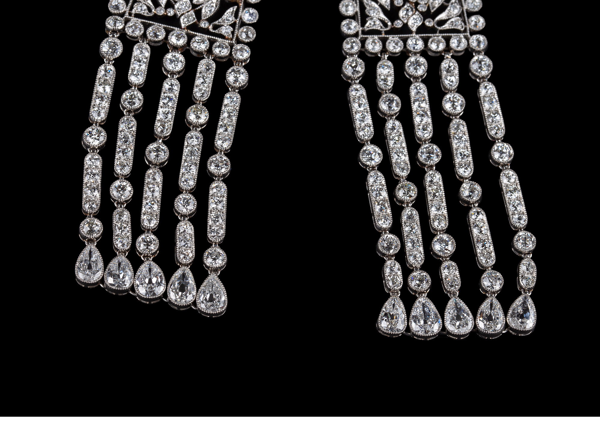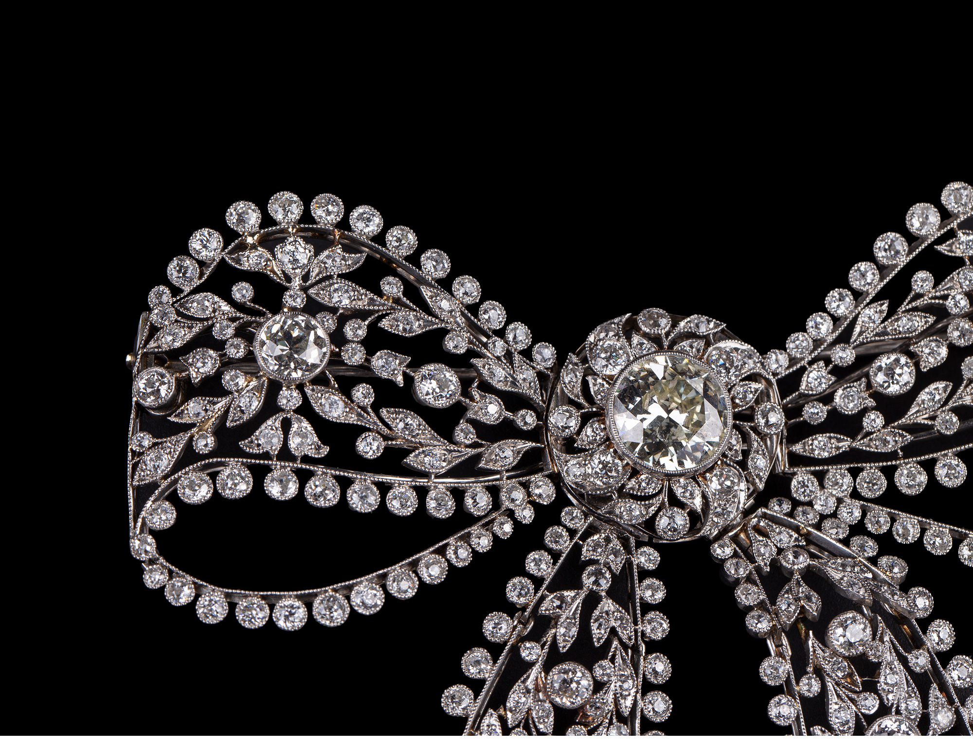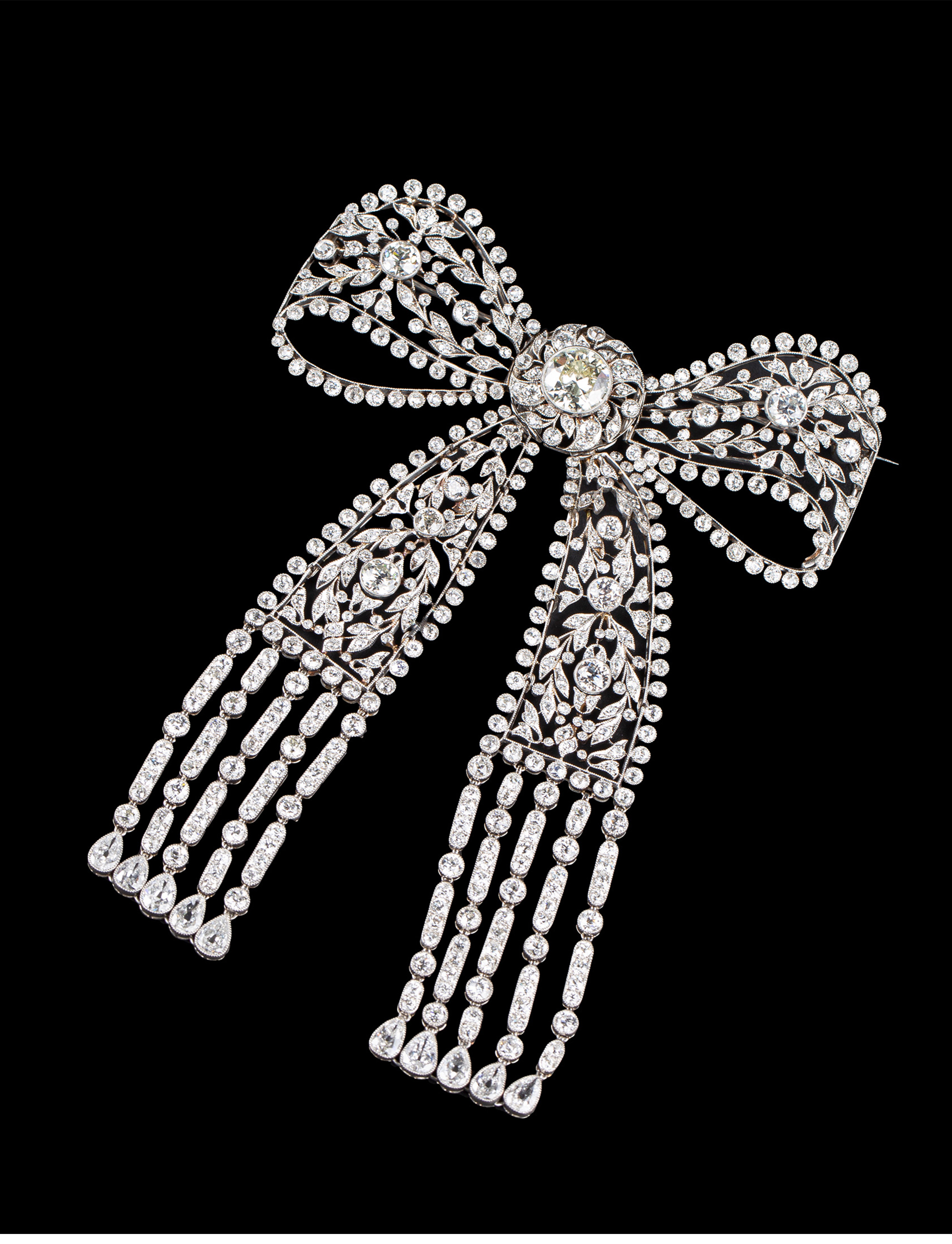 独角鹿西洋古董首饰珠宝美好时代风铂金镶嵌钻石蝴蝶结流苏胸针