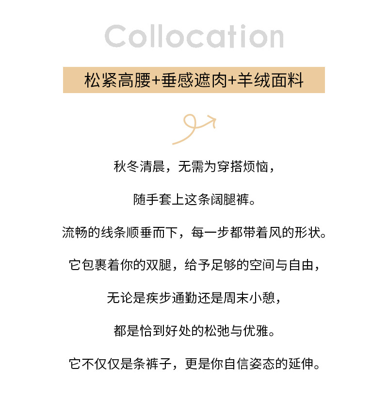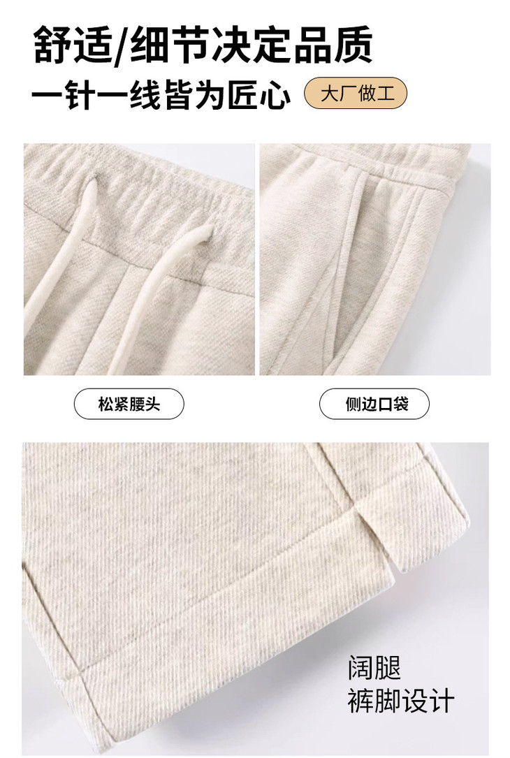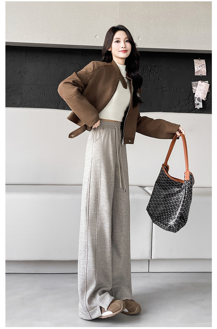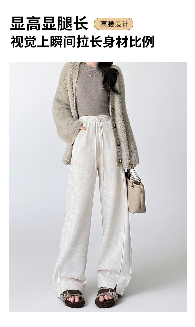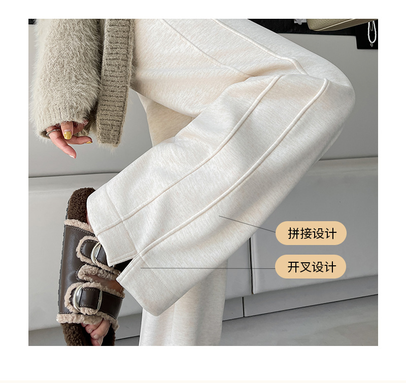 秋冬新款开叉羊绒阔腿裤女宽松直筒高个子加绒加厚糯米休闲裤