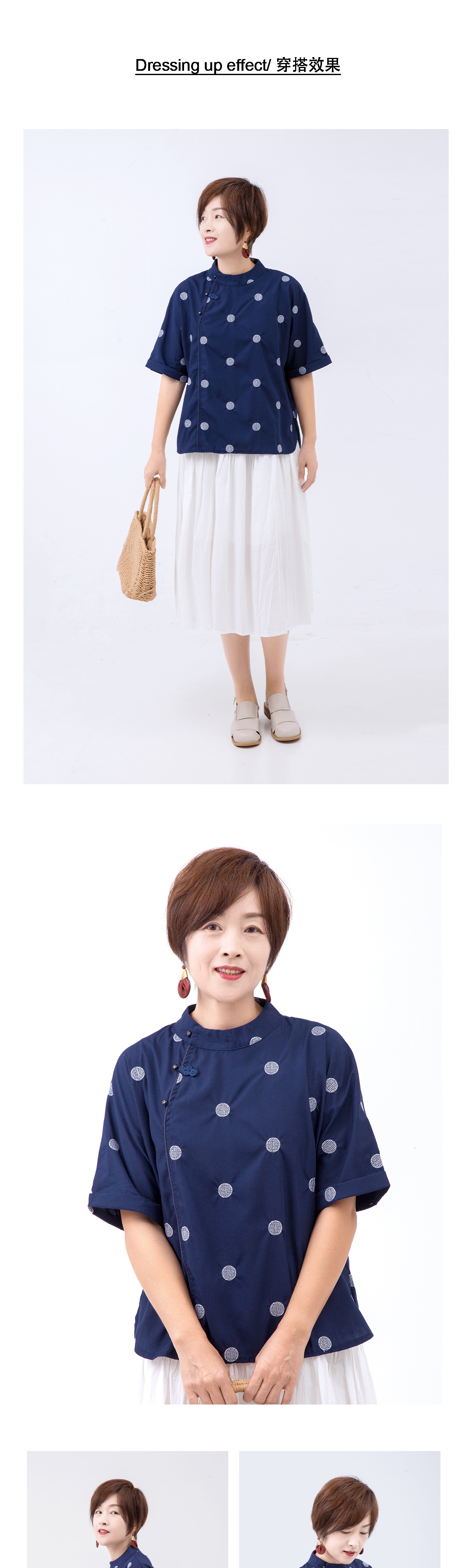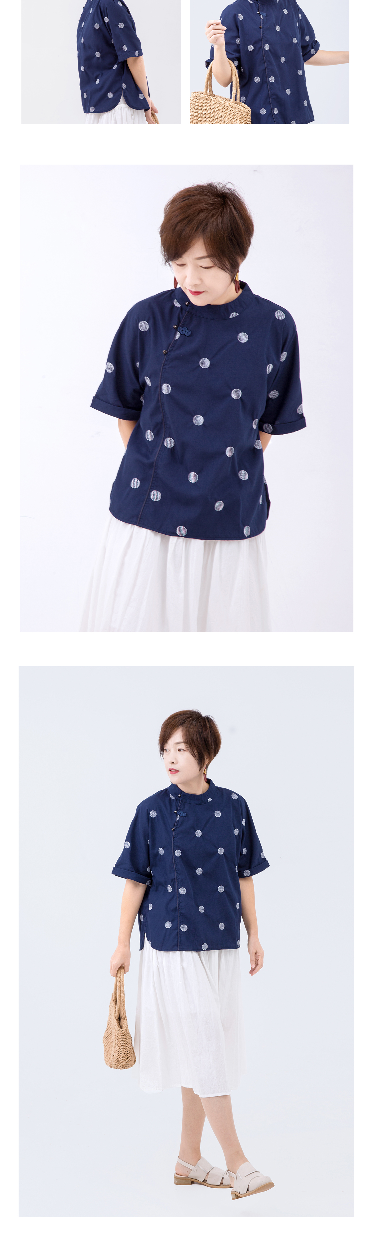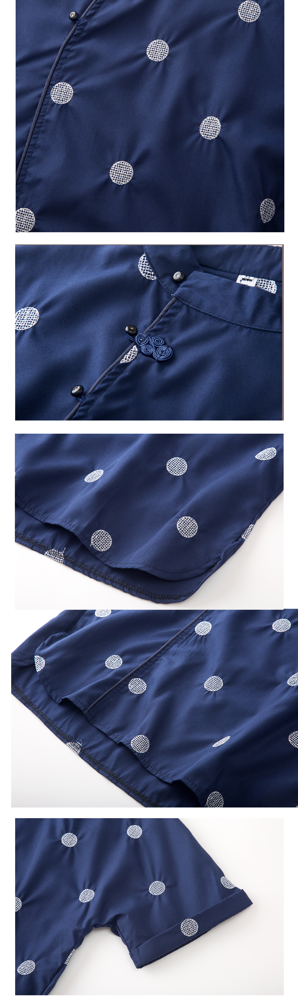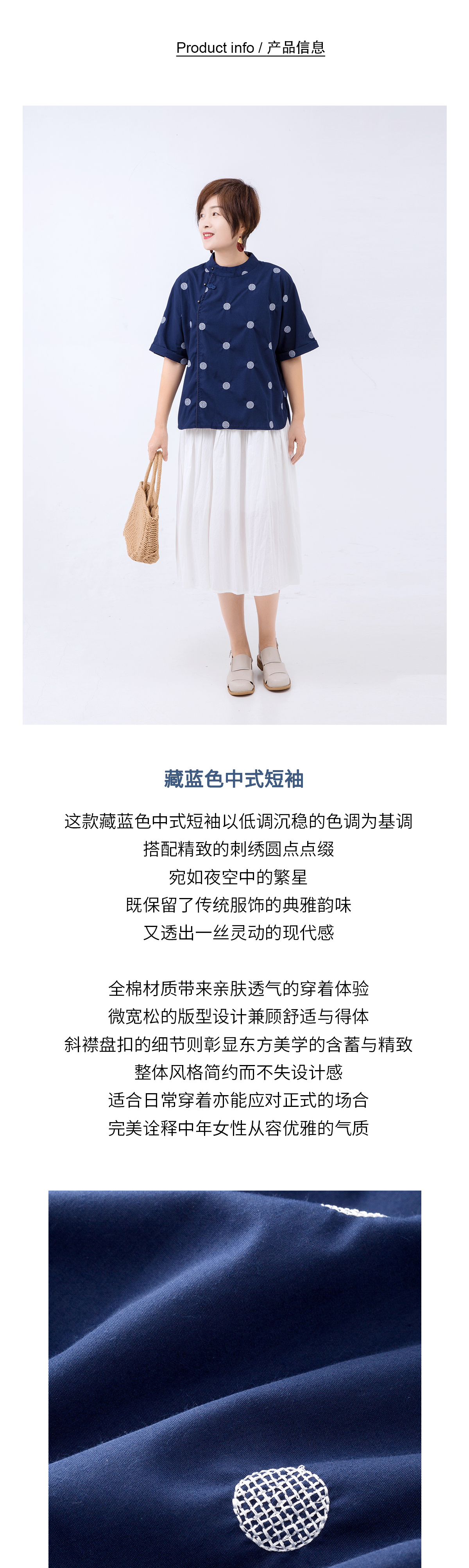藏蓝色中式短袖上衣