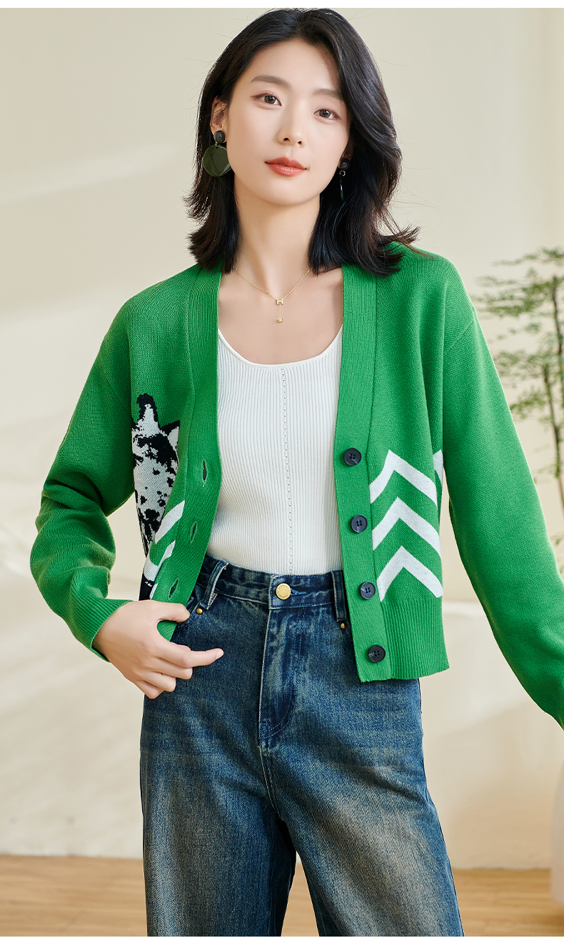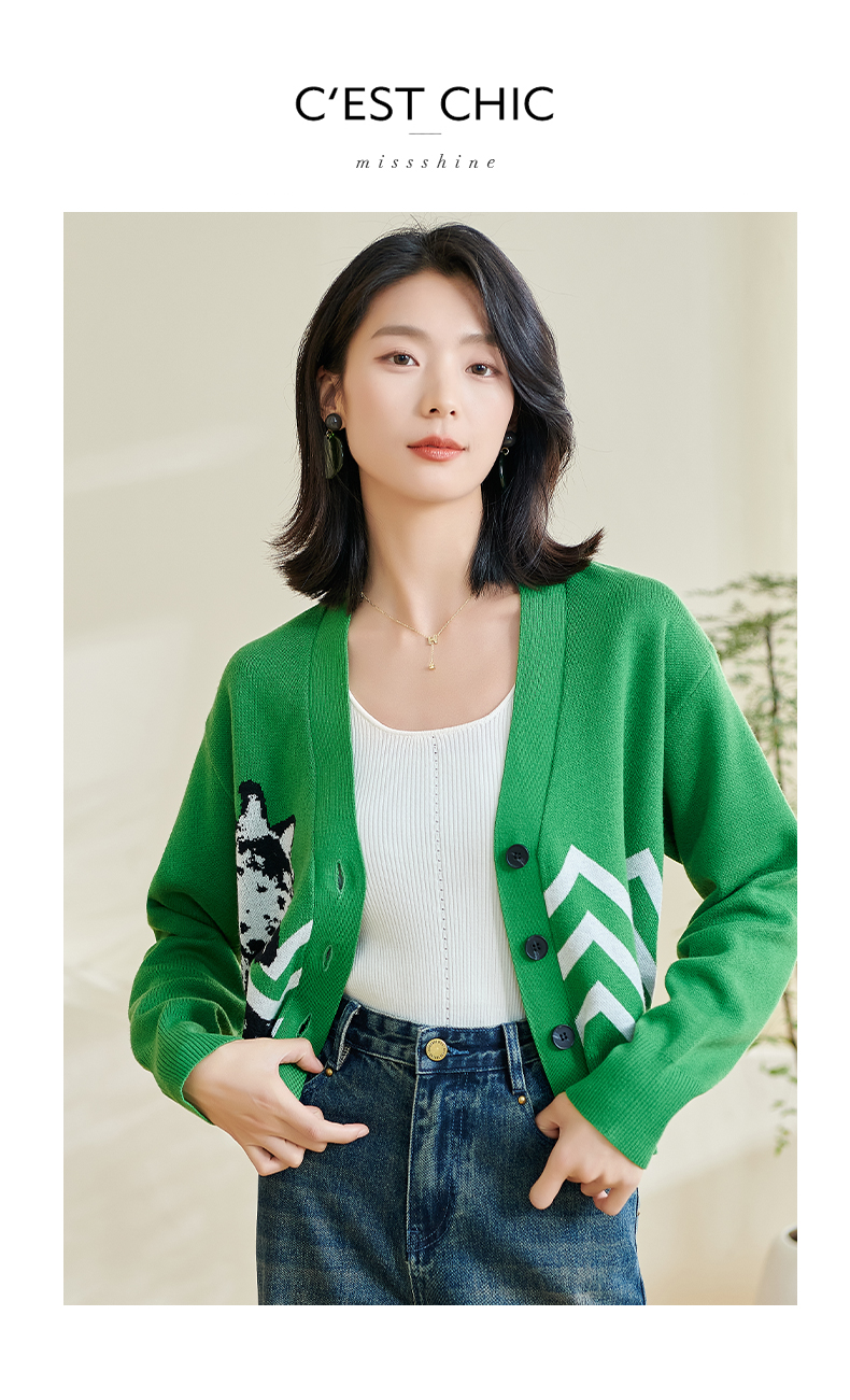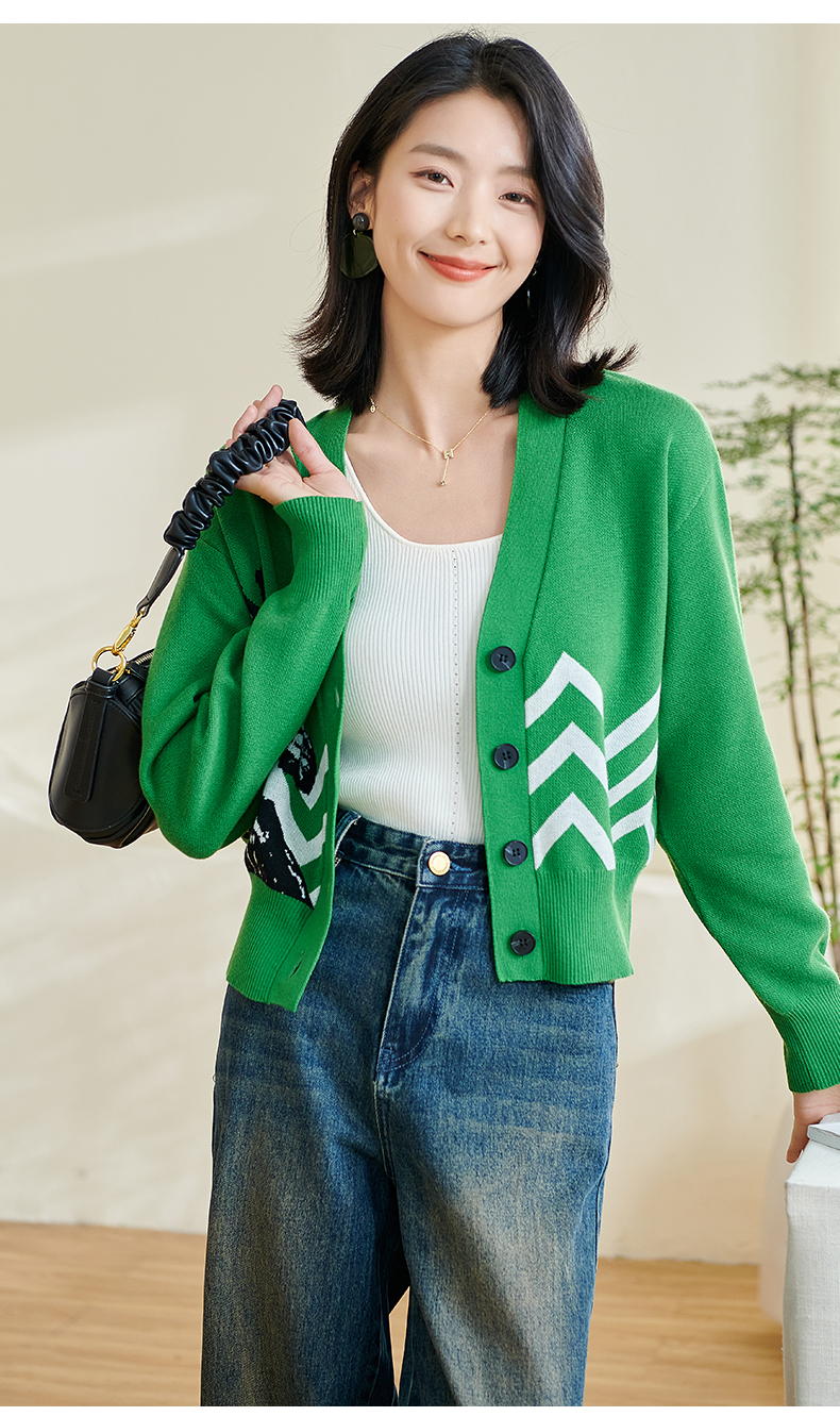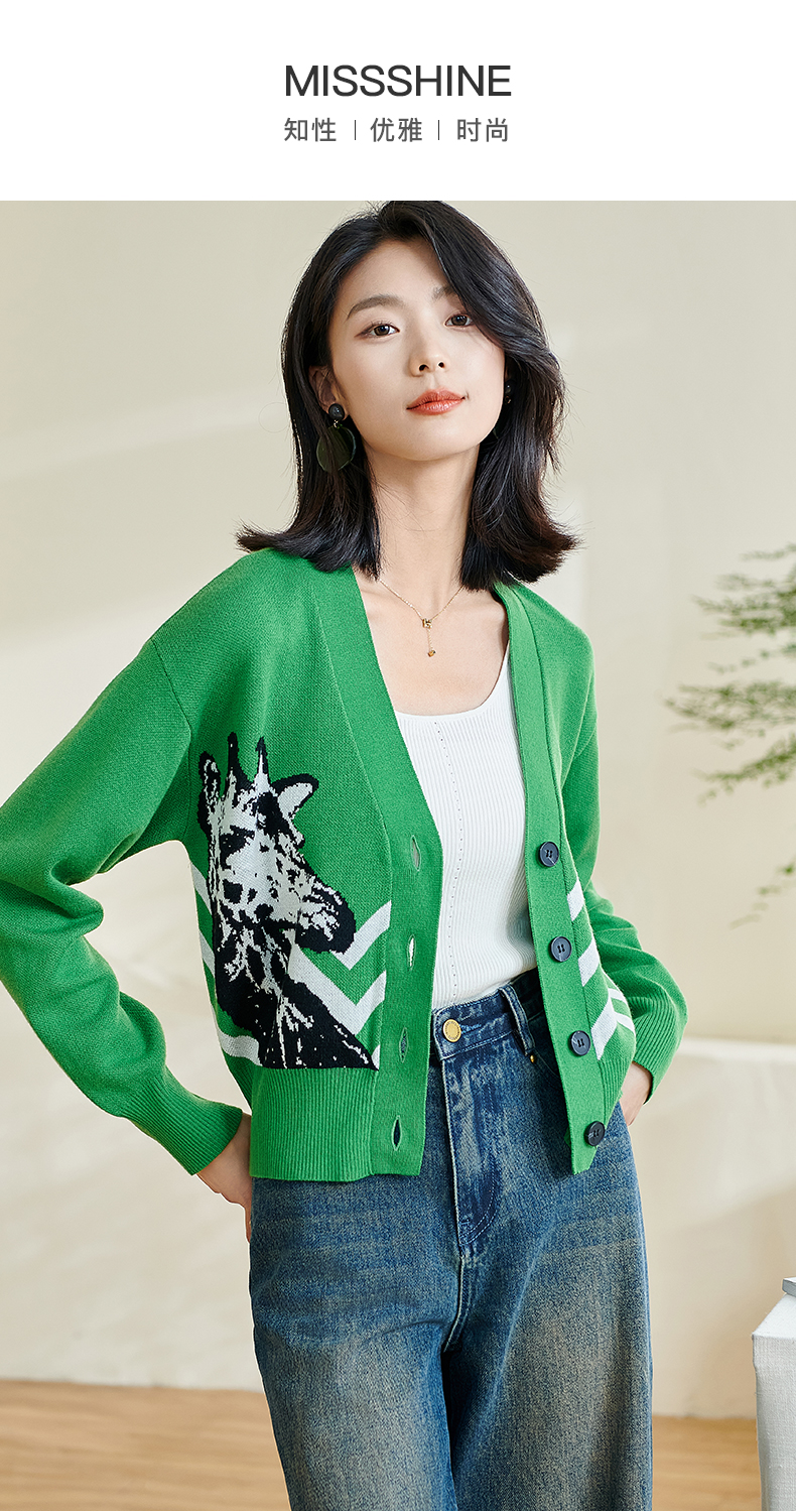 米思2026春季新款休闲别致针织短外套印花宽松弹力保暖上衣女0433