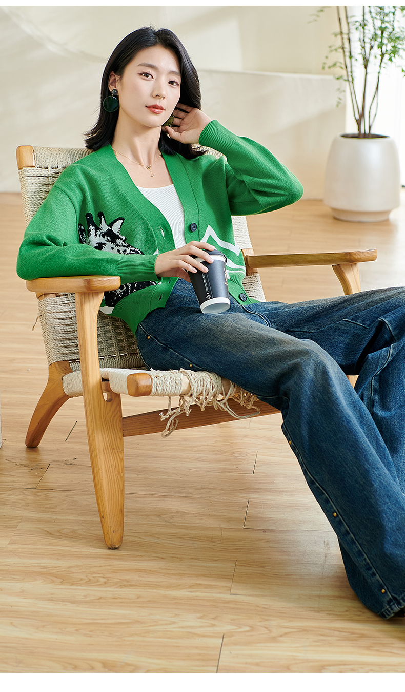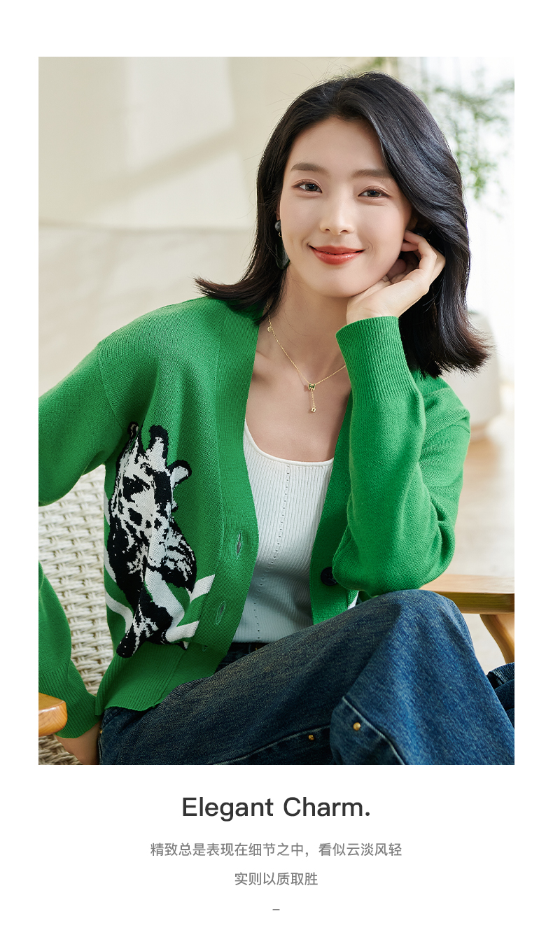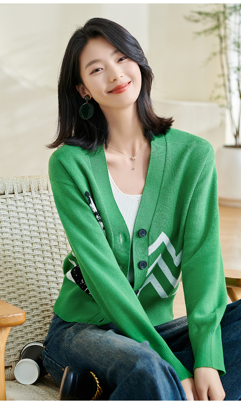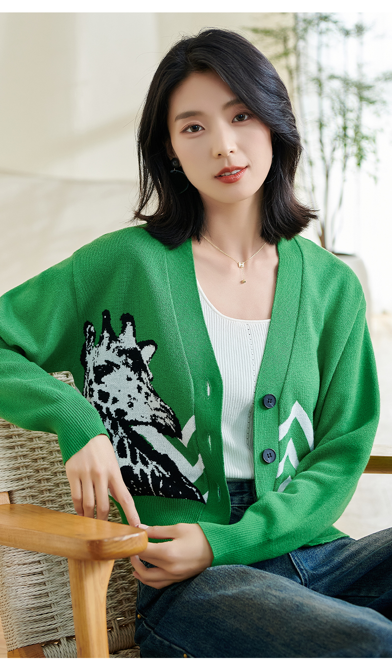 米思2026春季新款休闲别致针织短外套印花宽松弹力保暖上衣女0433