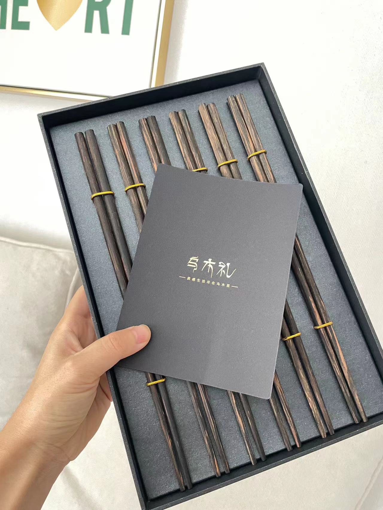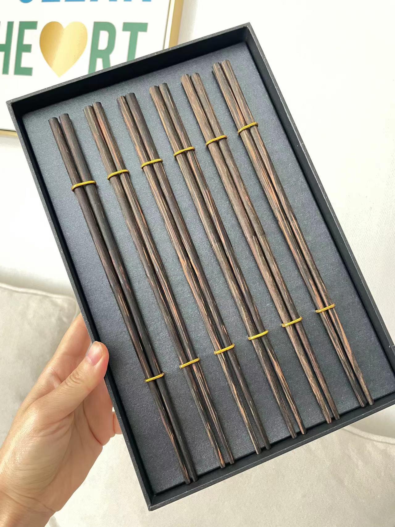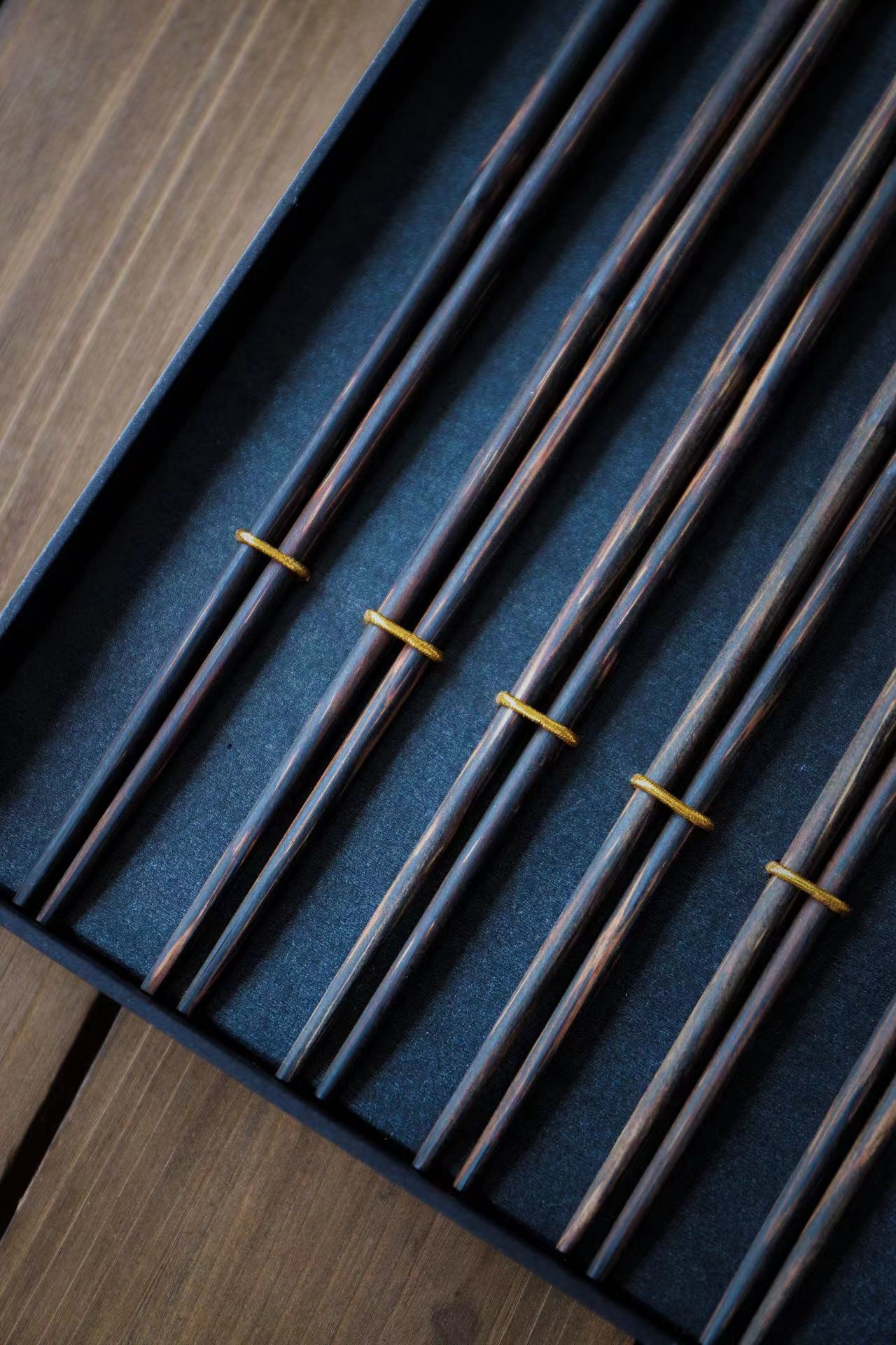 产品特点:乌木筷子原材底色为灰金色,树龄超长故心材灰金颜色相互交错,使用后经过氧化或保养才能变得黑金有光泽,质地坚硬,经久耐用,无漆无蜡,不弯曲不变形,不腐不裂,手感厚重,光润细腻;