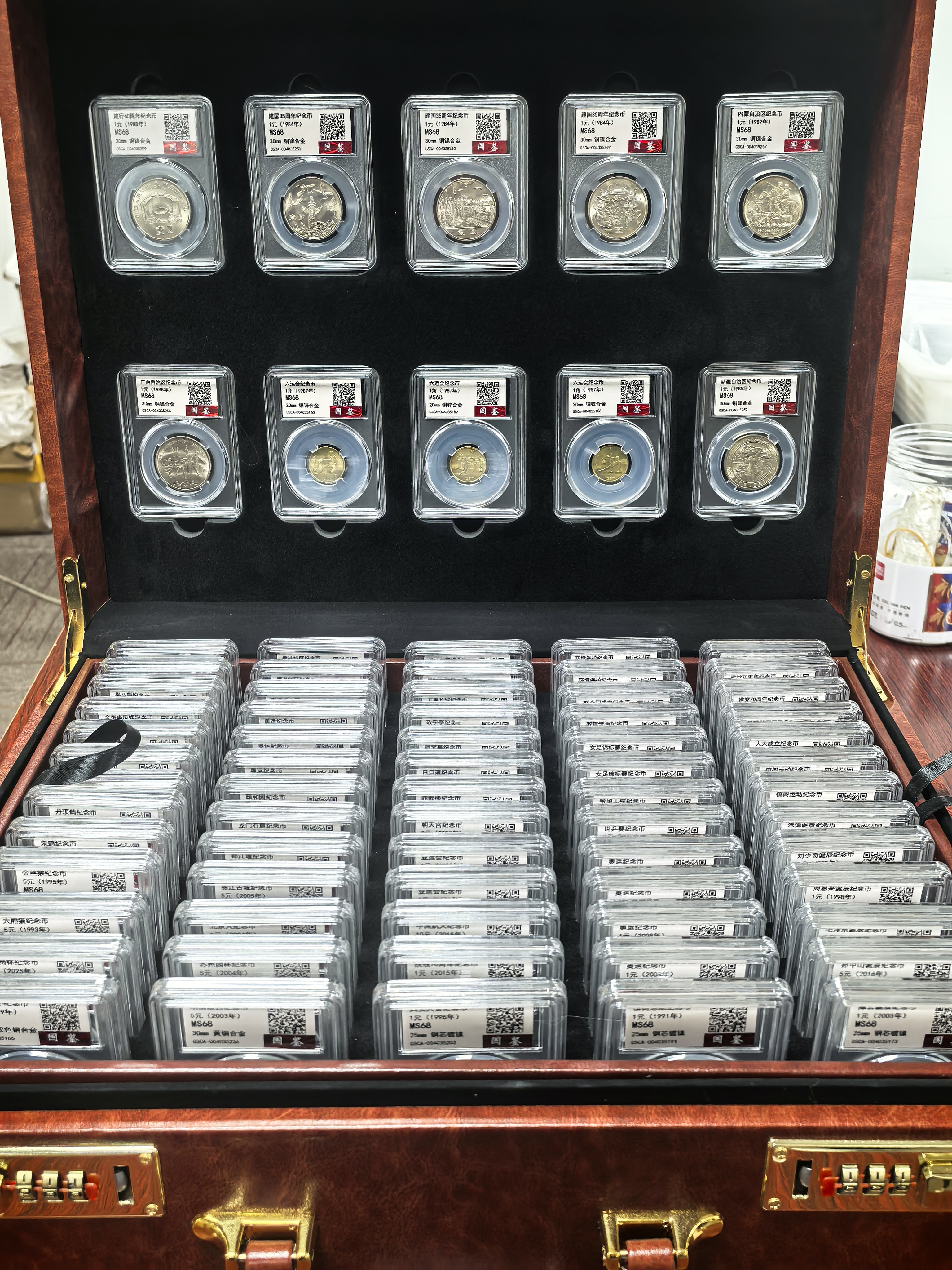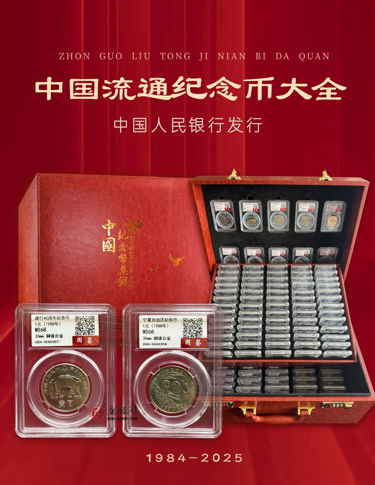 本套藏品收录了中国人民银行从1984年~2025年发行的所有流通纪念币共135枚,每一枚均为国家法定货币,全部原光封装评级,其发行意义深远,铸币工艺精湛,艺术造诣登峰造极,记录了我国重大会议,历史伟人,名胜古迹,珍稀动物,生肖文化,航天科技,国防军事,重大体育赛事等,堪称国家名片,民族之魂,传家之宝。