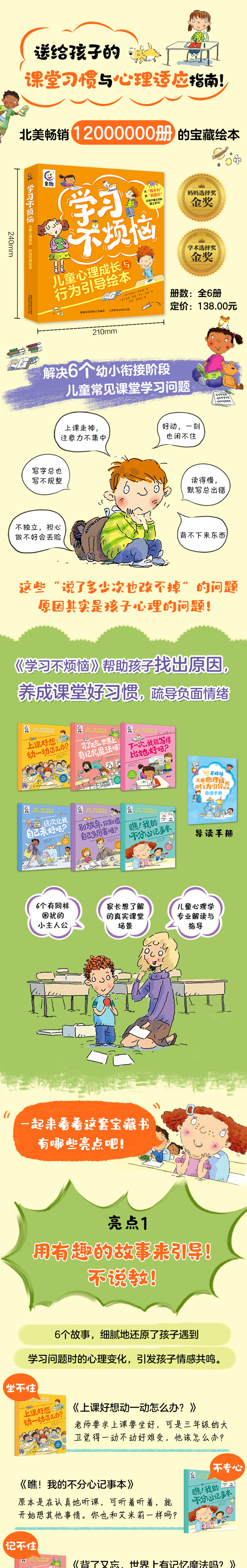 【童趣】学习不烦恼 儿童心理成长和行为引导绘本(6册)